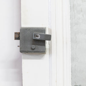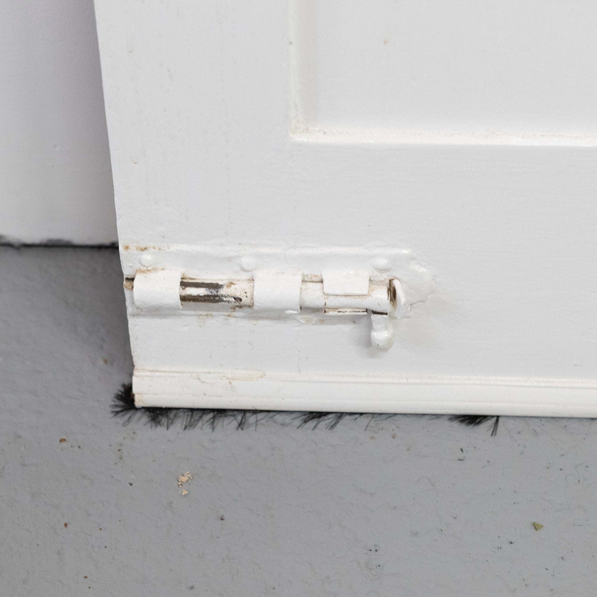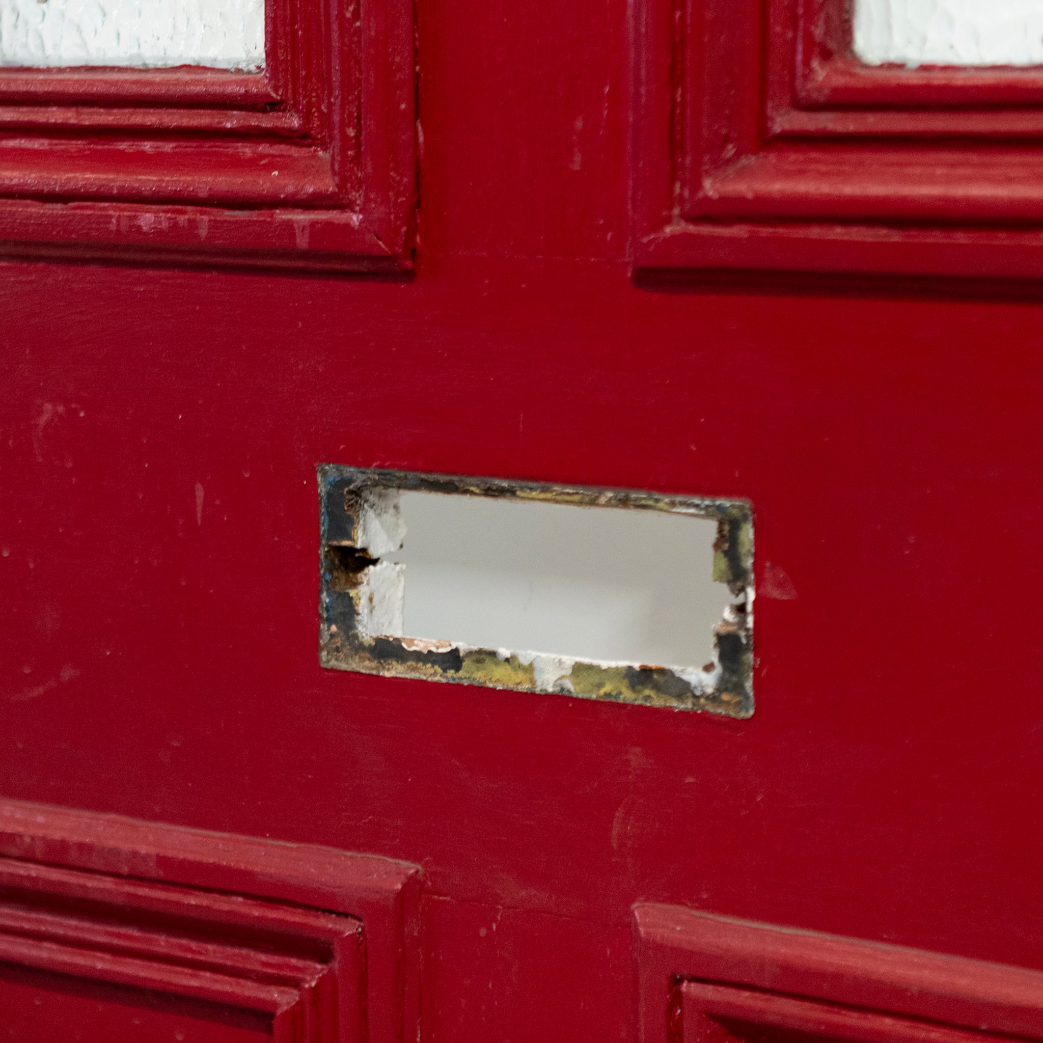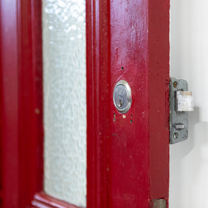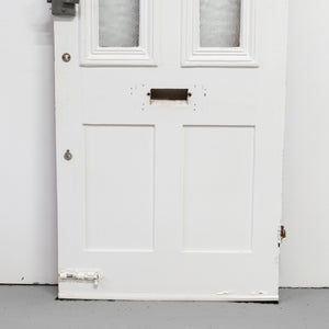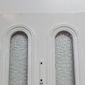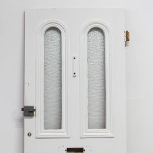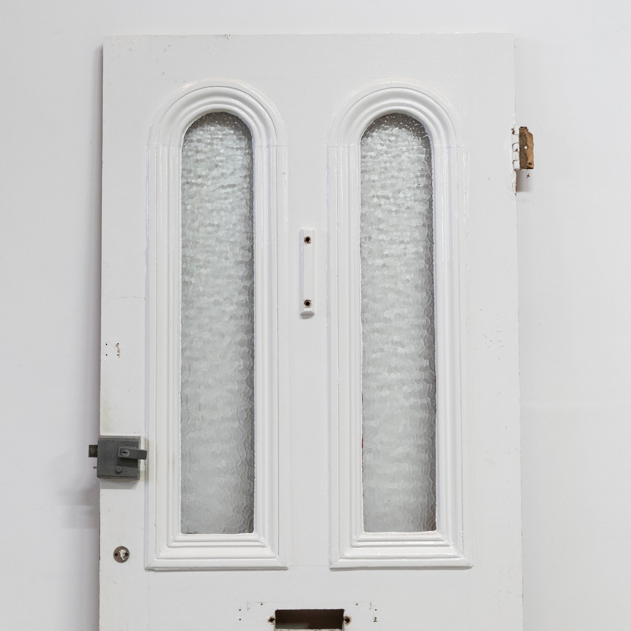 Originally used as a front door, this antique Victorian door has the upper 2 arched panels glazed with textured glass.