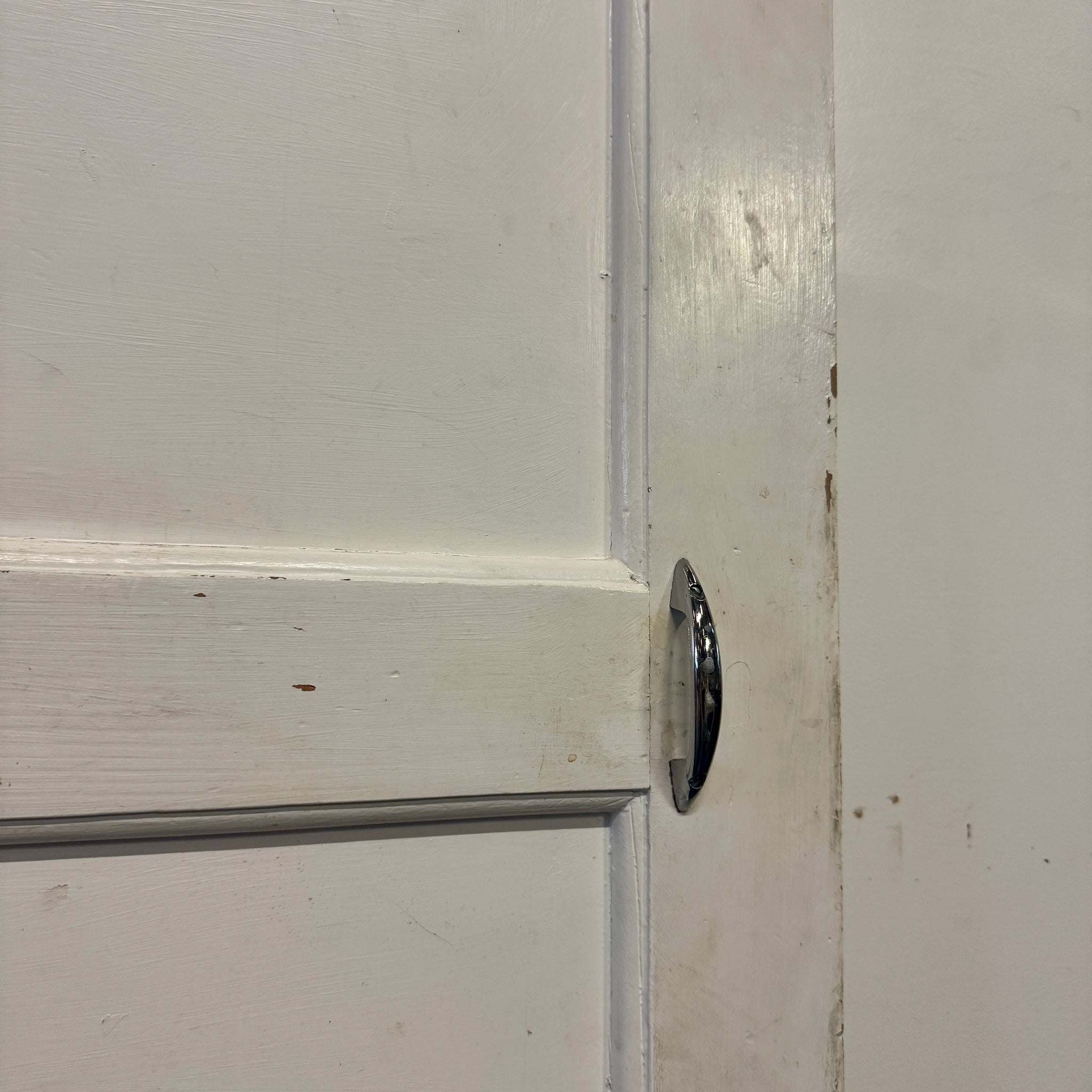 A charming mid-century internal door featuring a classic four-panel design, typical of the 1950s. Constructed from solid timber, the door retains its original period character, with clean, rectangular recessed panels that lend a simple yet timeless appeal.