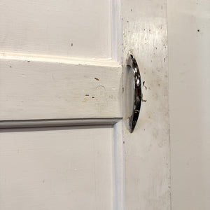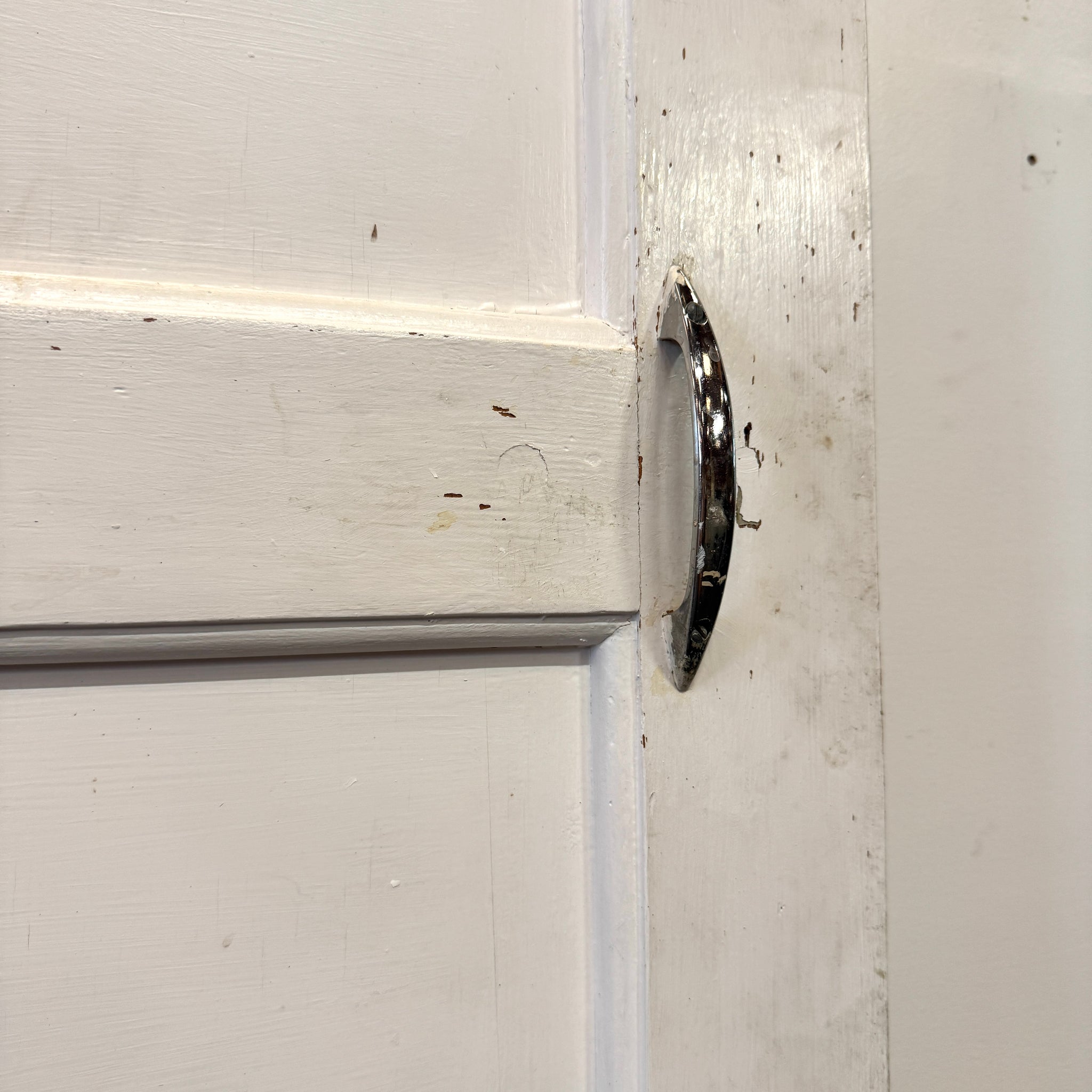 A charming mid-century internal door featuring a classic four-panel design, typical of the 1950s. Constructed from solid timber, the door retains its original period character, with clean, rectangular recessed panels that lend a simple yet timeless appeal.