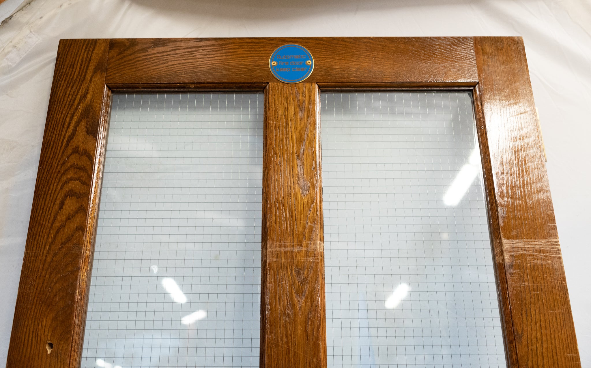 Last Door Remaining from this collection of 5-panel solid oak doors with glazed panels that we reclaimed from Mercers' Hall, London.