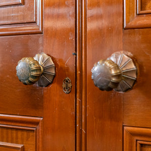 The solid doors have 3 raised and moulded panels to each side andcome complete with original ornate hinges, bolts and handles.