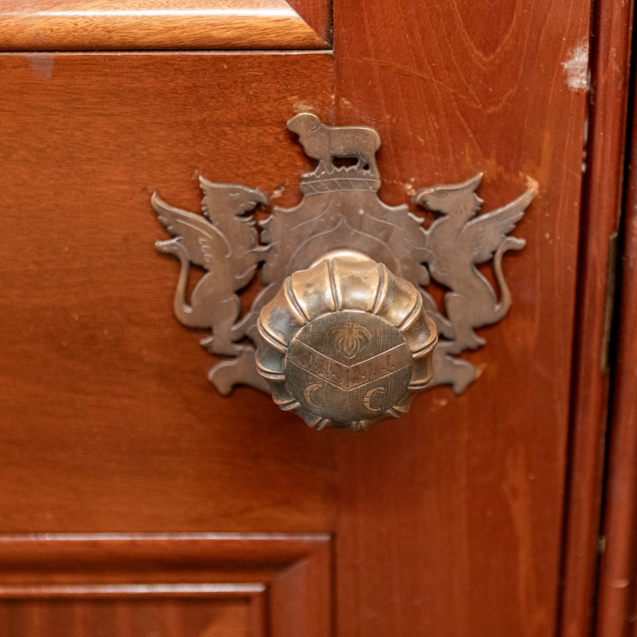 Magnificent mahogany entranceway reclaimed from Clothworkers Hall, London.
