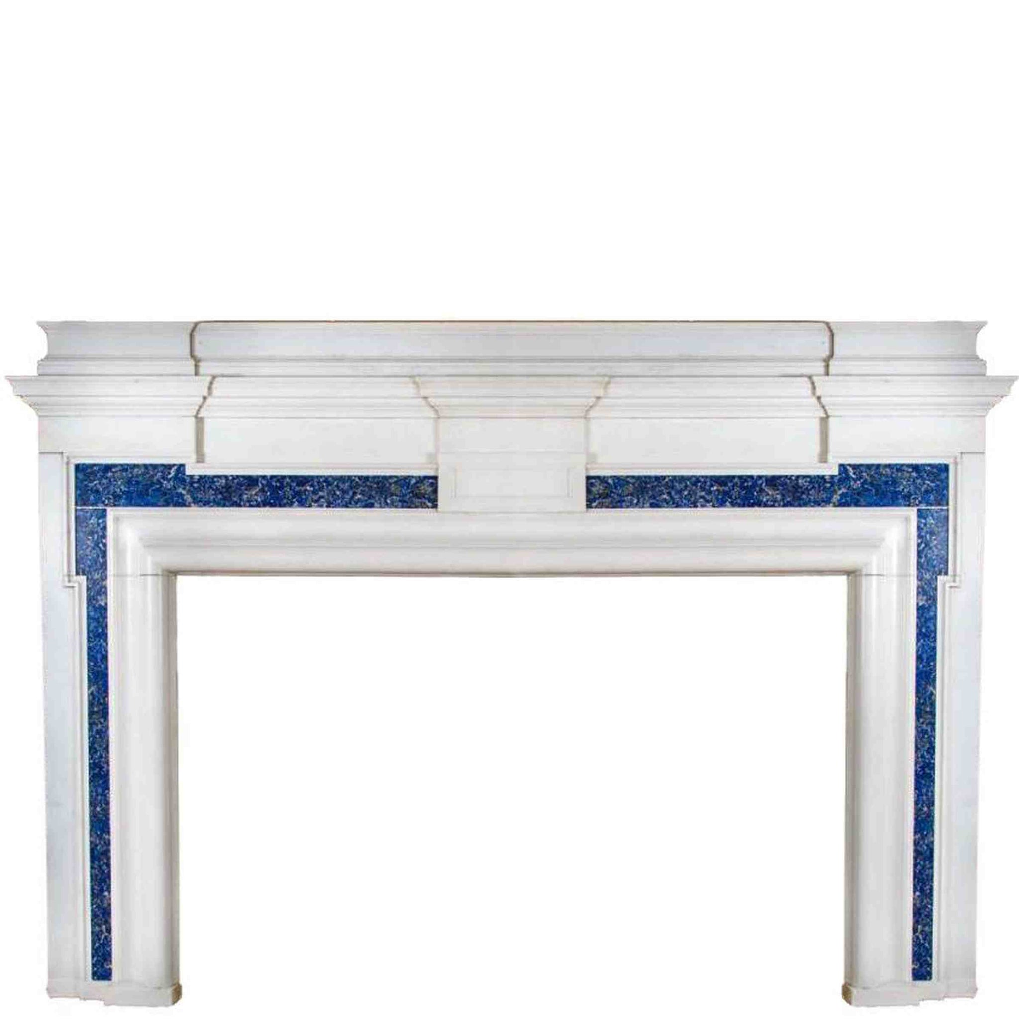 Spectacular antique marble fire surround crafted in Statuary marble, with Lapis Lazuli inlay.