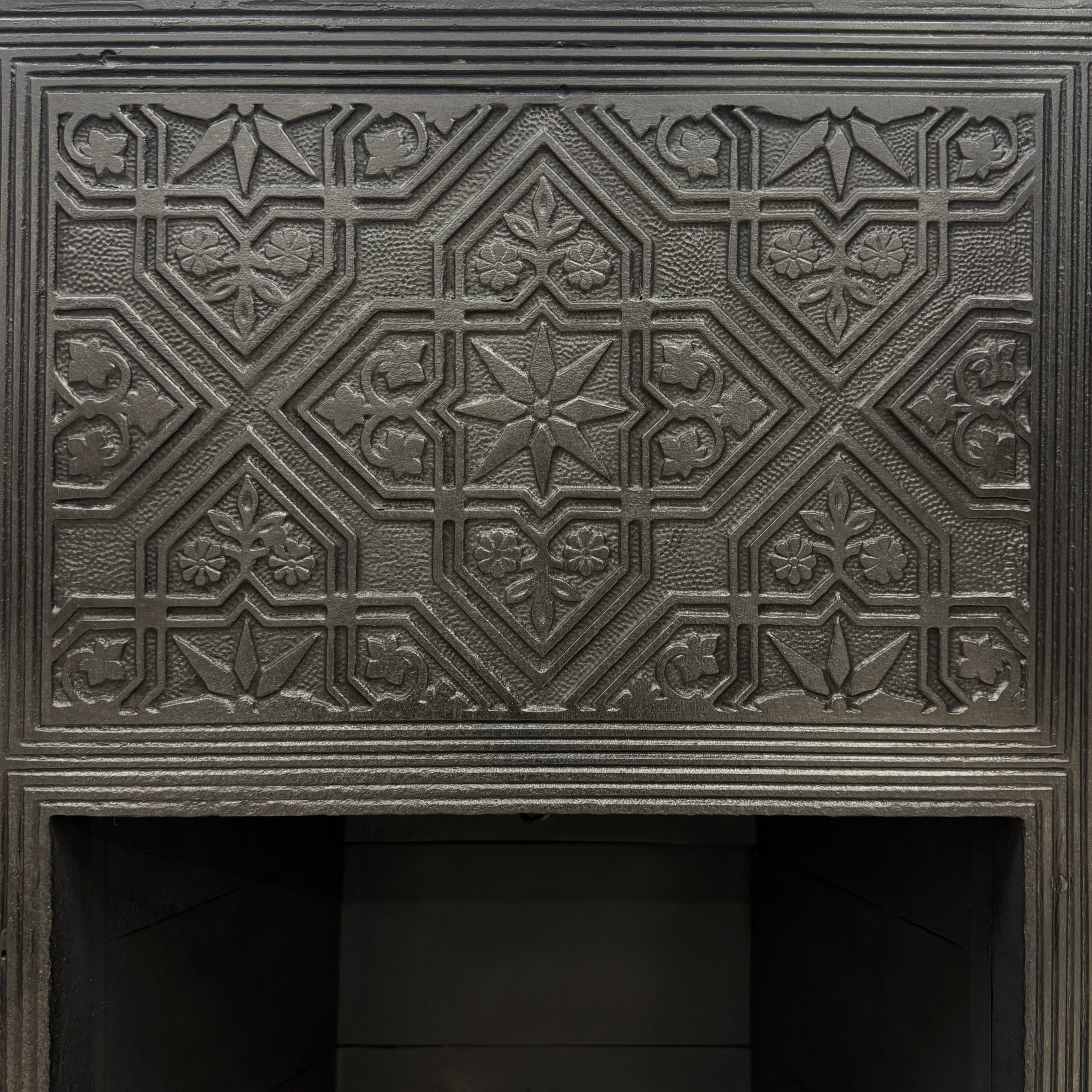 An exceptional Aesthetic Movement cast iron fireplace insert, manufactured by Bishop & Barnards, circa 1870 and inspired by the designs of Thomas Jeckyll - one of the most influential figures of the movement.