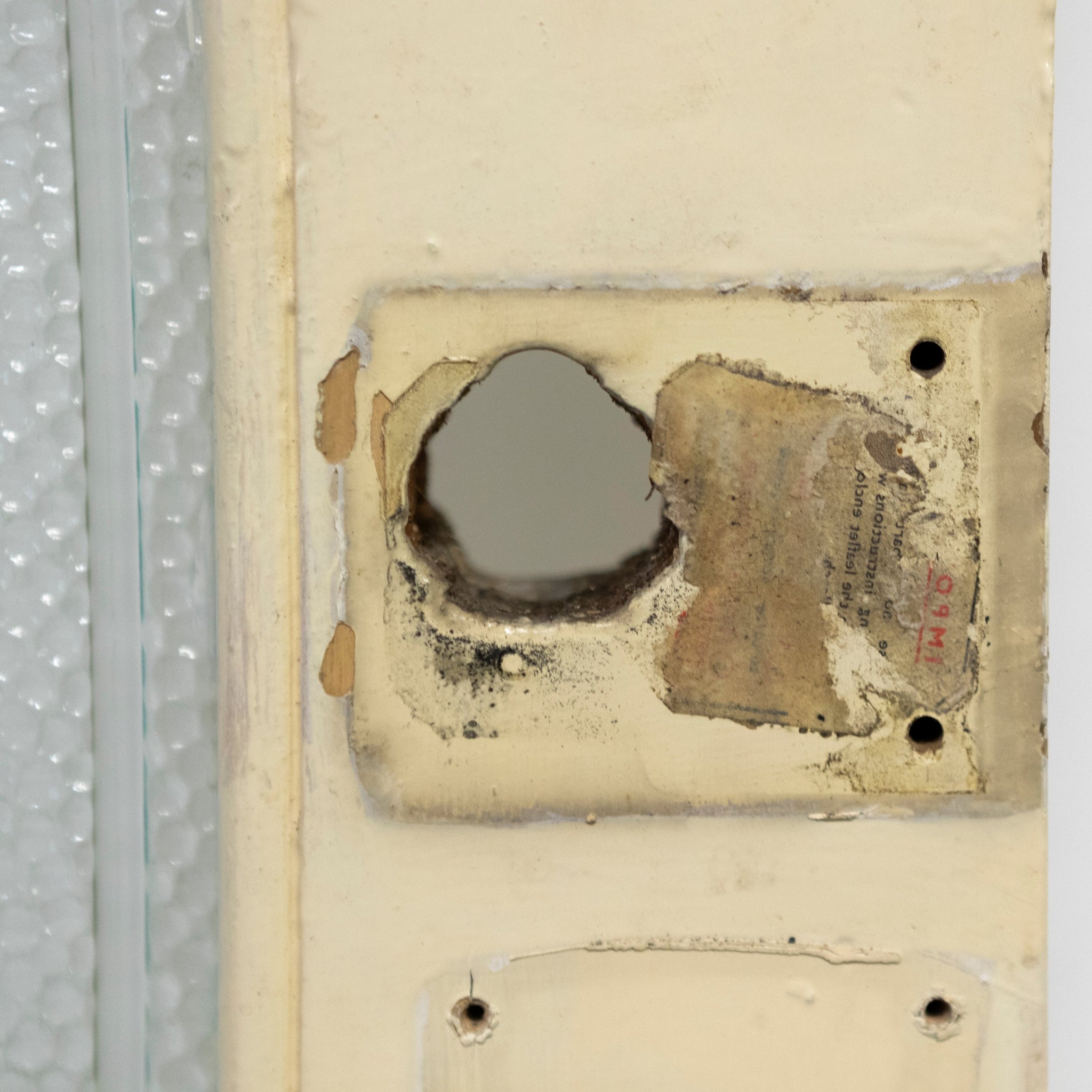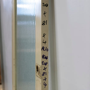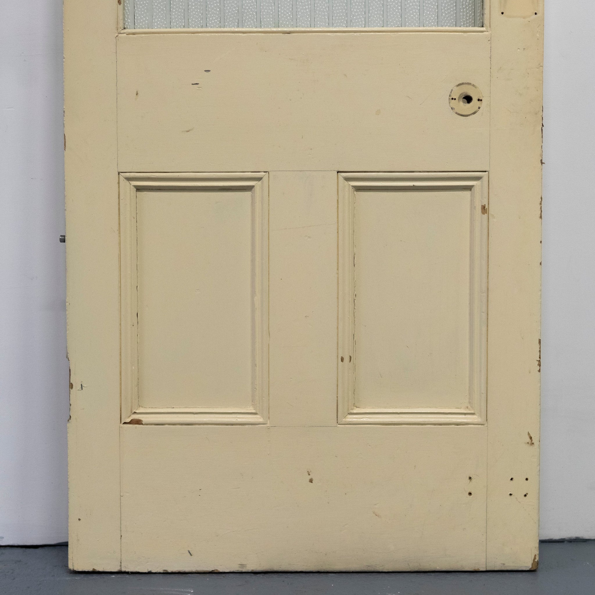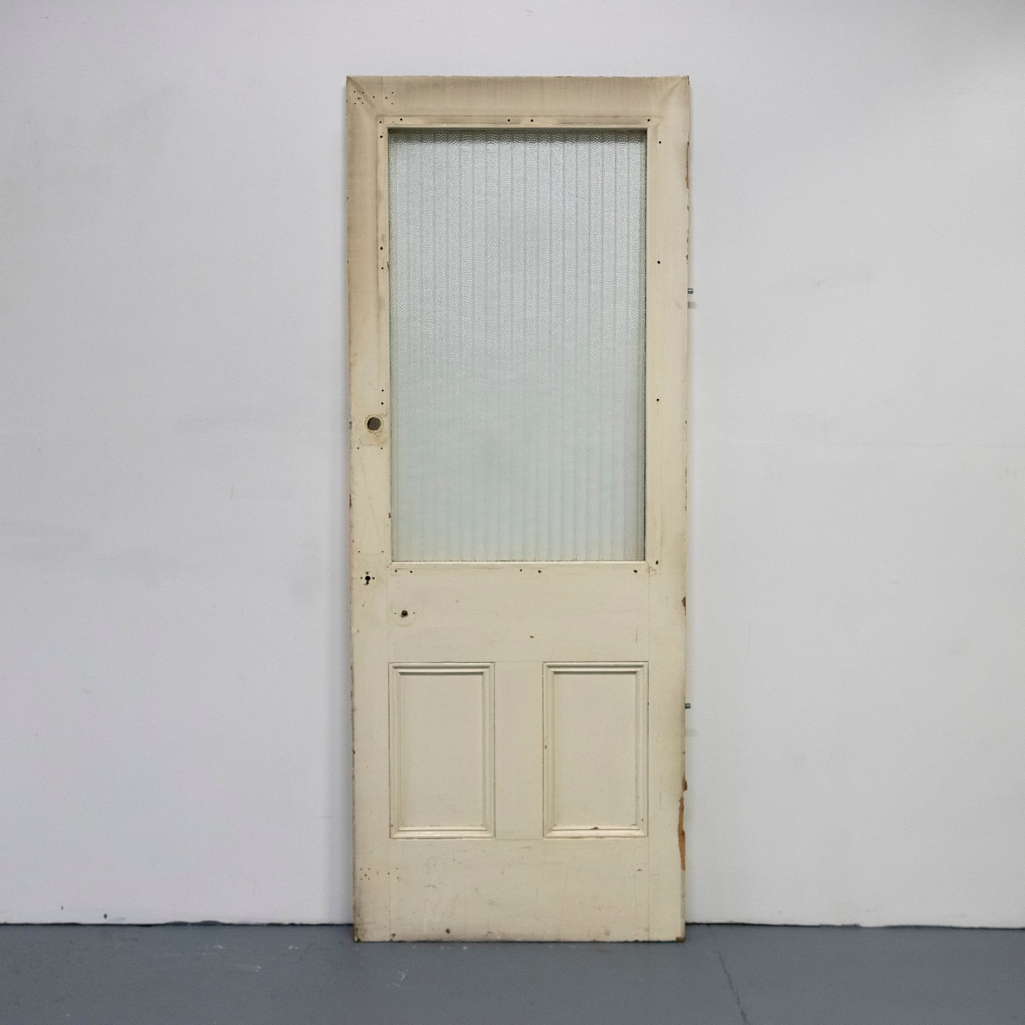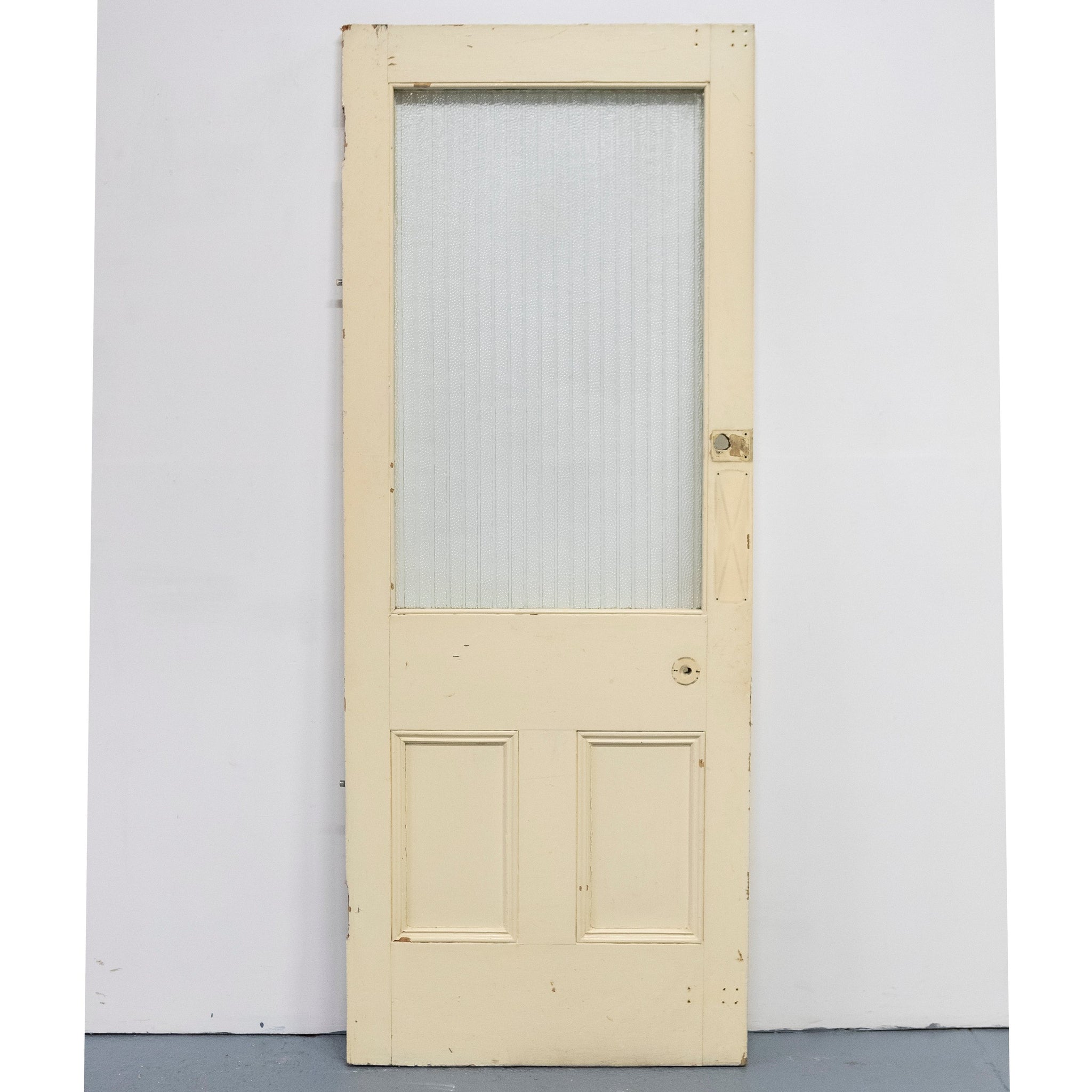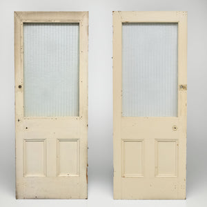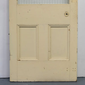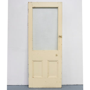 This antique Victorian door has an upper glazed panel with ribbed and texxtured glass.