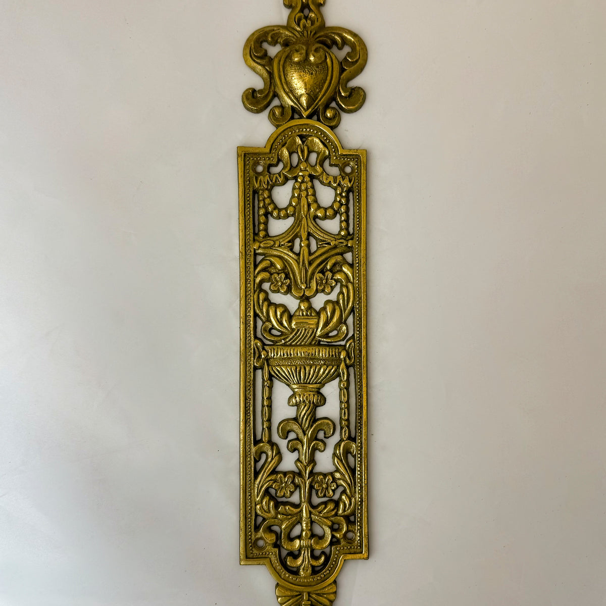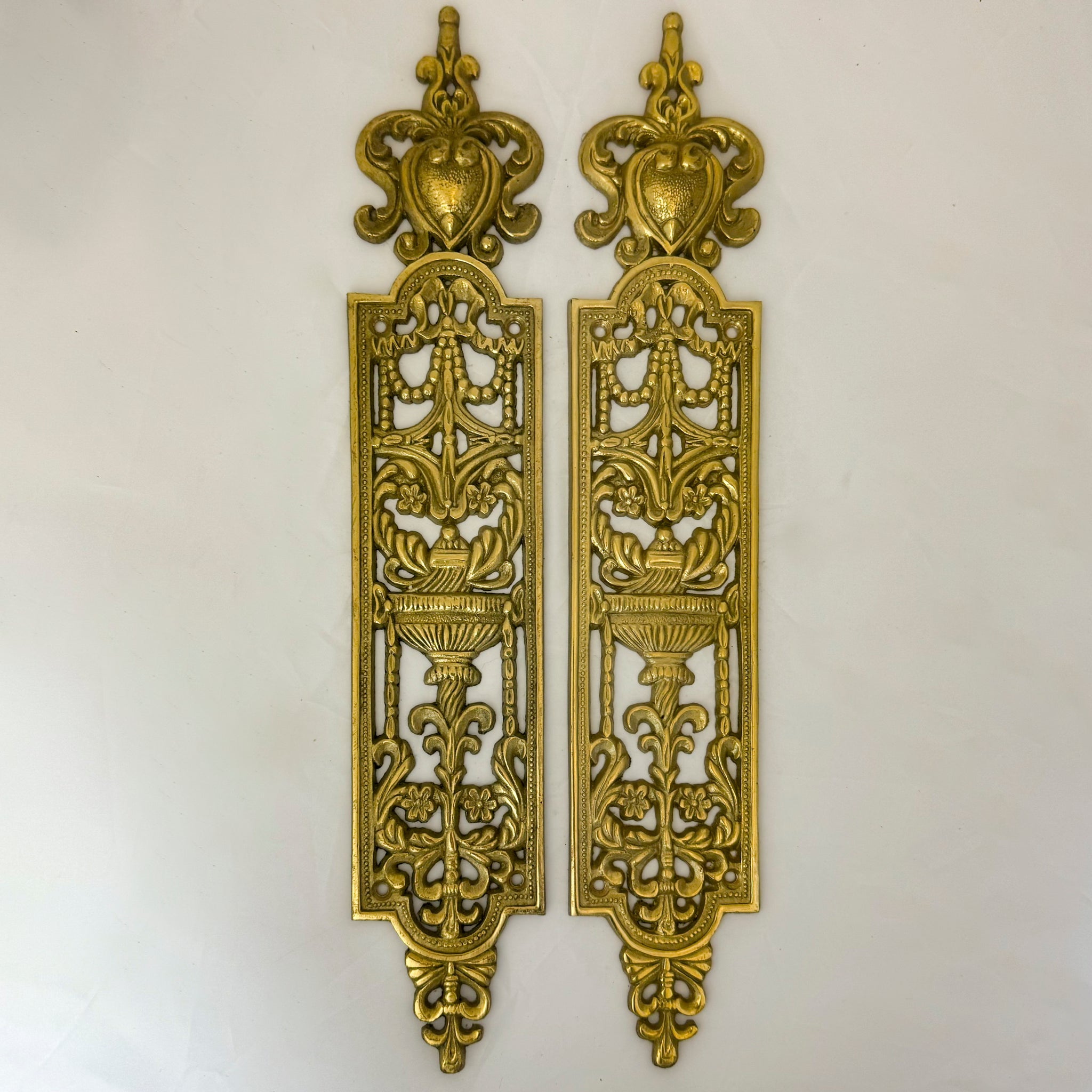 These reclaimed brass finger plates not only serve a functional purpose but also elevate the aesthetic of any door with their sophisticated designs, featuring charming urns, elegant swirls, and intricate floral patterns, making them a perfect choice for adding a touch of timeless elegance to your space.