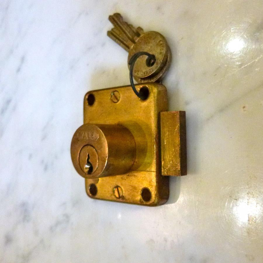 A large selection of small locks in brass in varying sizes. These attractive reclaimed locks could be used to secure many period furniture items. The majority of the locks have a simple polished finish and are approximately 1.5cm deep. All locks are in full working order and have keys. These locks are being sold individually.