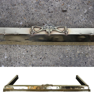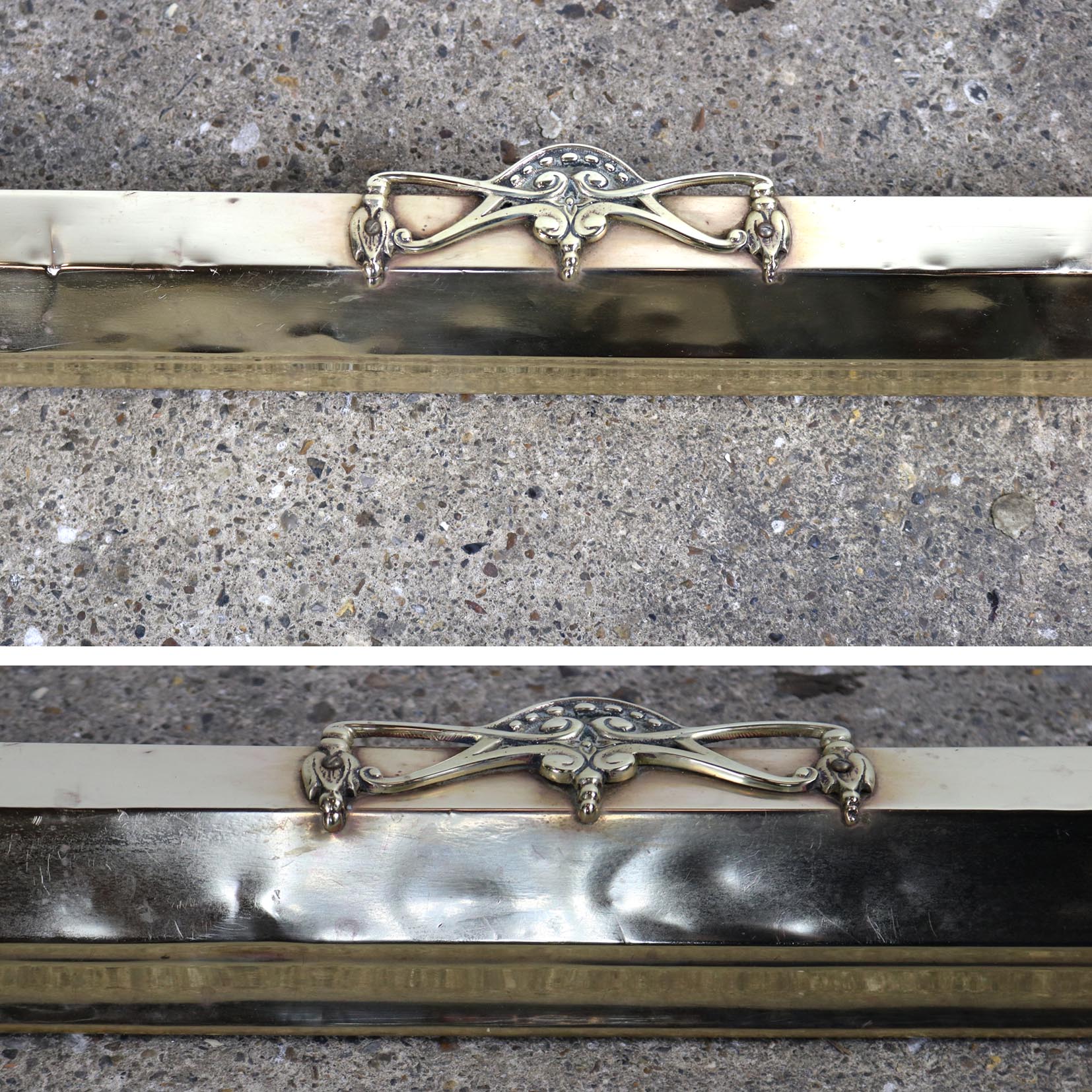 A simple and elegant polished brass fireplace fender with adornment typical of its era.
