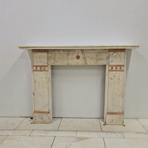 A refined Edwardian marble fireplace surround, dating to the early 20th century, carved from fine Carrara marble and enriched with Giallo odi Siena marble.
