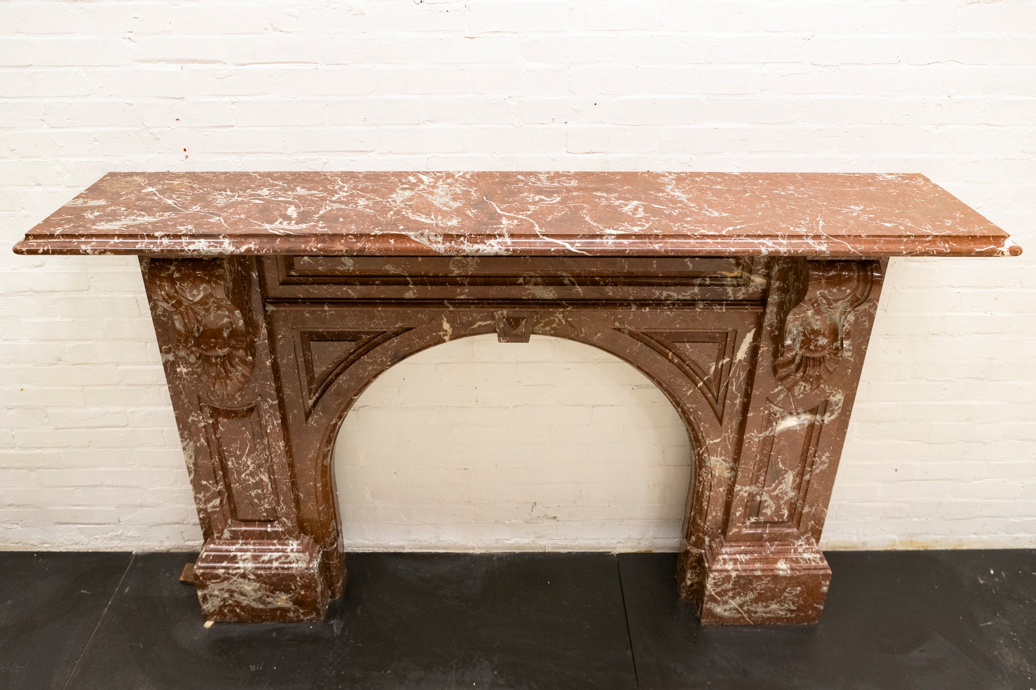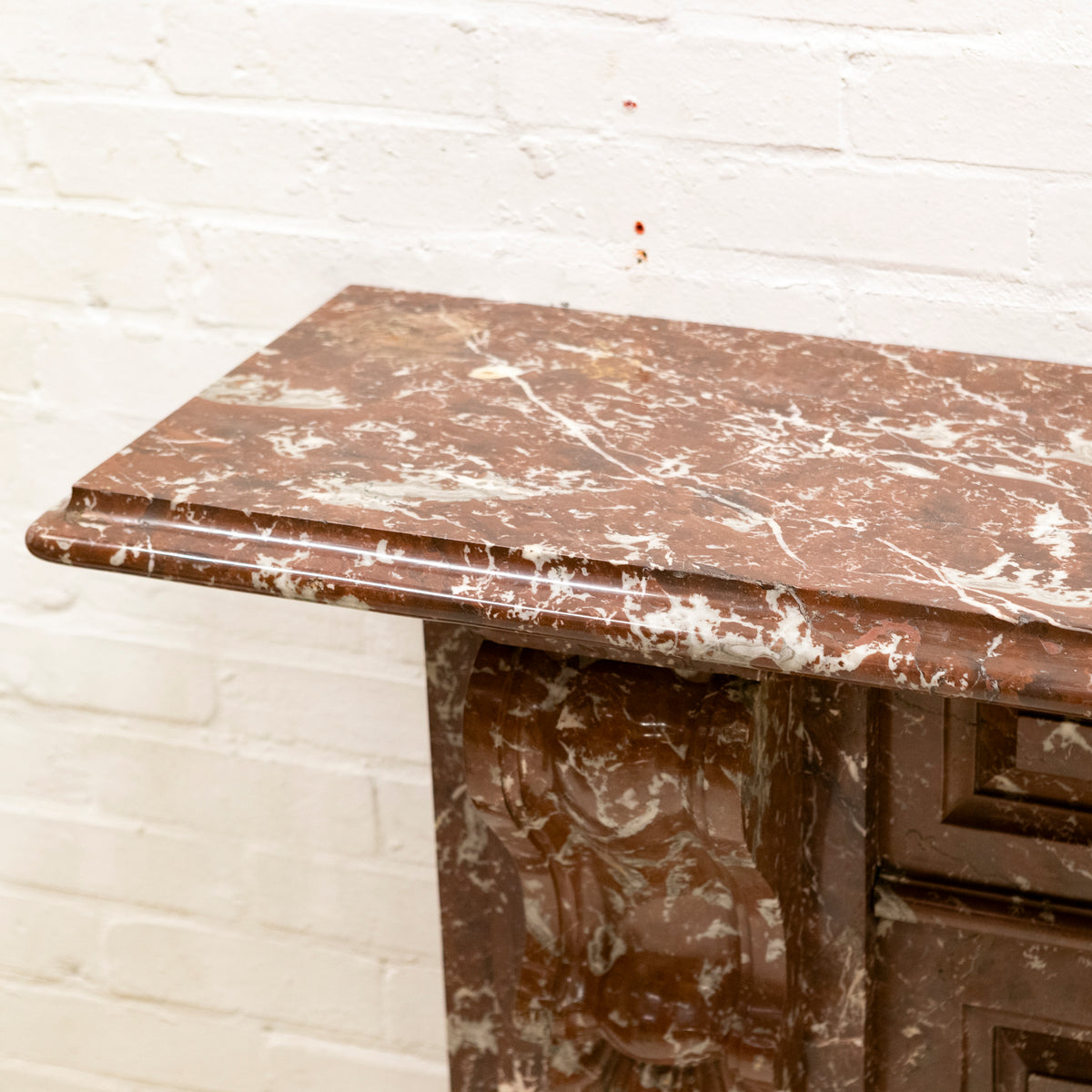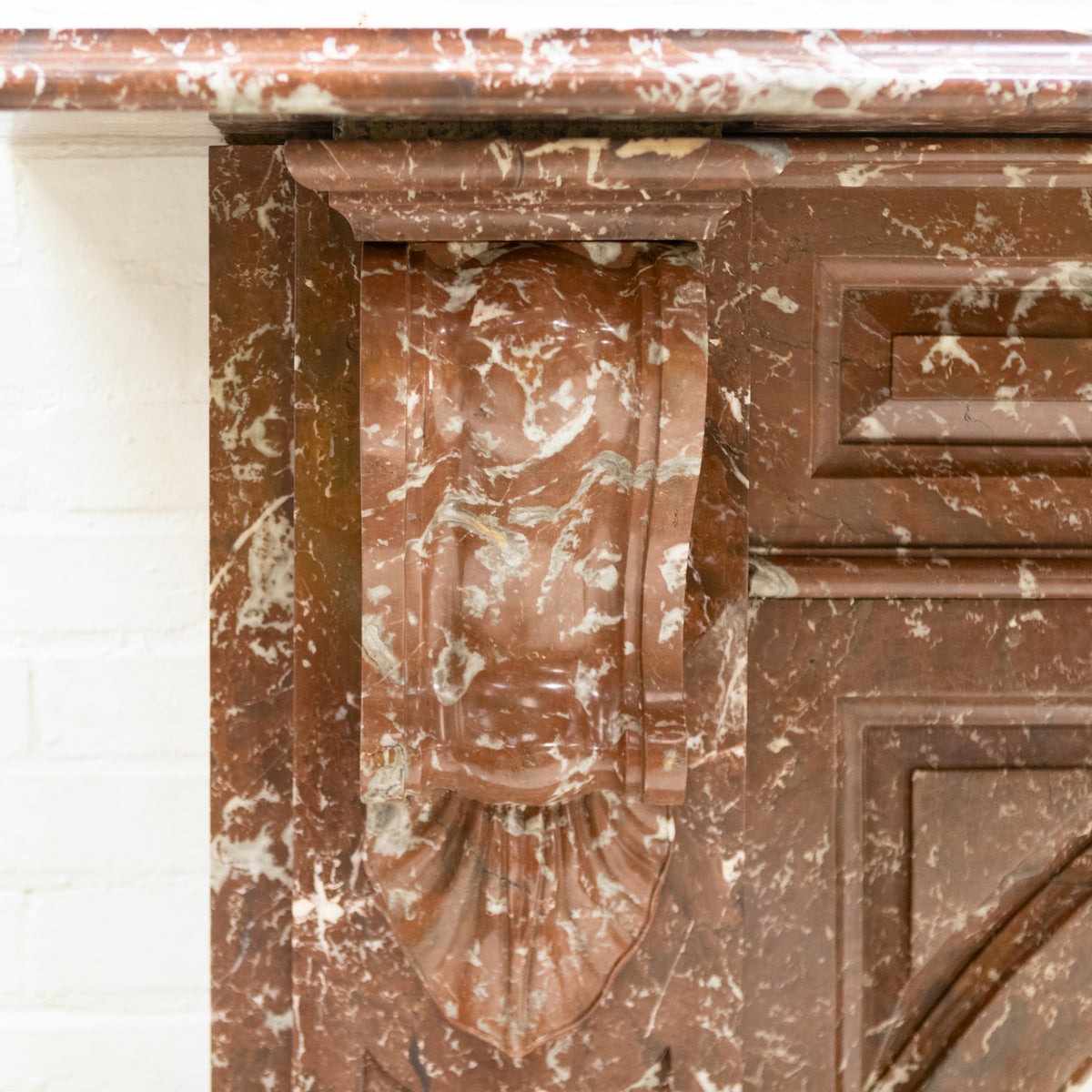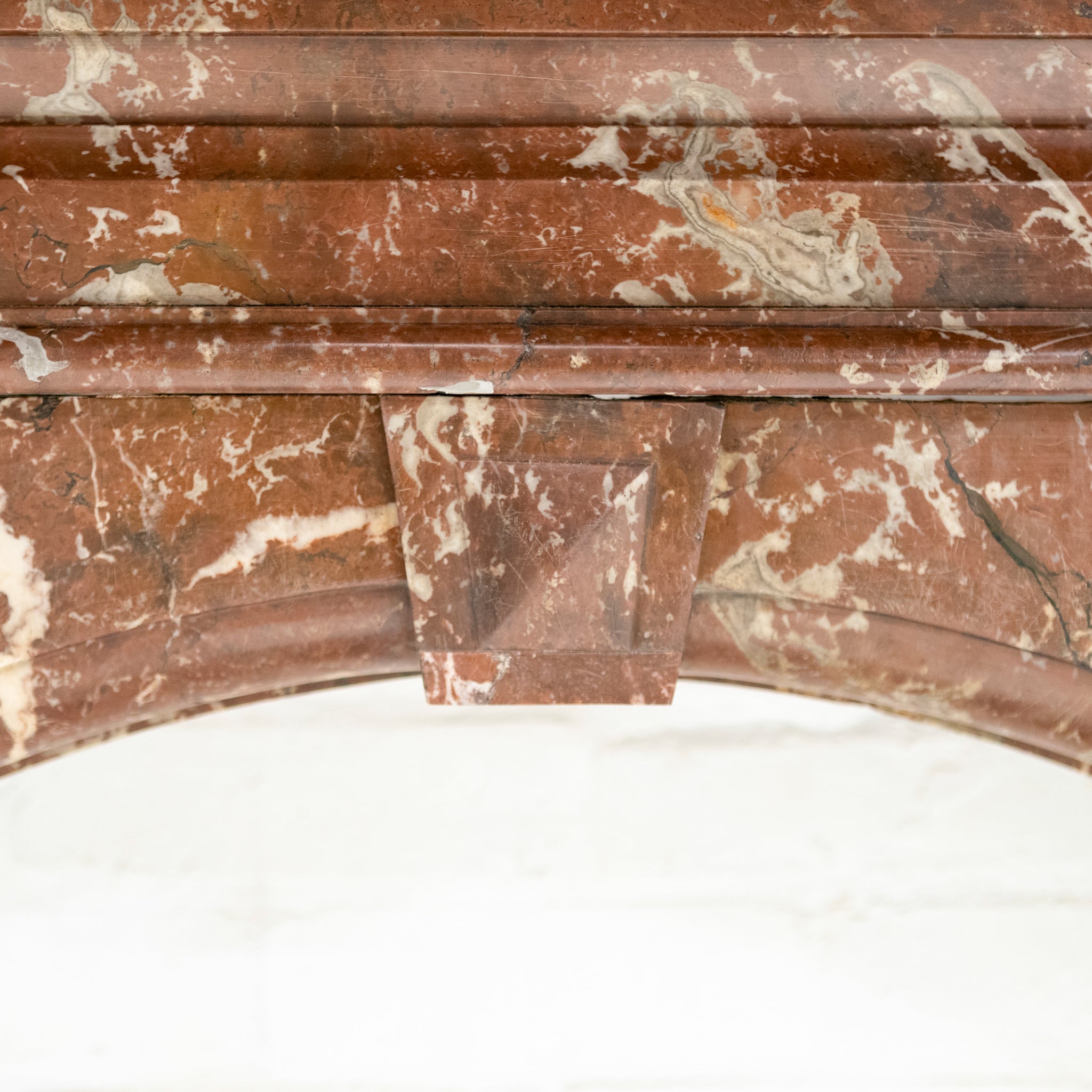 Crafted from striking Rouge Royal Red Marble, this original late Victorian early Edwardian chimneypiece has been gently restored in-house.