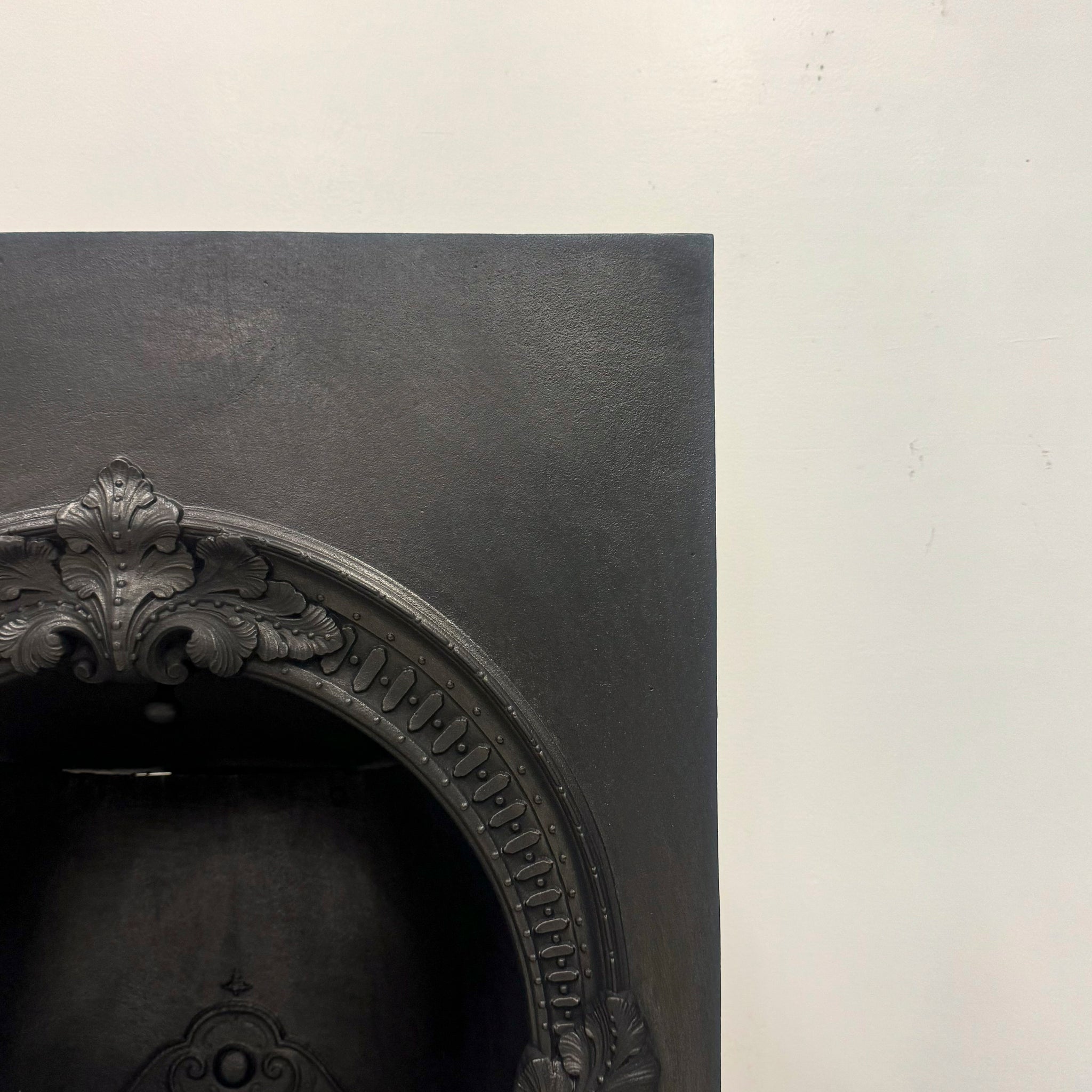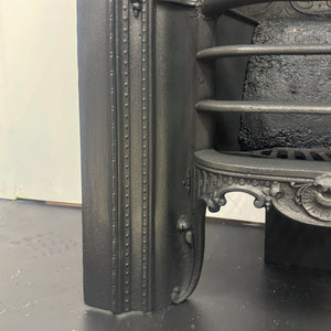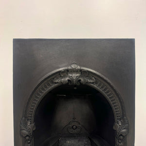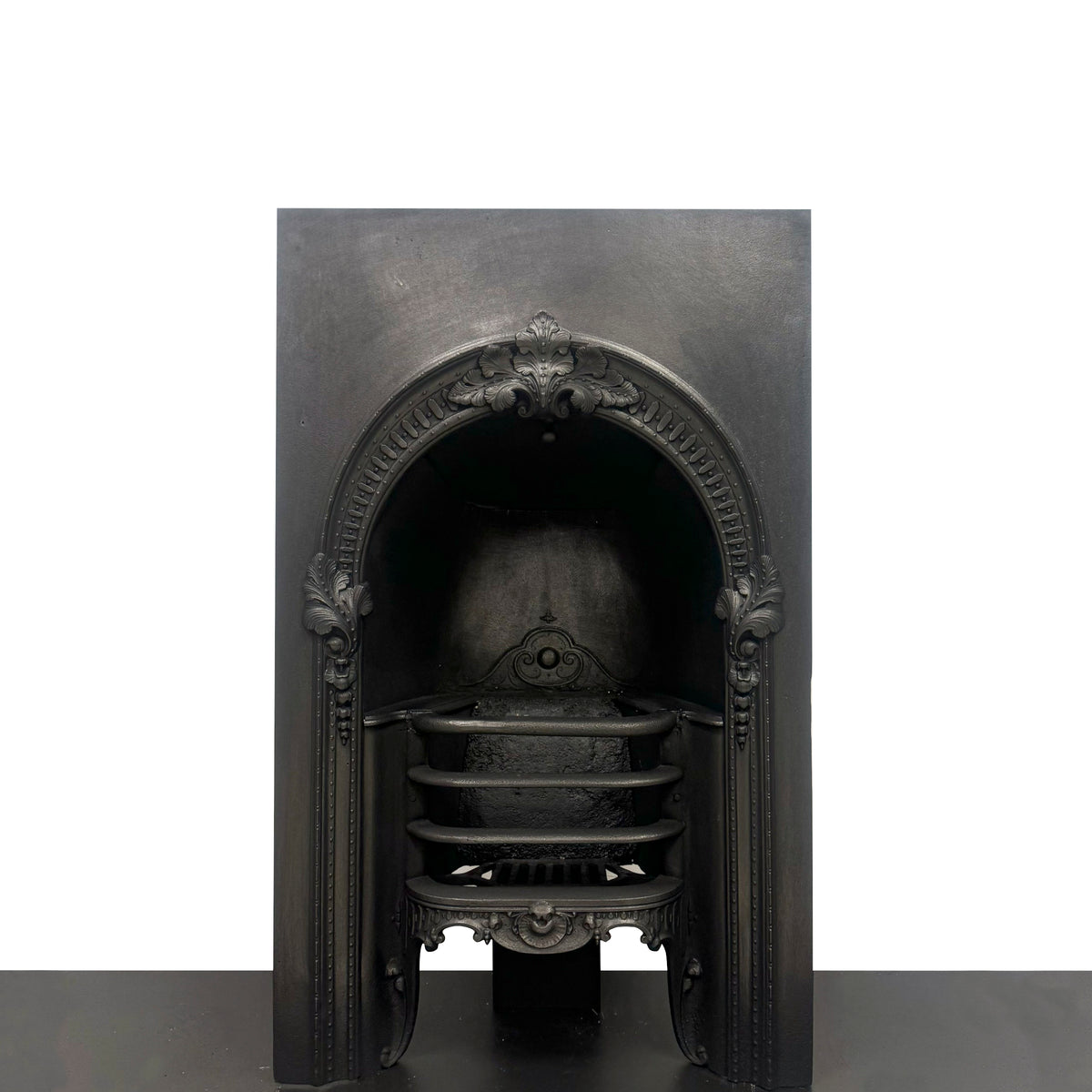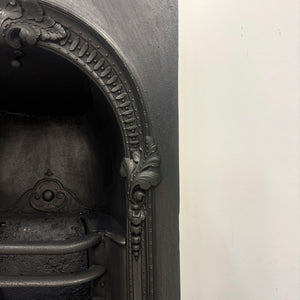 A splendid antique Victorian arched fireplace insert in cast iron.