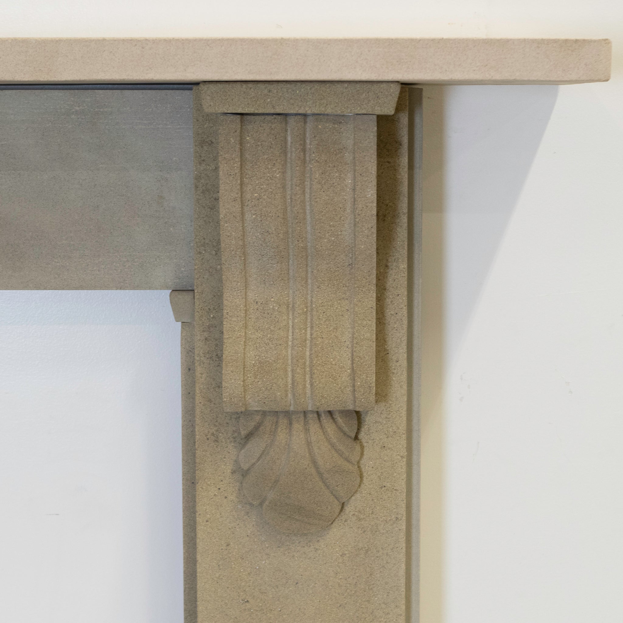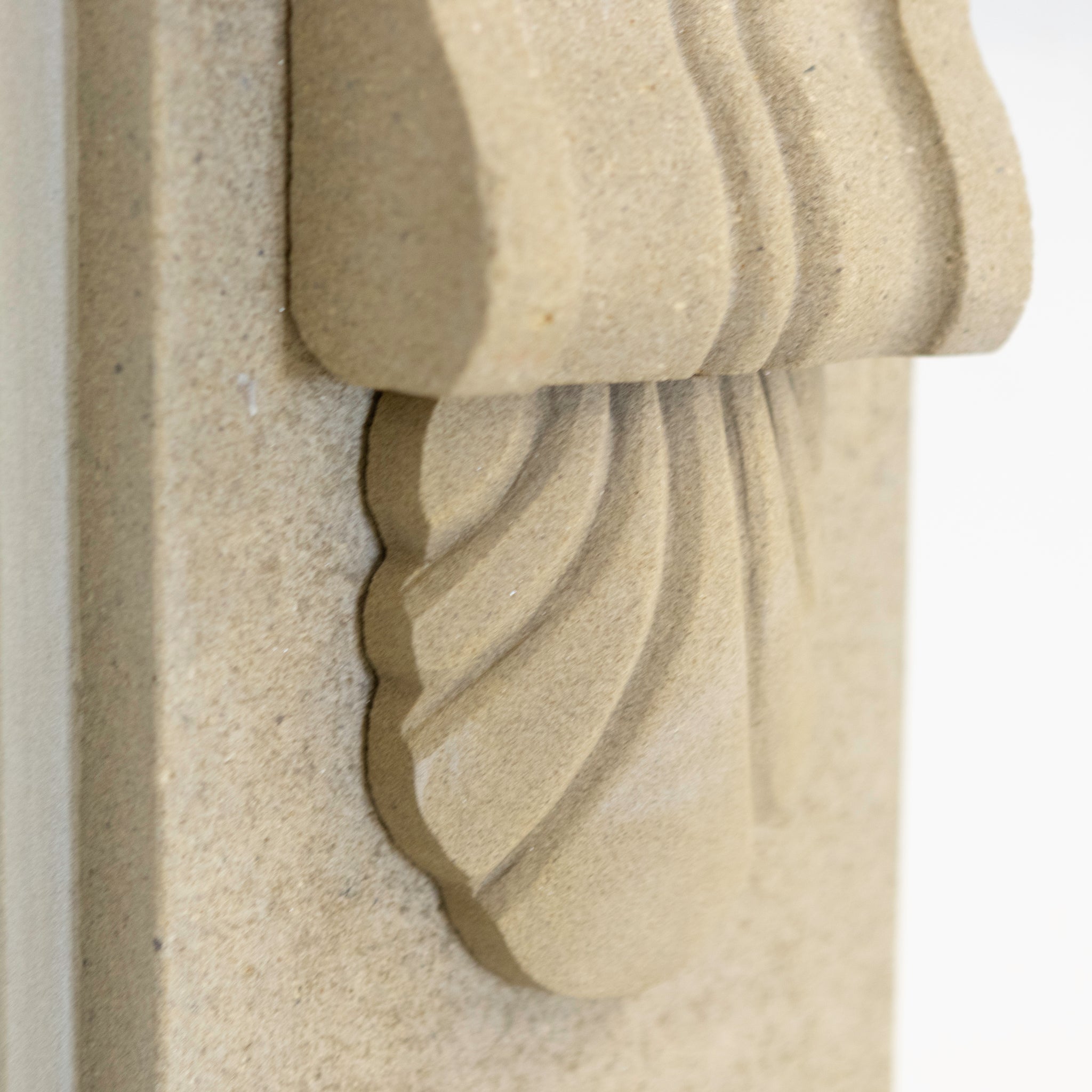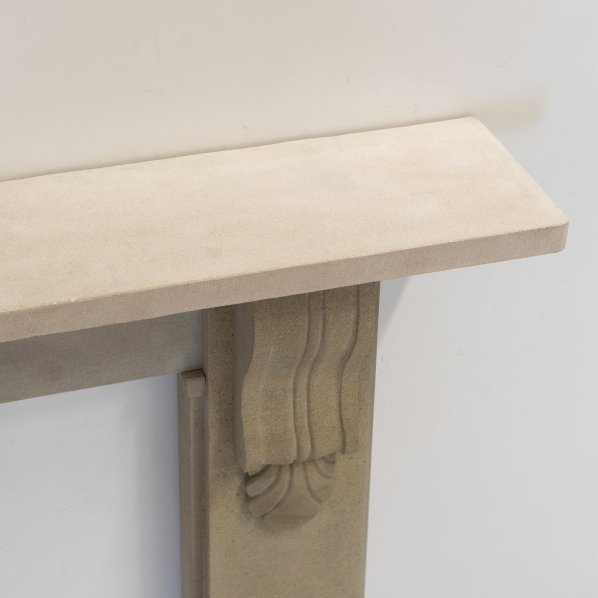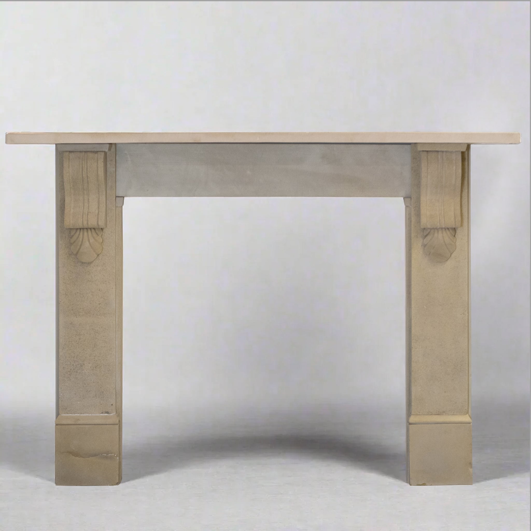 This classic surround features flat-fronted jambs that are surmounted by hand-carved corbels,