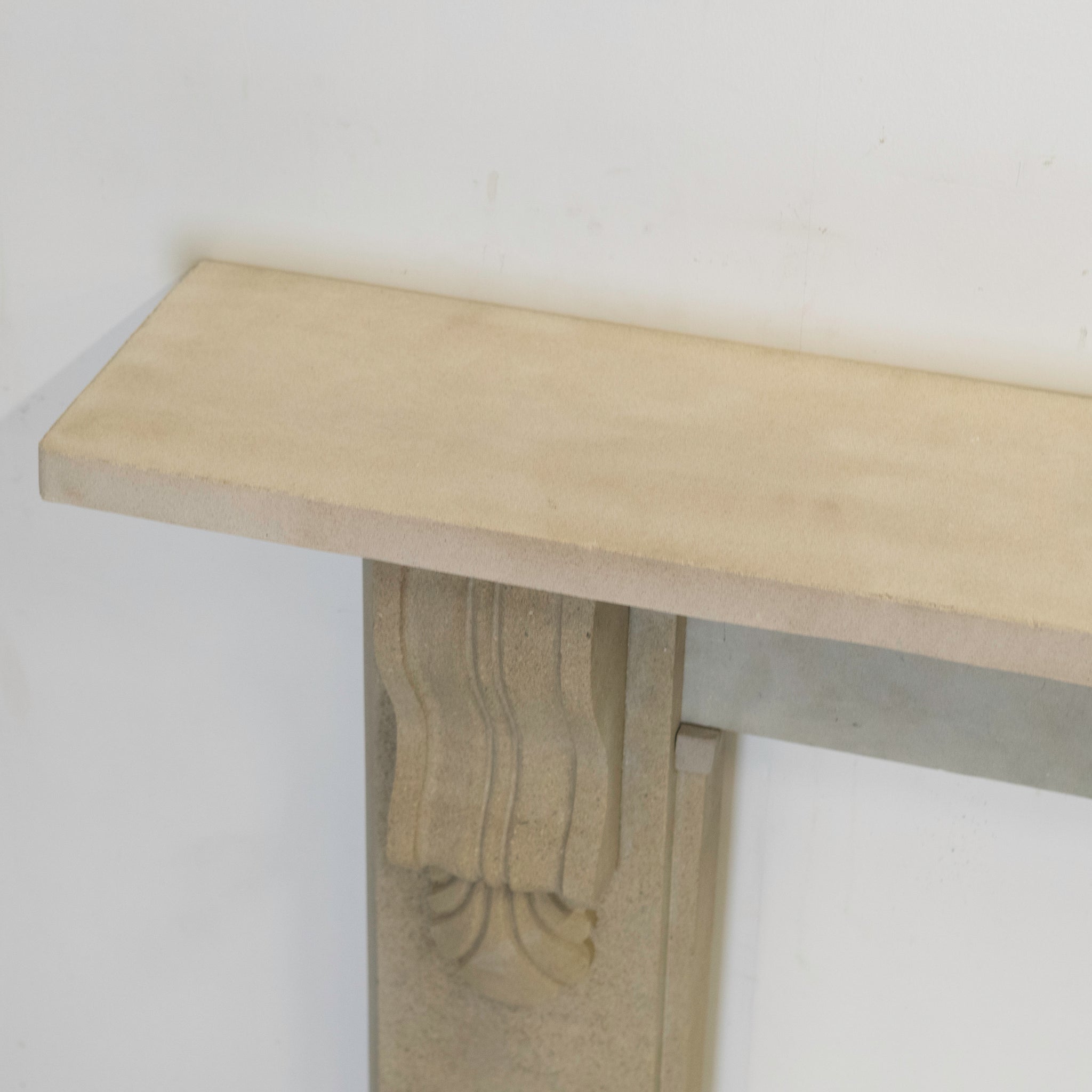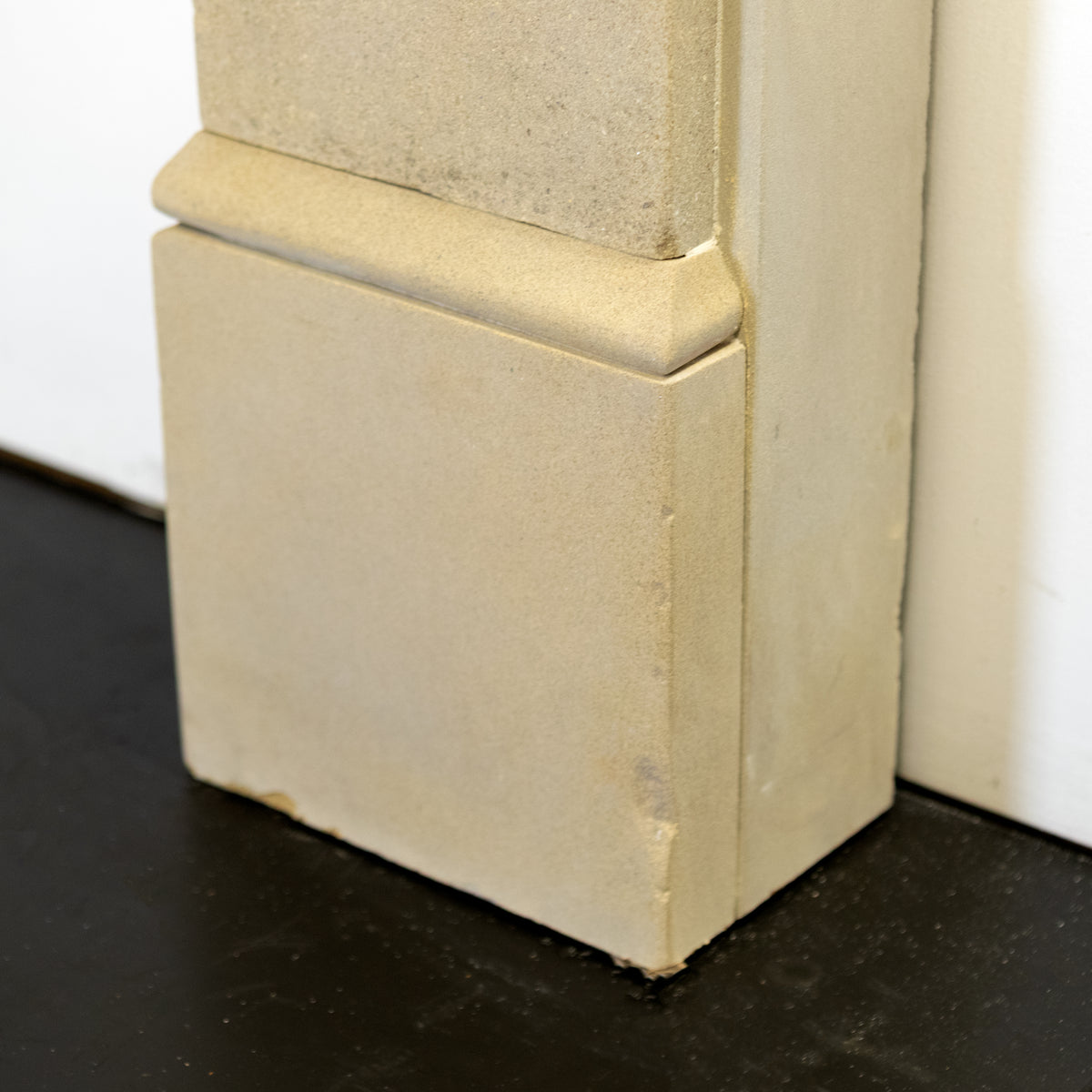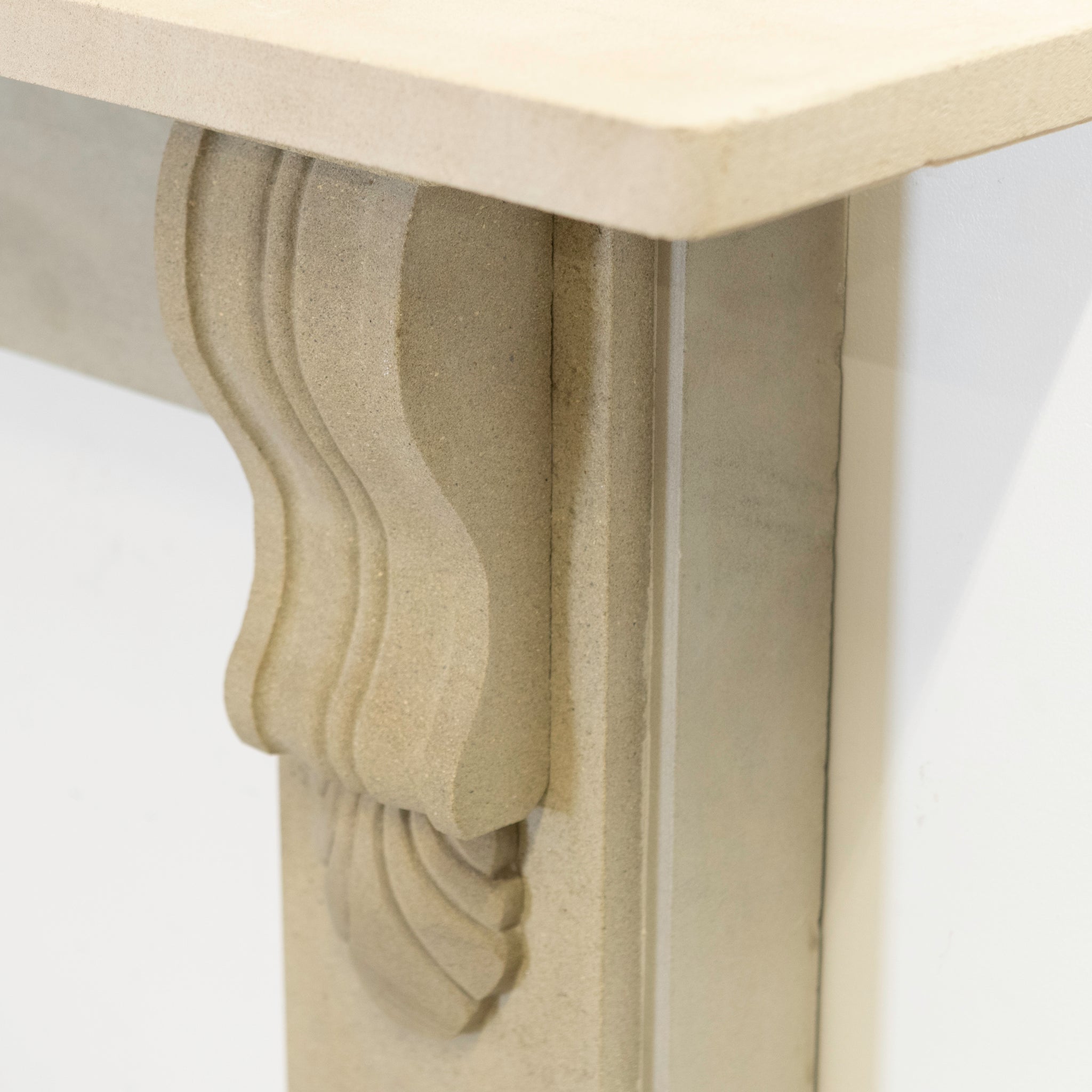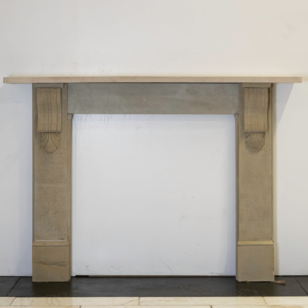 This classic surround features flat-fronted jambs that are surmounted by hand-carved corbels,