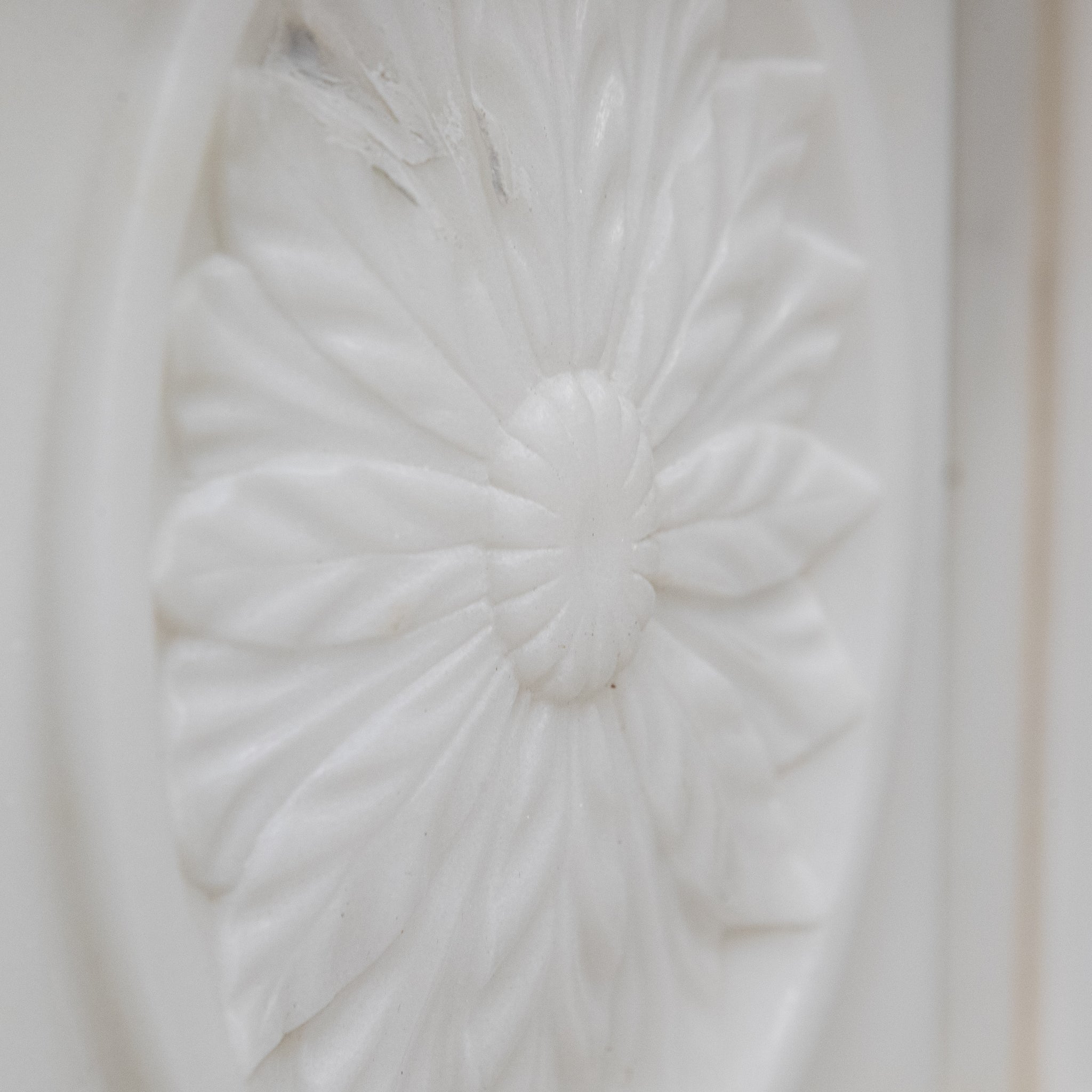 A rare and highly refined early 19th century Regency chimneypiece in statuary marble, executed with an exquisite level of carving and architectural control.