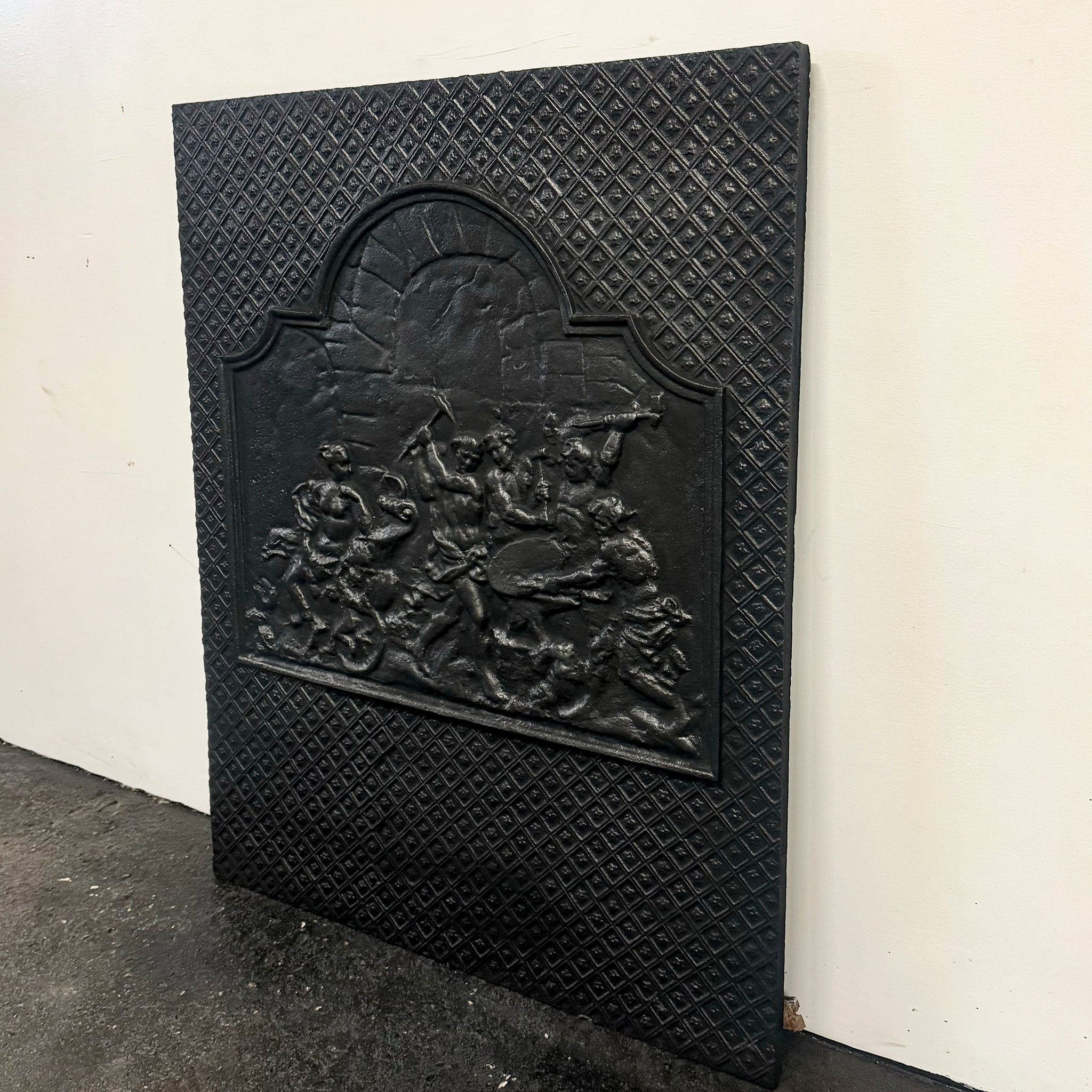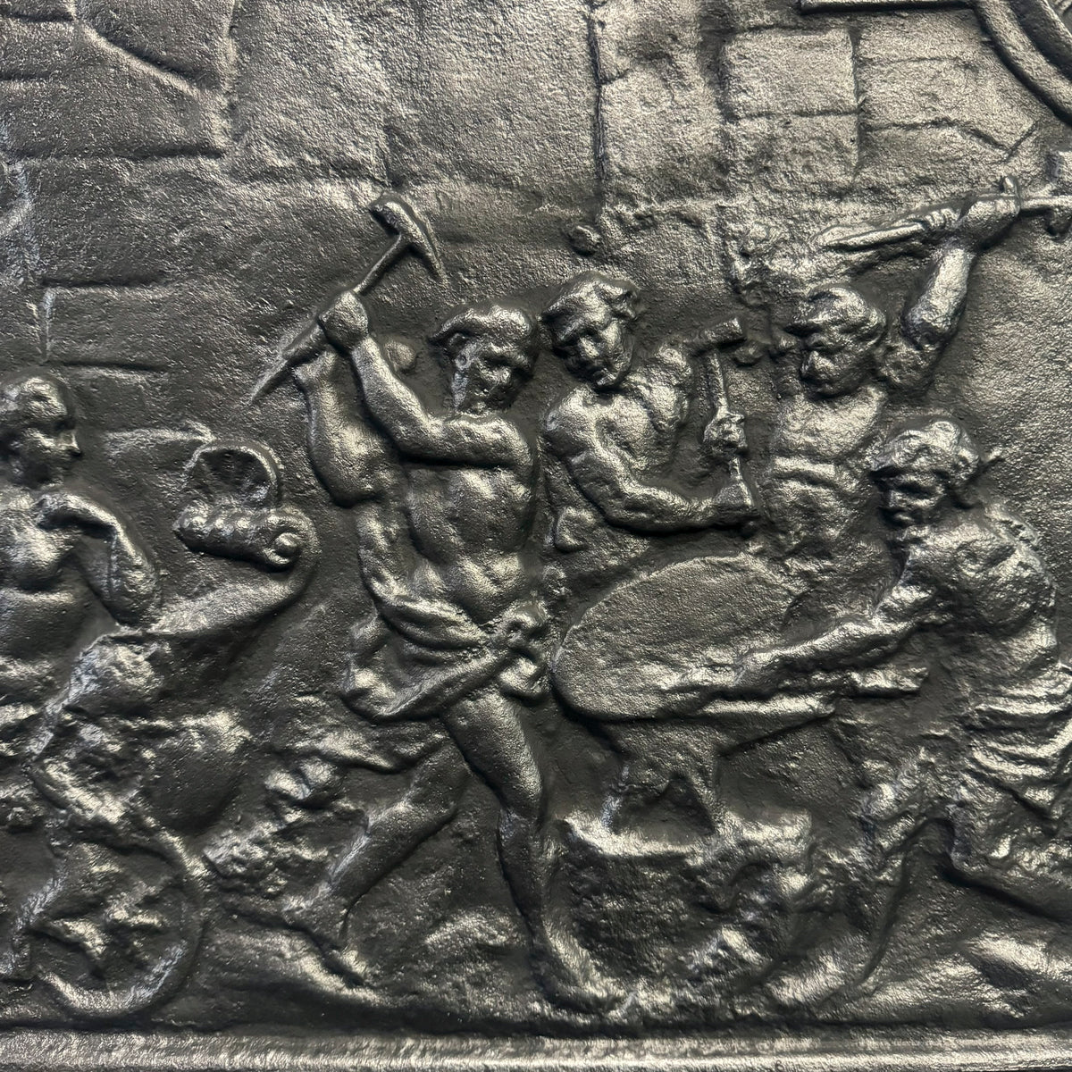 This beautifully crafted cast iron fire back plate not only enhances the aesthetic appeal of your fireplace but also serves a functional purpose by reflecting heat into the room. Its intricate designs showcasing the Roman god of fire add a touch of classical elegance, making it a unique focal point that complements both modern and traditional decor.