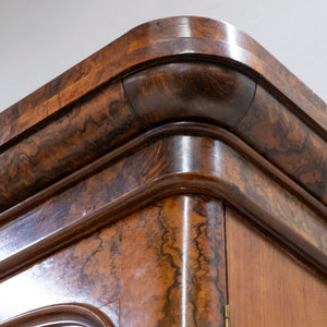 With gently curved edges and elegant proportions, this antique Burr Walnut dresser is a stunning example of fine Victorian cabinetry.