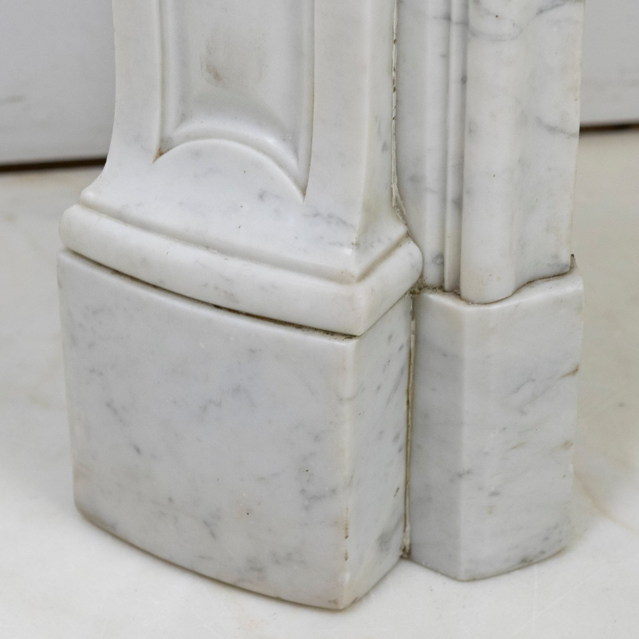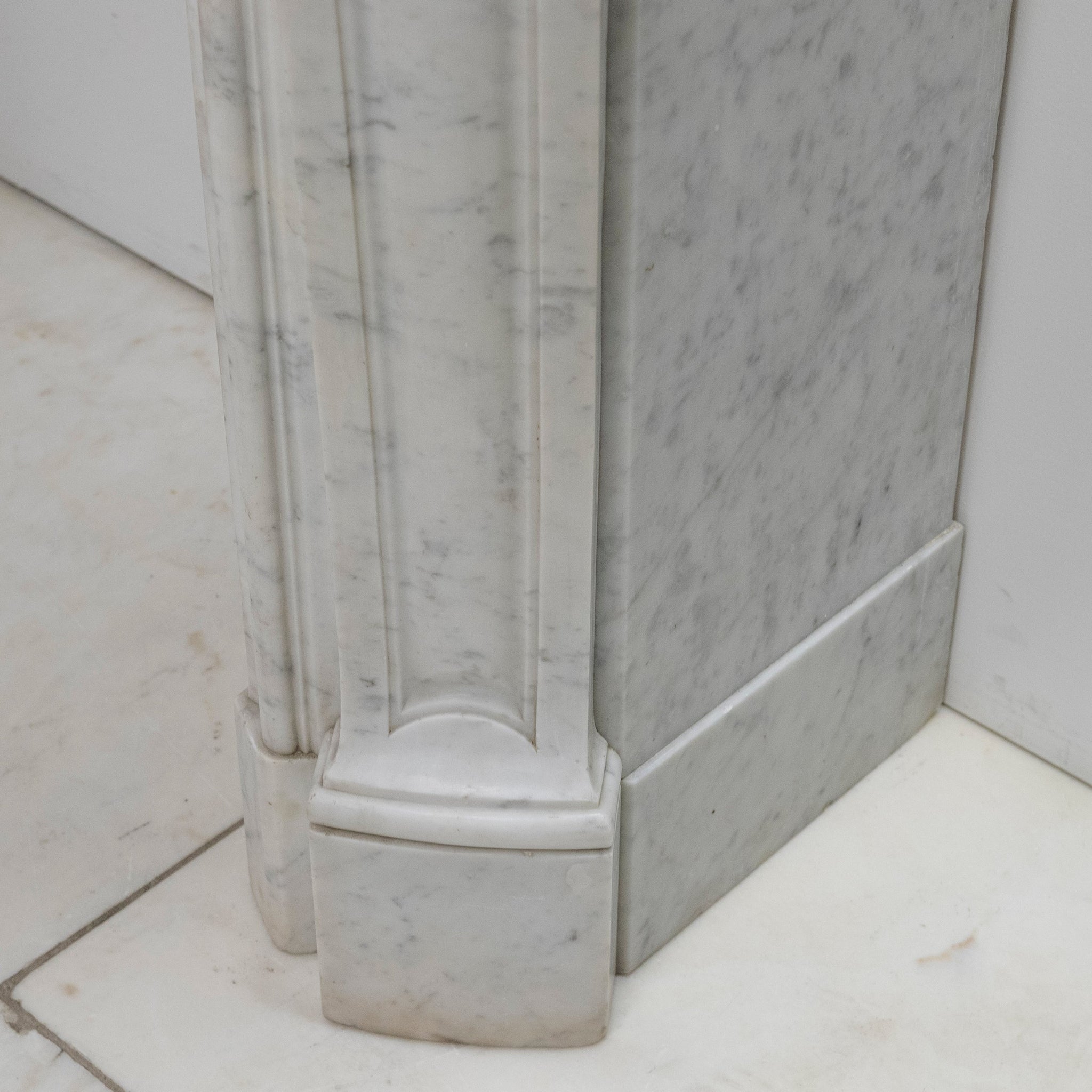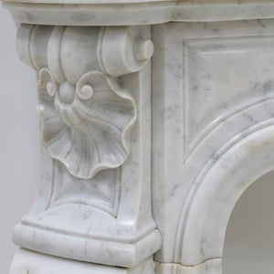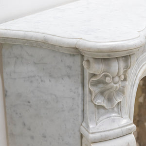 An elegant 19th-century marble fireplace surround, carved in a refined Louis XV–influenced manner.