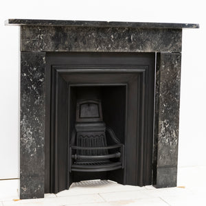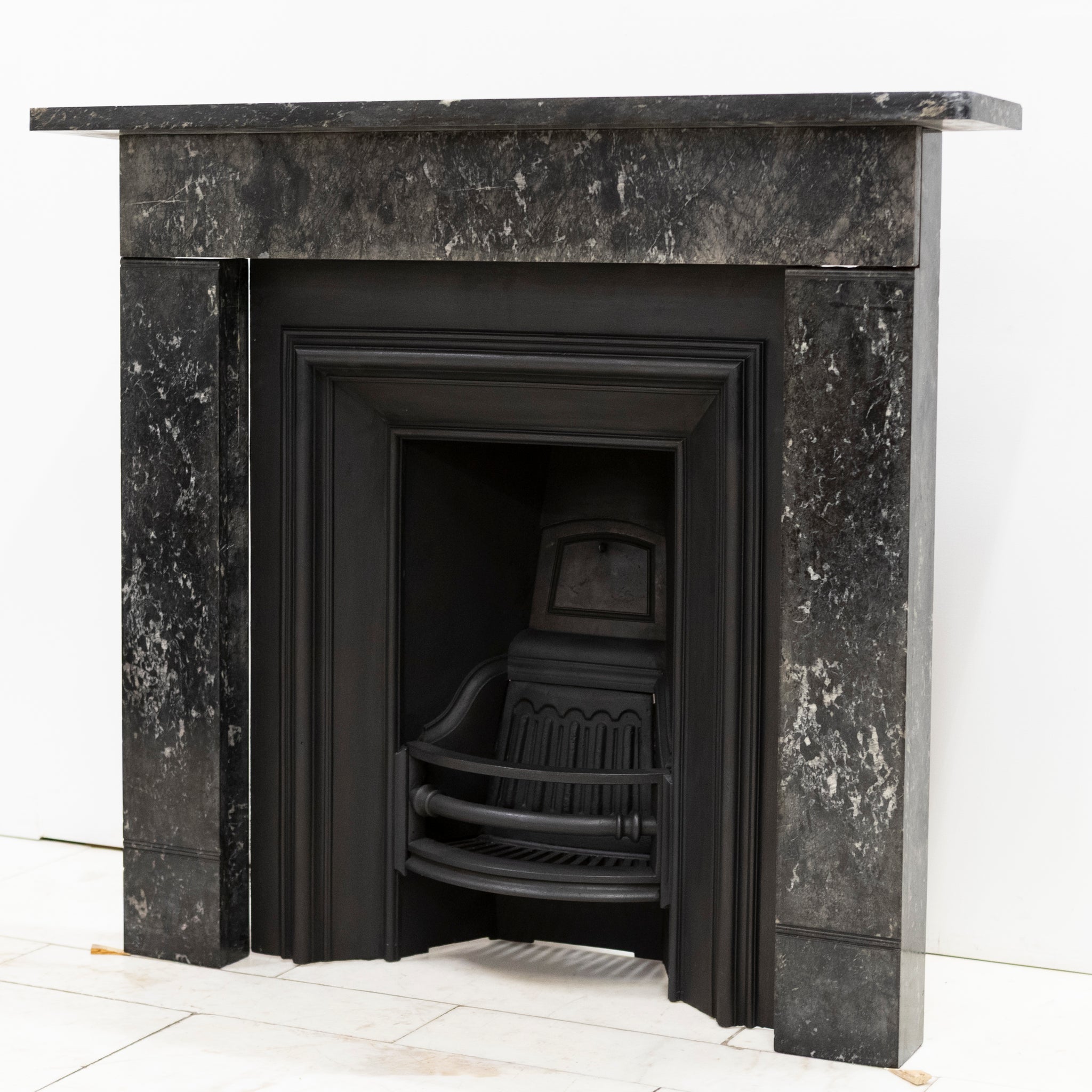 A handsome and well-proportioned Georgian period fireplace surround, carved from Irish Kilkenny marble, and offered complete with its original cast iron insert—a rare and highly desirable combination.