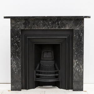 Antique Georgian Irish Black Limestone Fireplace with Original Cast Iron Insert