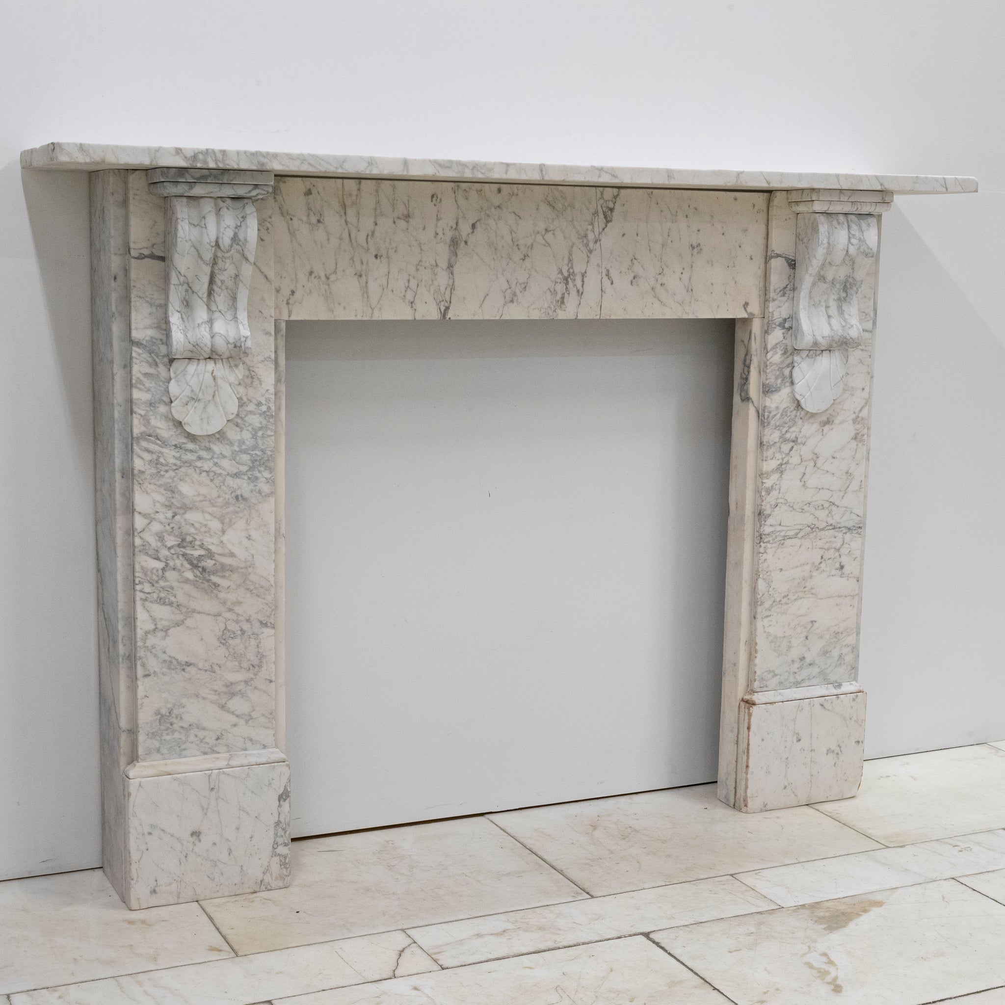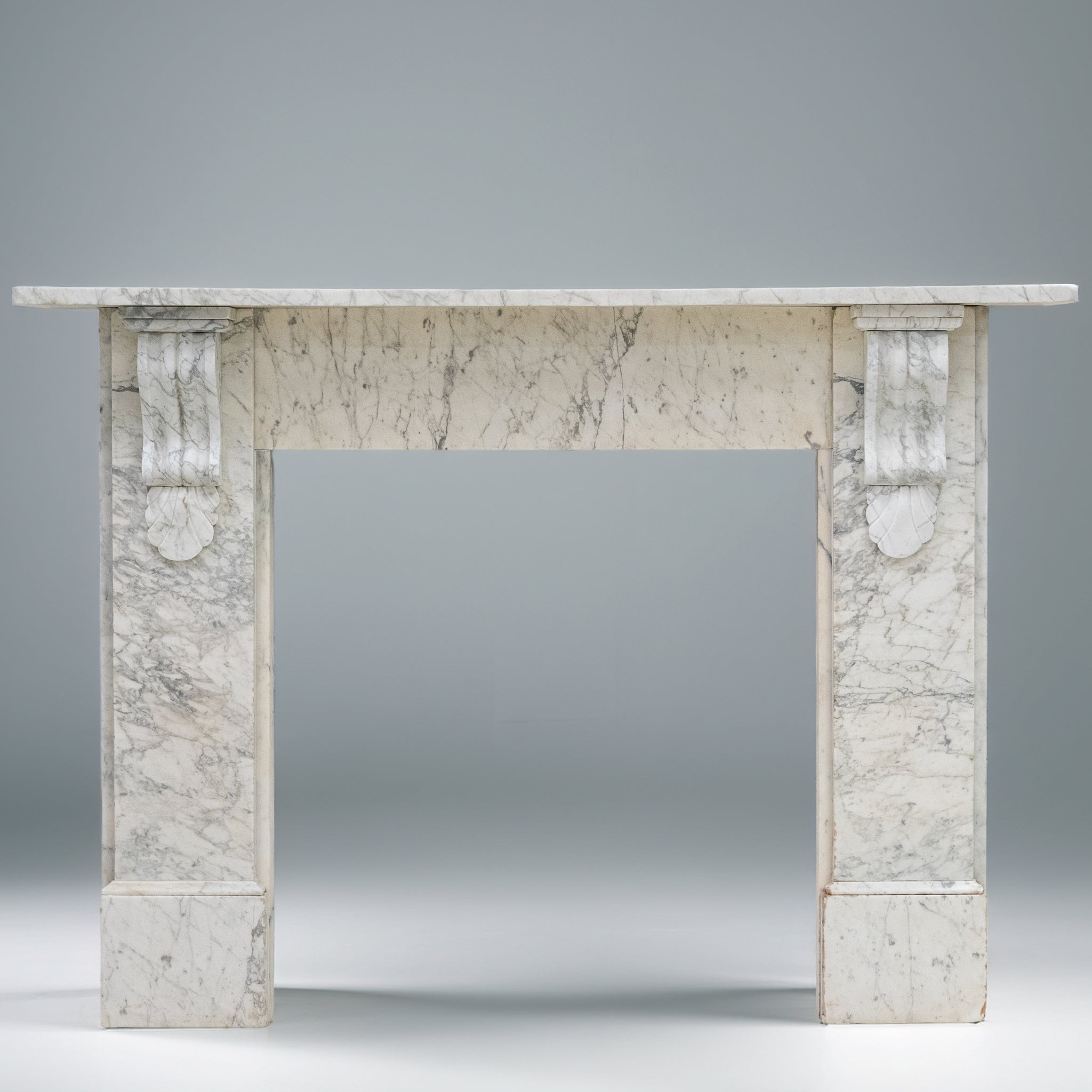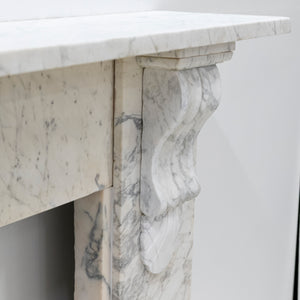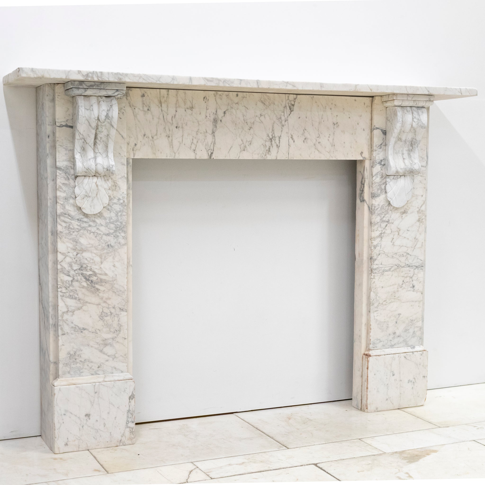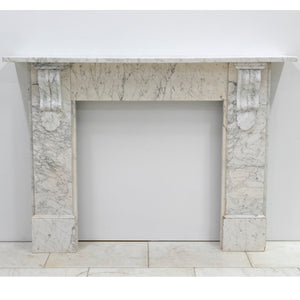 This large antique chimneypiece has carved corbels, and simple marble shelf. The surround does have repairs and has been gently restored at our Hertfordshire warehouse.
