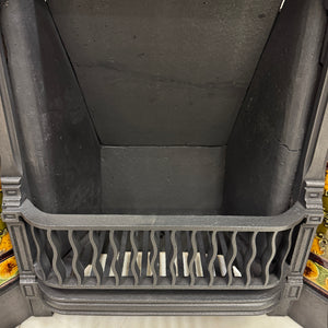 This original antique cast iron combination fireplace has been fully restored in-house and is ready for installation and use.