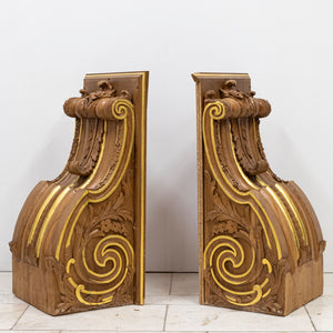 A pair of very large wooden carved corbels reclaimed from the Clothworkers Hall, London.