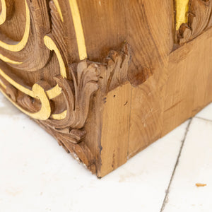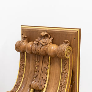 The impressive architectural elements are crafted from oak and provide an opulent decorative feature. Intricate ancanthus leaves sit alongside deeply profiled scrolls that are highlighted with gold gilding.