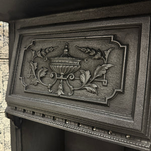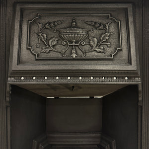 This elegant piece features a finely cast urn and foliate motifs, framed by intricate geometric and floral borders typical of the period.