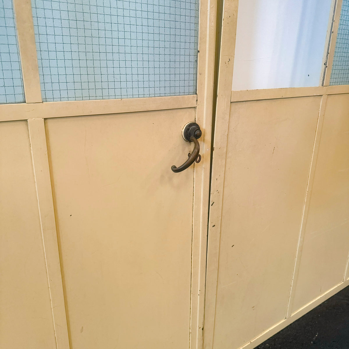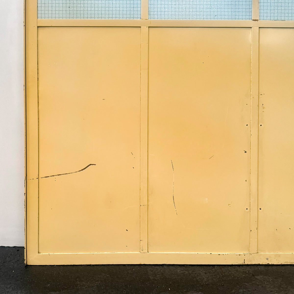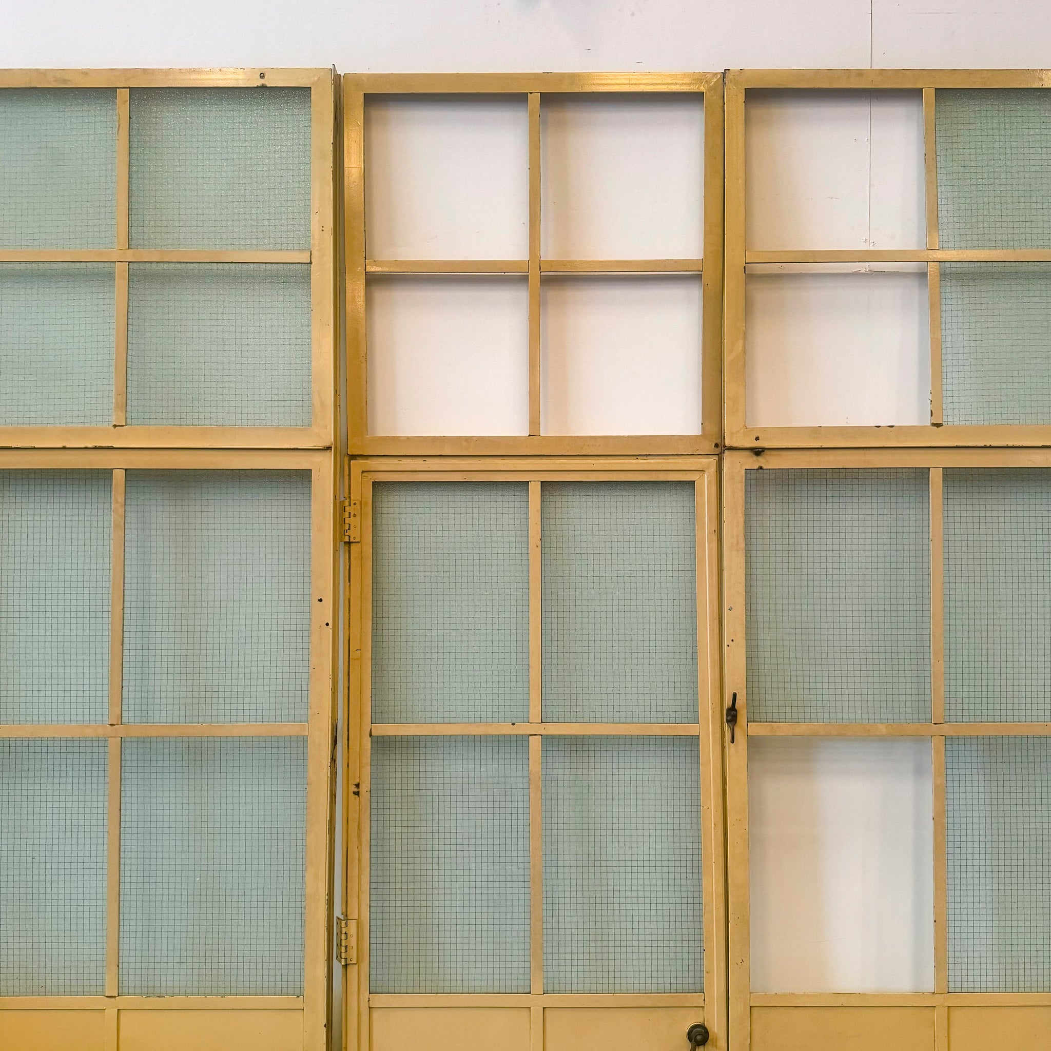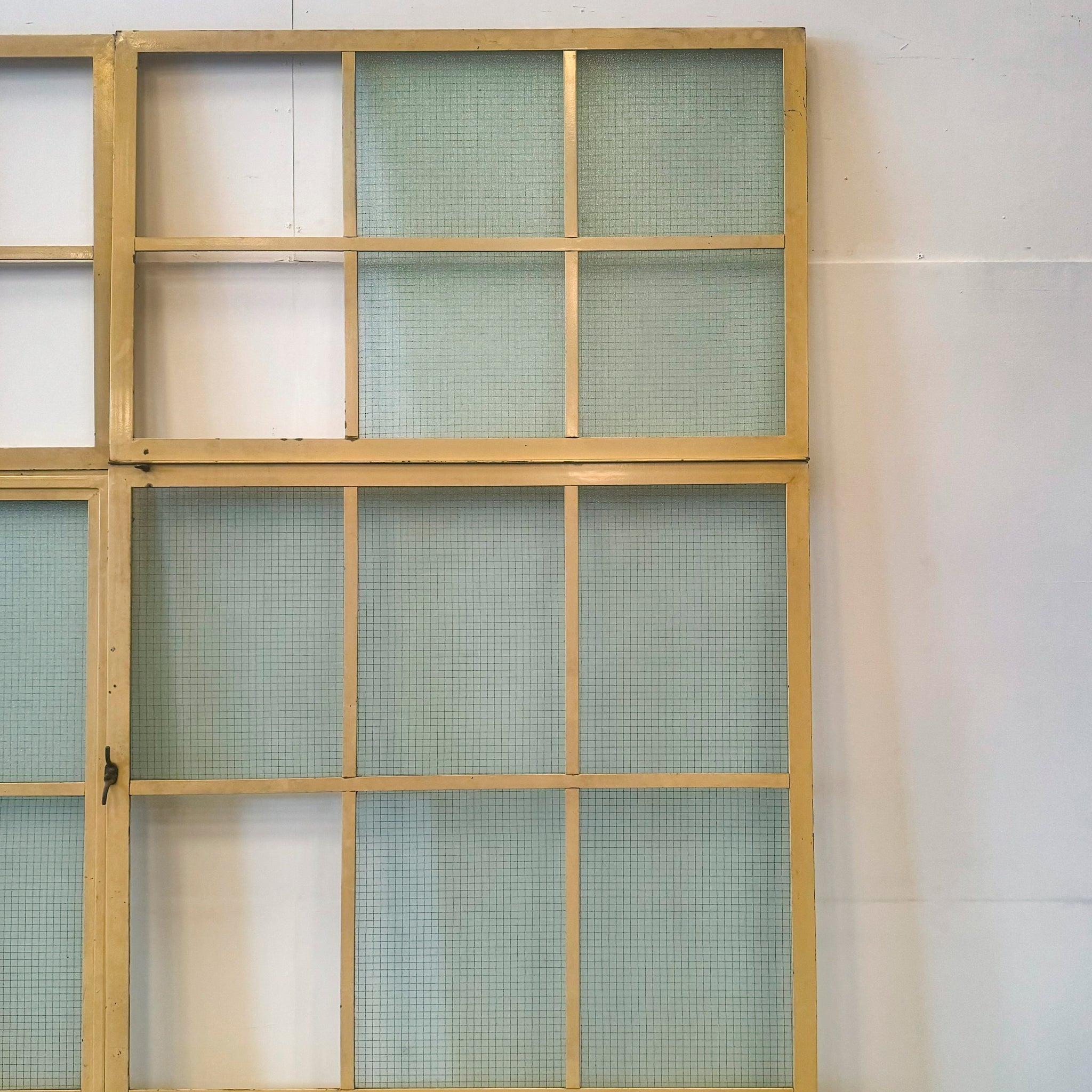 This crittle window room divider screen is a decorative and functional solution to separate a room or section off a space, while also allowing natural light to filter through. This type of screen typically features a wire grid design on the glass. Dividers are often used in homes, offices, and public spaces to add visual interest and create a sense of separation without blocking out natural light.