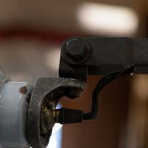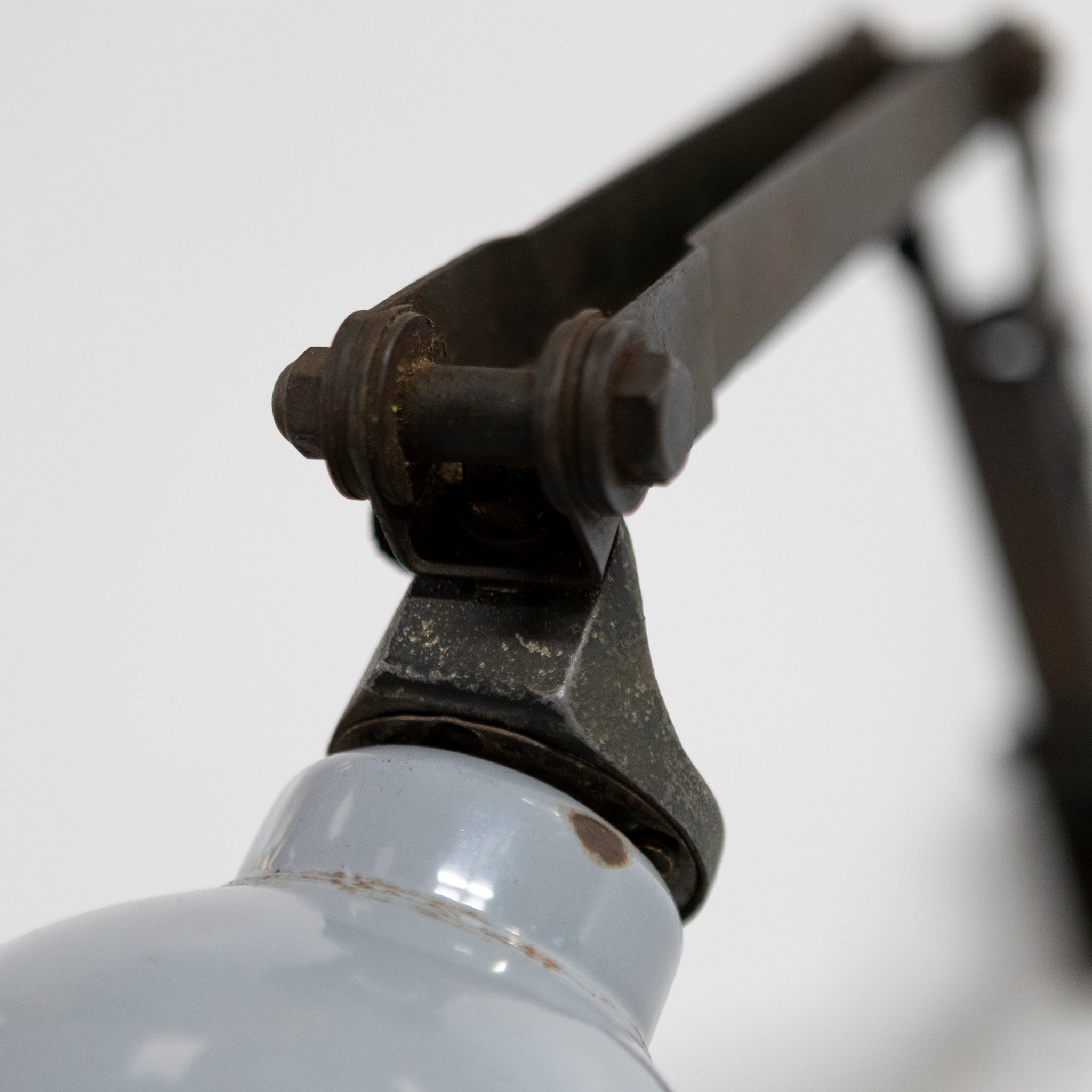 Constructed with exposed pivot joints and substantial hex bolts, the adjustable arm allows for directional positioning — ideal as a task light over a desk, workbench or reading chair. The engineering is simple, functional and honest.