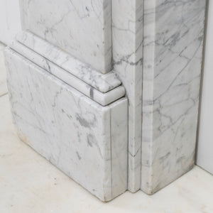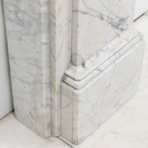 An impressive and generously proportioned Victorian fireplace surround, crafted in Itlain Carrara marble with definitive grey veining throughout.