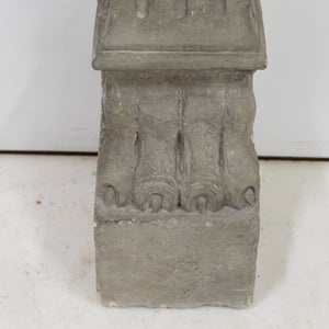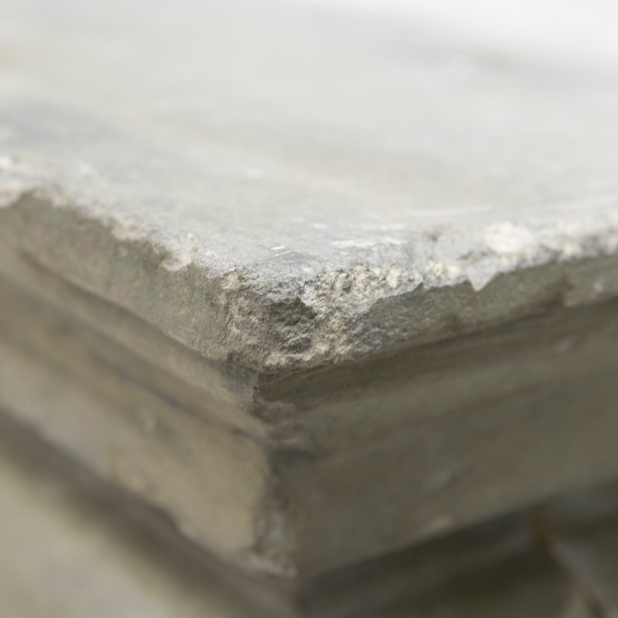 The imposing piece is carved from antique stone and delivers a solid, architectural presence.