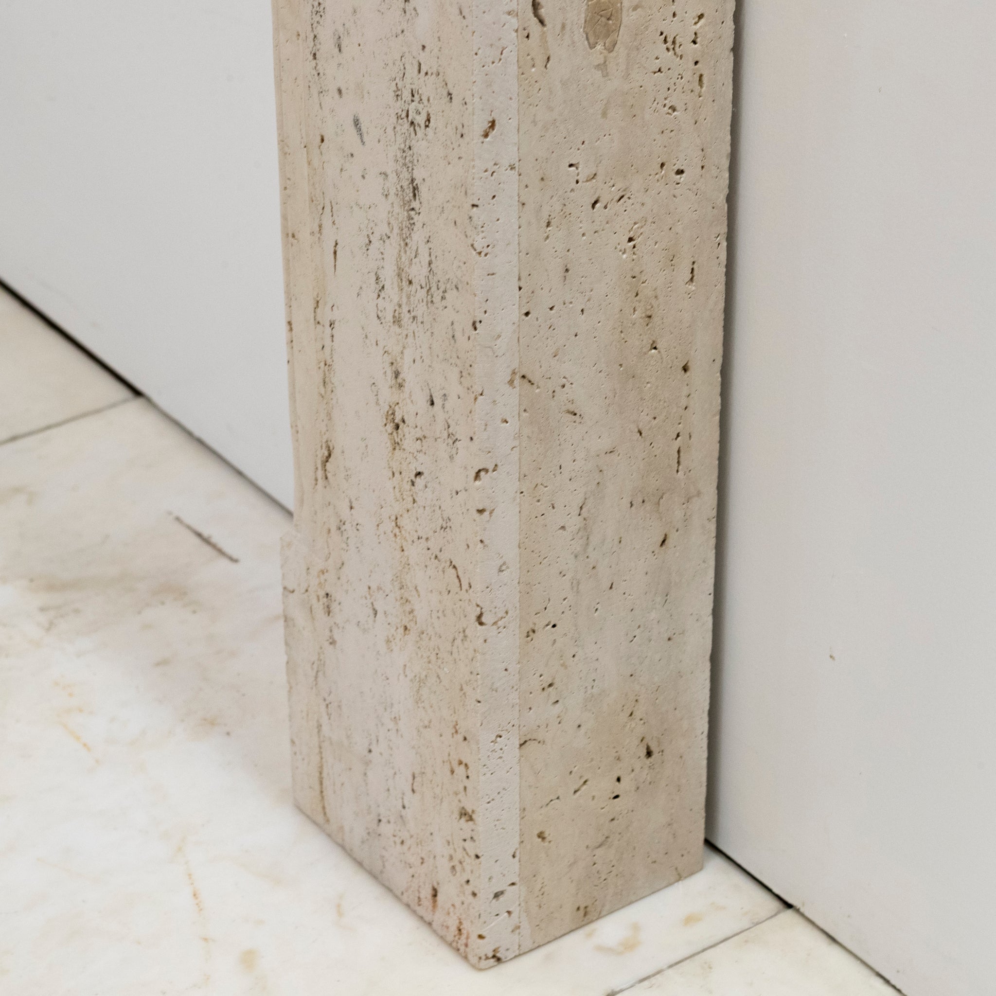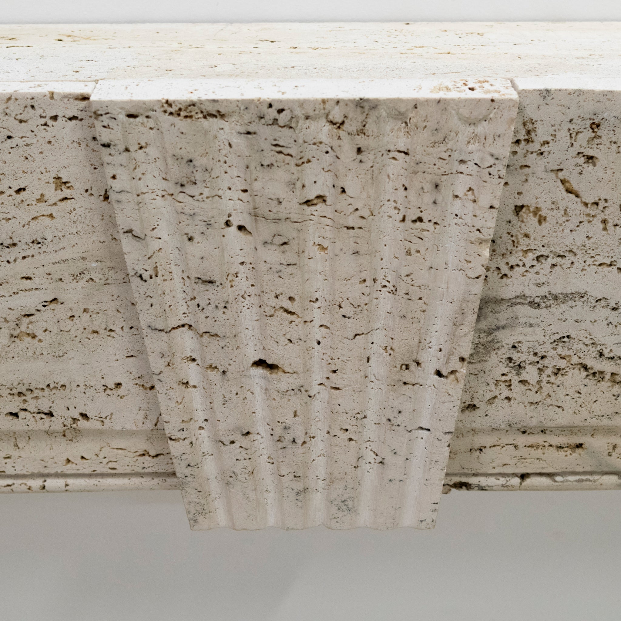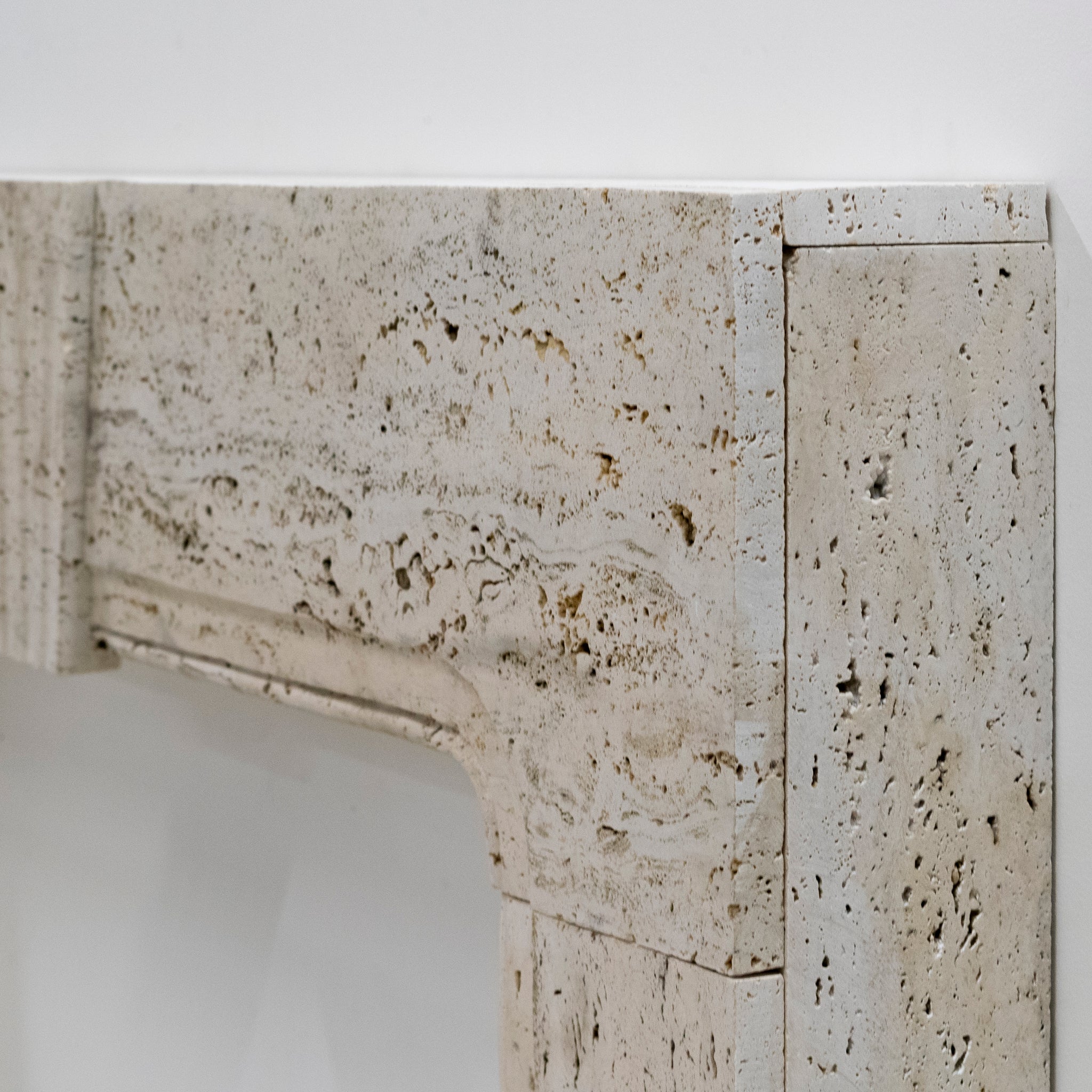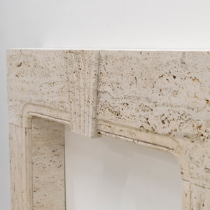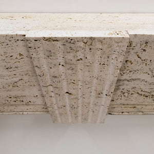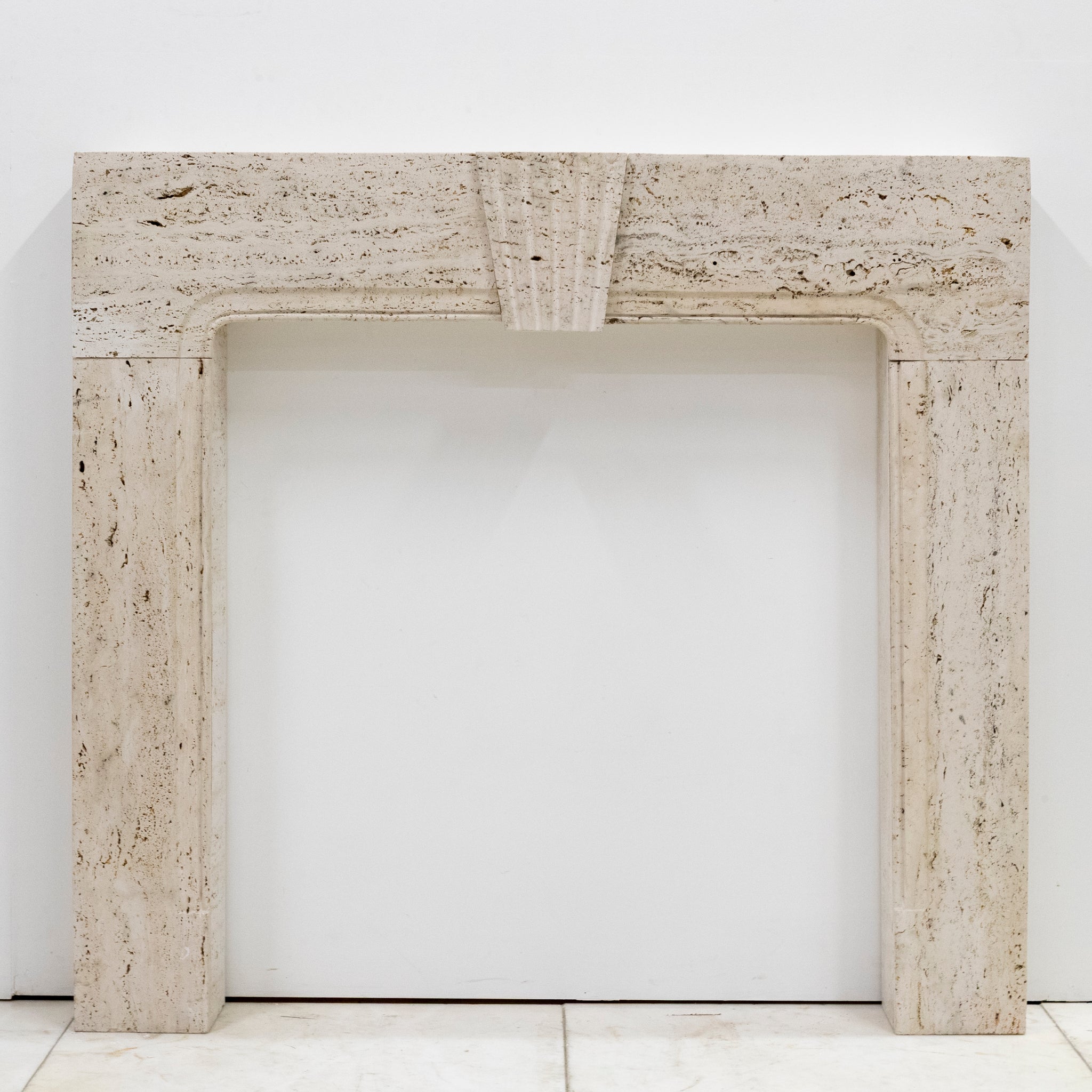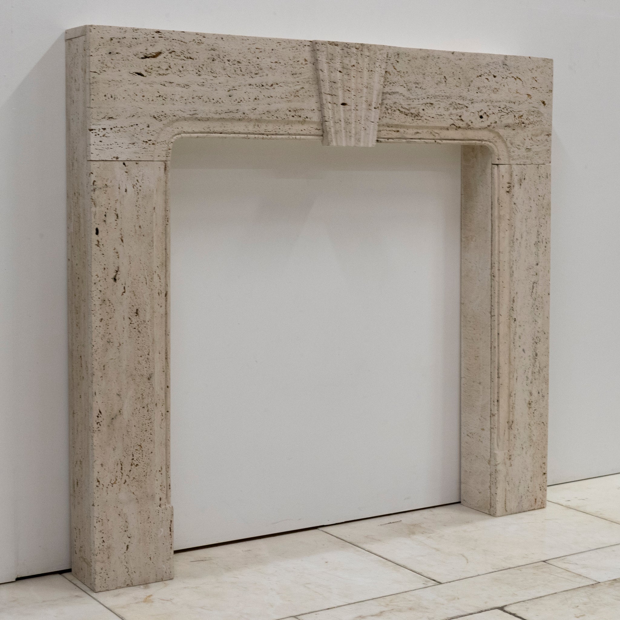 Crafted from reclaimed Travertine marble, this fireplace features the combination of 18th century Queen Anne and Art Deco styles, making this surround truly unique. The fusion of styles gives the surround versatility to make an attractive addition to any room.