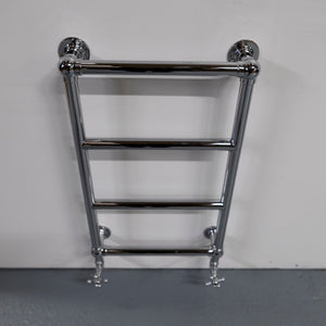 A refined reclaimed chrome towel rail by Vogue, the renowned British manufacturer, long associated with high-quality traditional radiators and bathroom fittings.