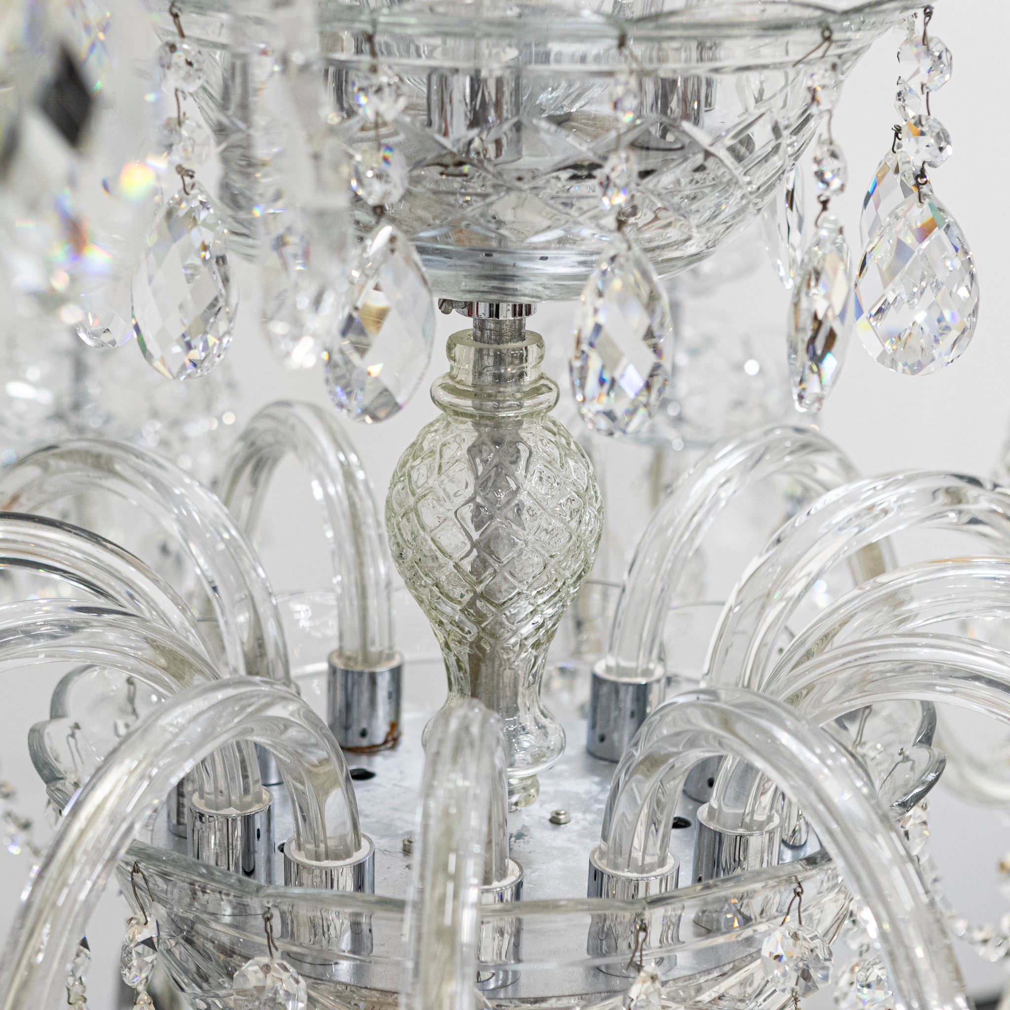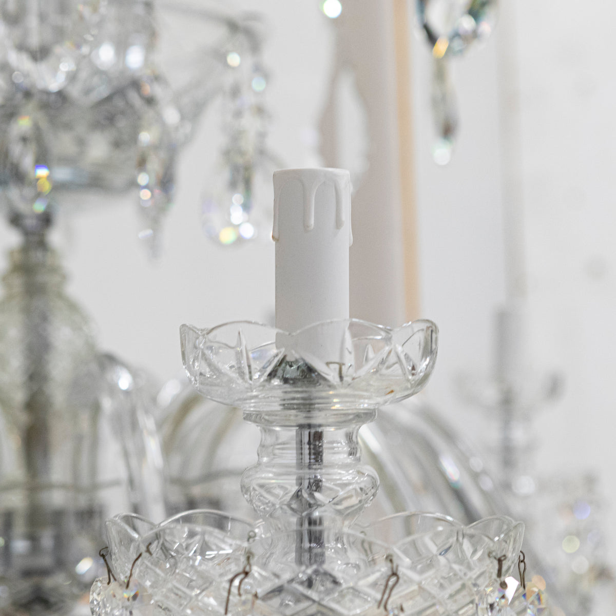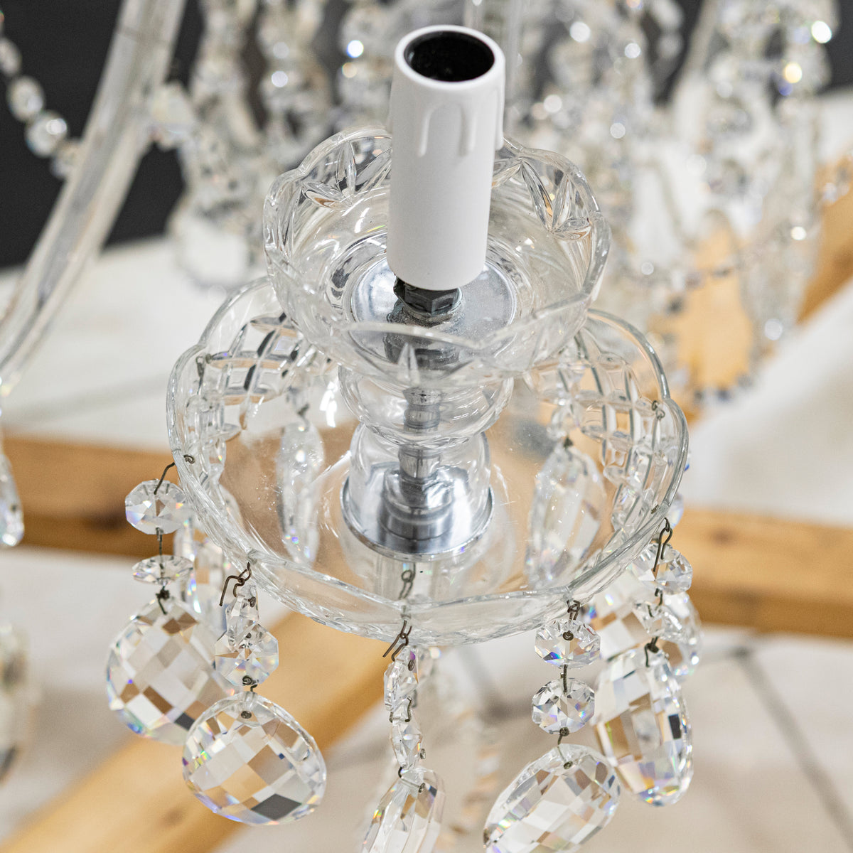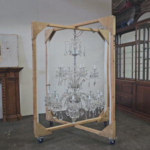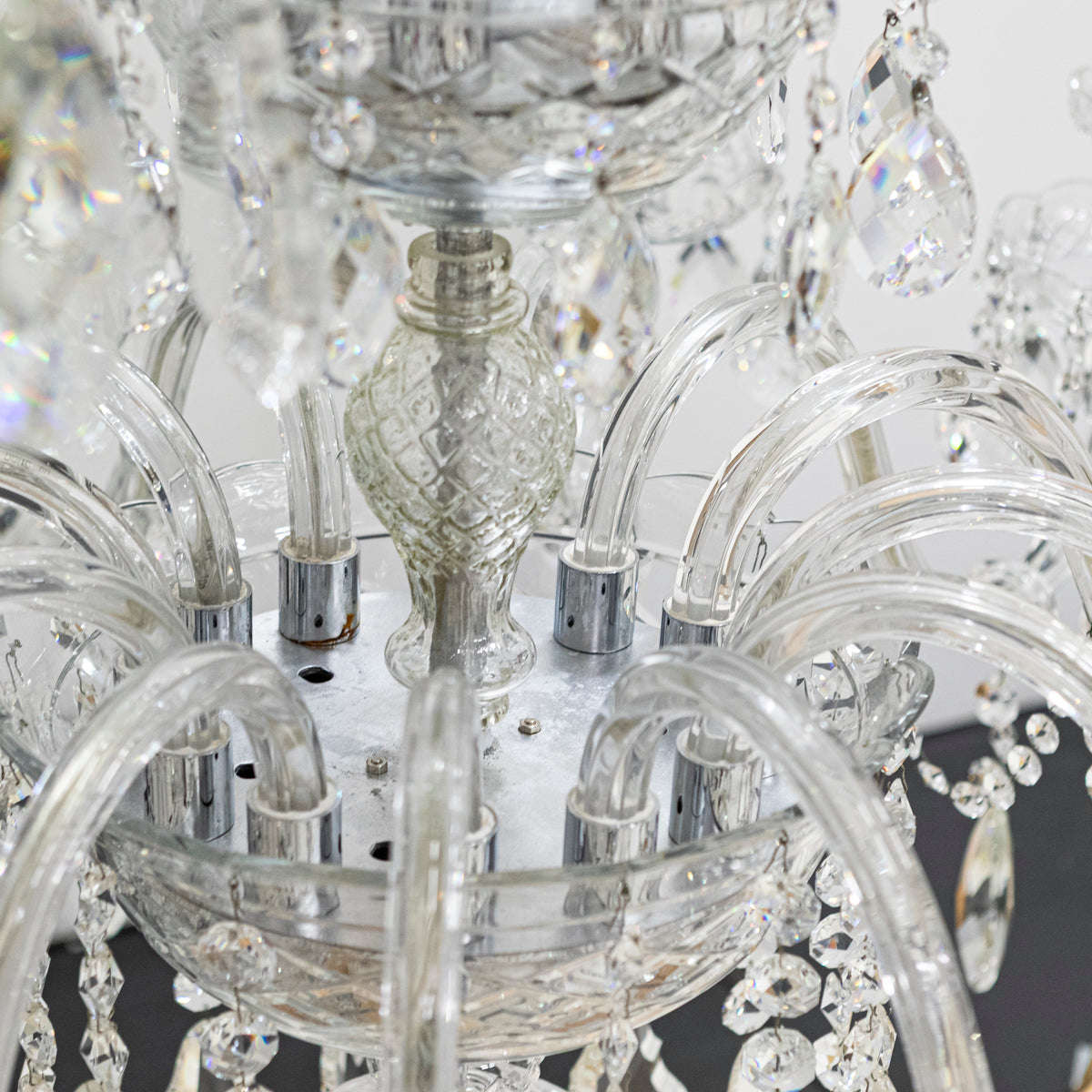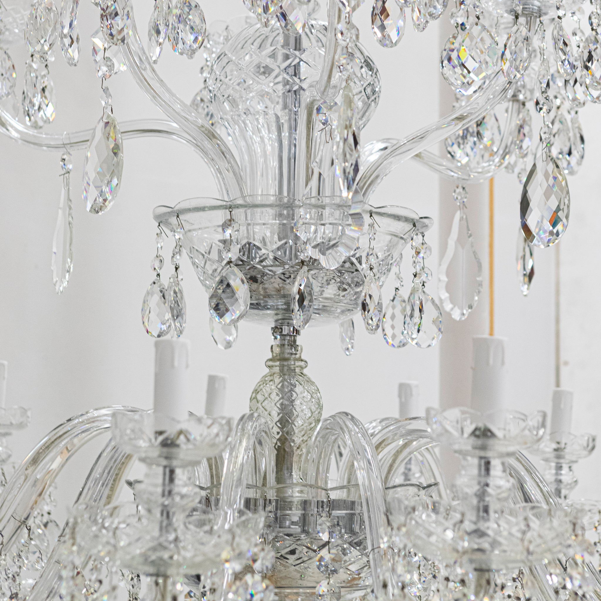 With an imposing height of 5'7'', this spectacular lead crystal chandelier has 18 candle branches: 12 to the lower tier, 6 to the middle.