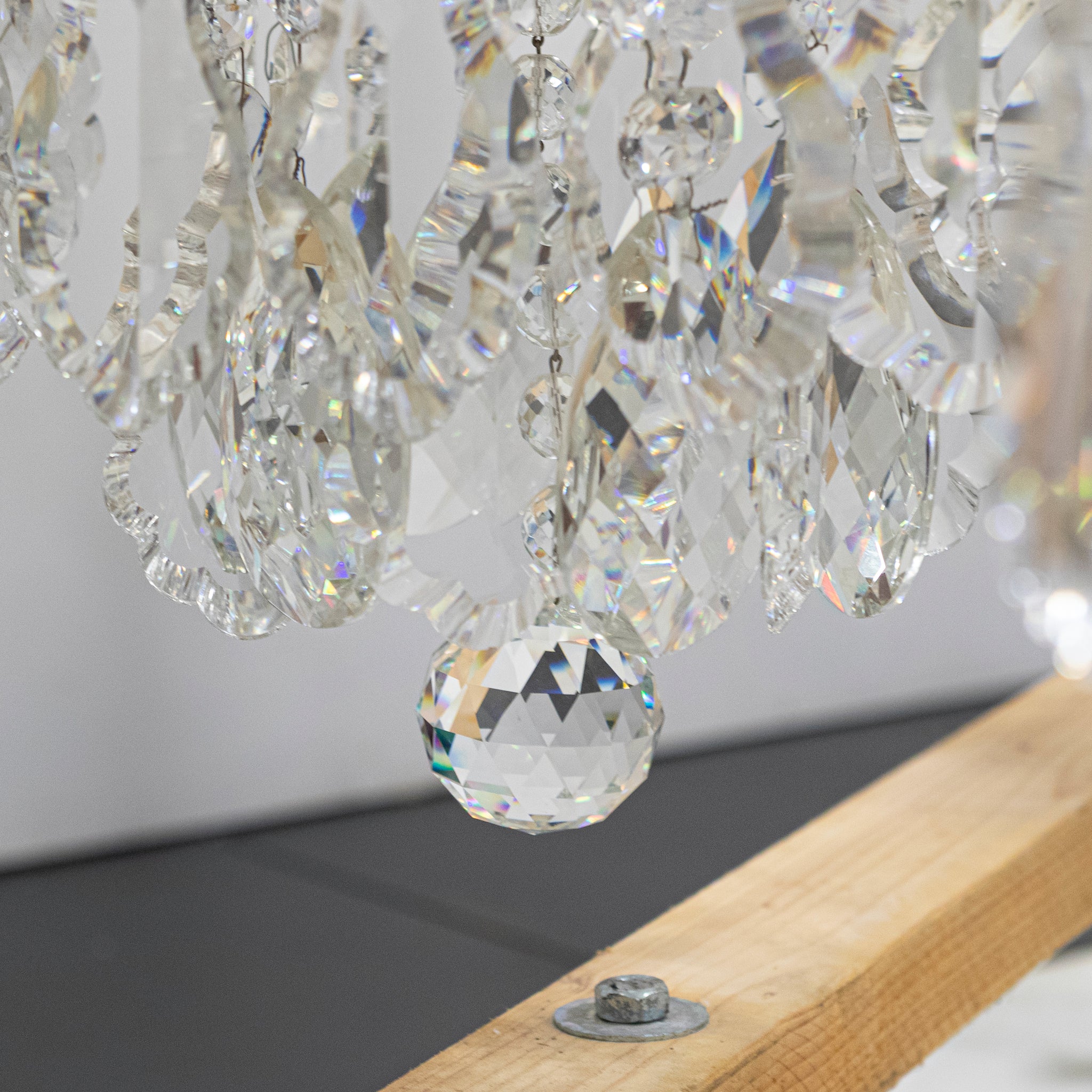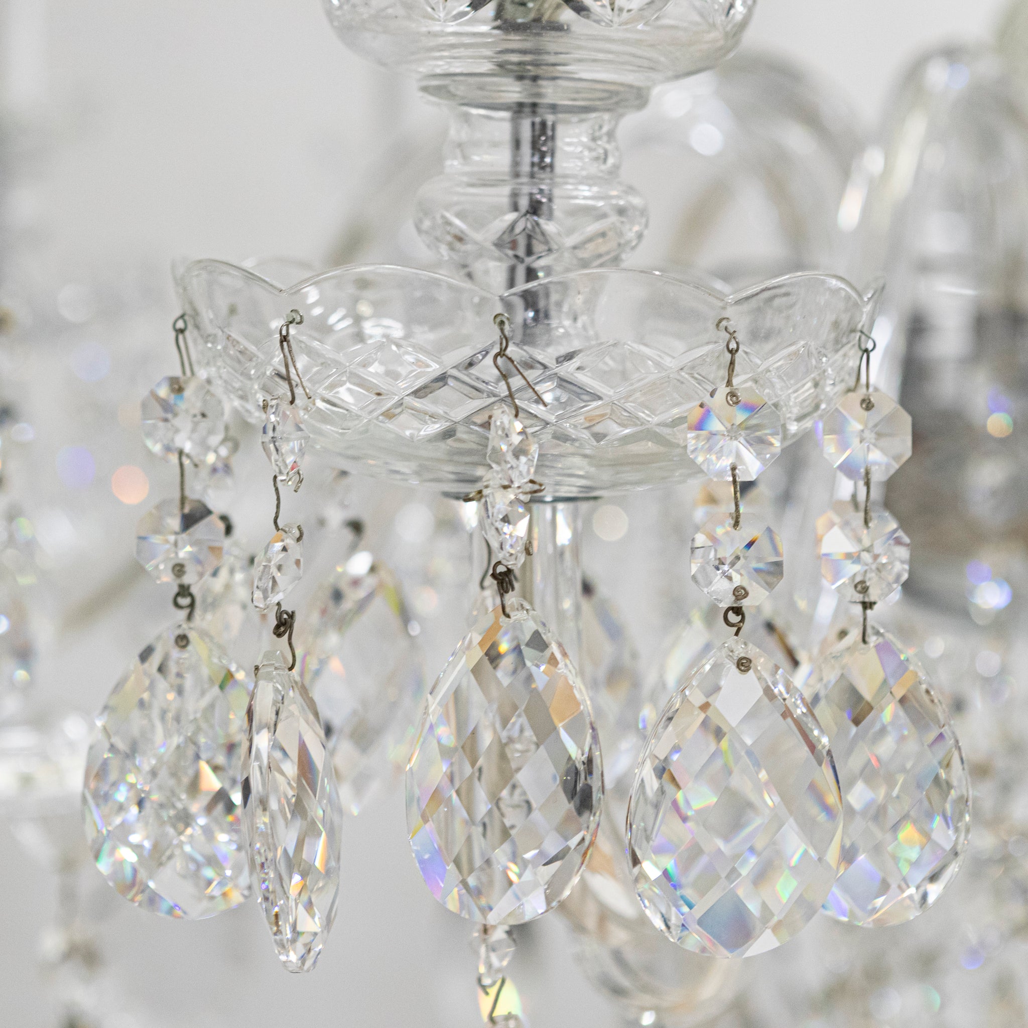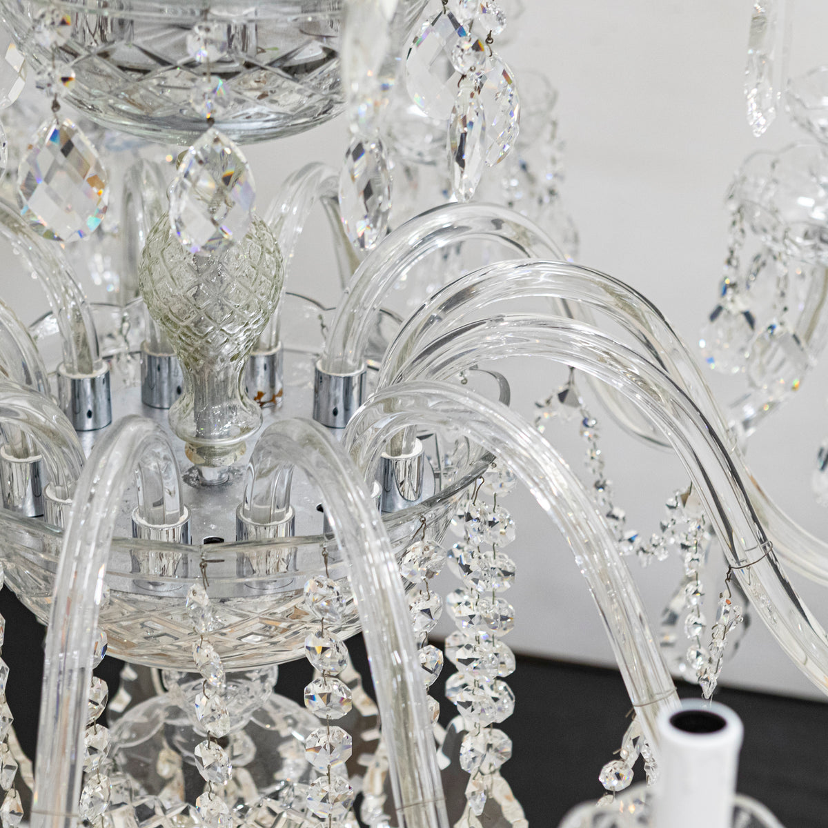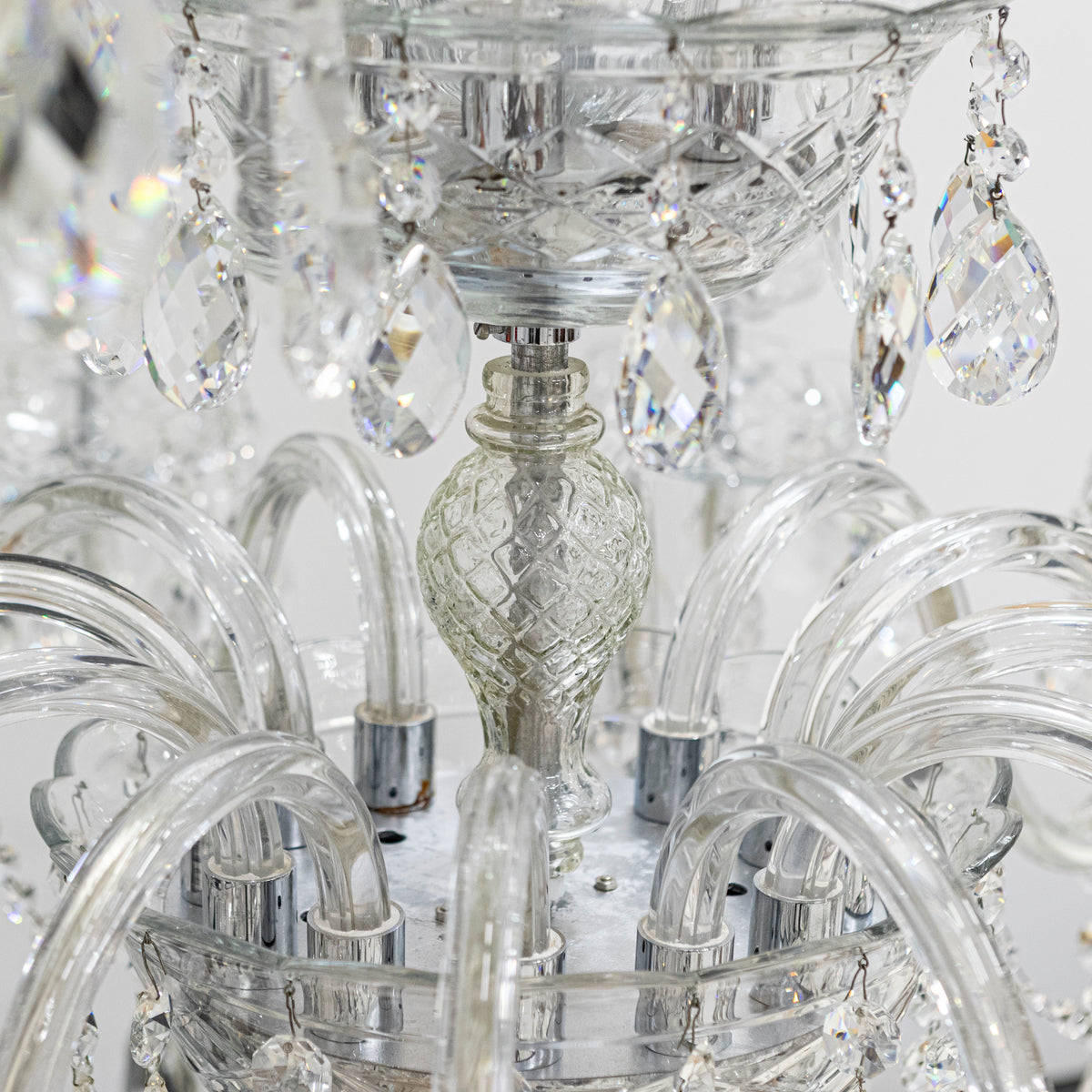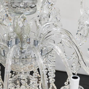 With an imposing height of 5'7'', this spectacular lead crystal chandelier has 18 candle branches: 12 to the lower tier, 6 to the middle.