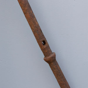 A striking and substantial 18th-century iron boat anchor, showcasing classic maritime craftsmanship. The anchor features beautifully shaped spade flukes and distinctive bell-shaped ends to the stock bar. Complete with its original securing pin and a sturdy shackle, this piece exemplifies the robust design of traditional seafaring equipment.