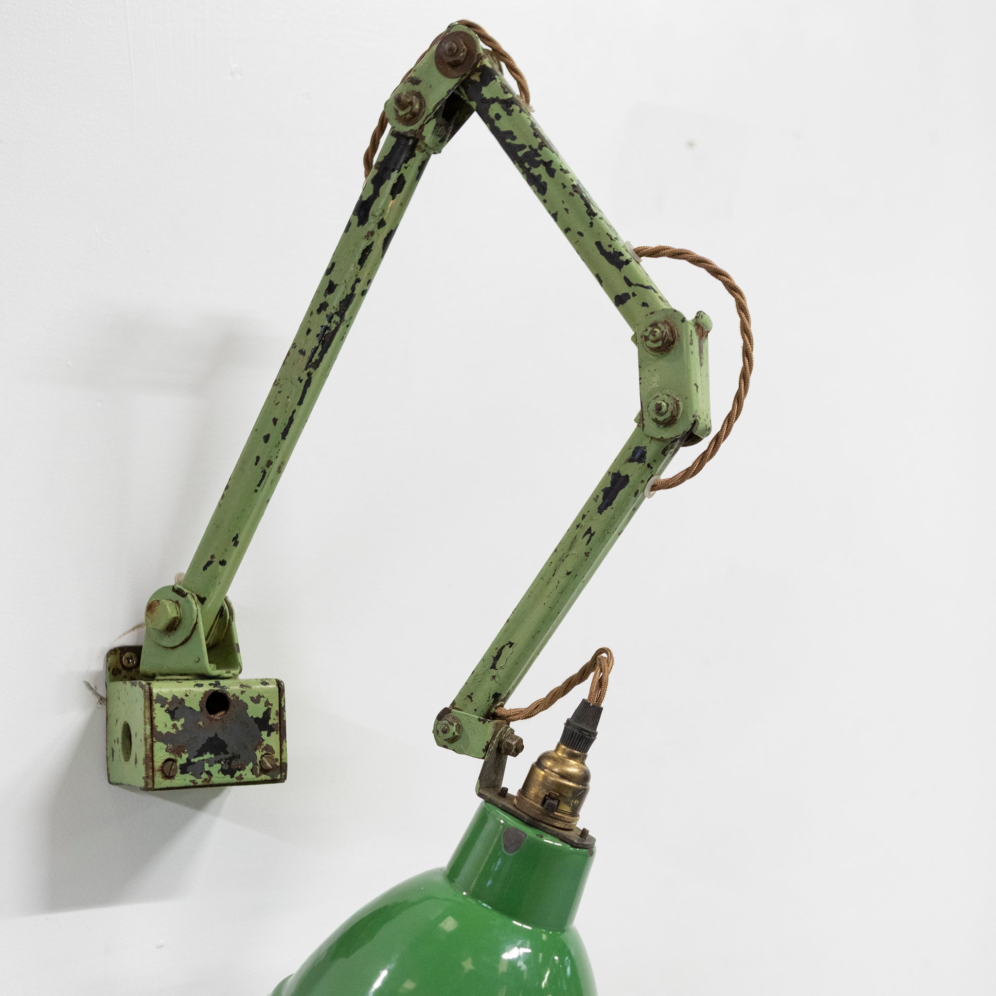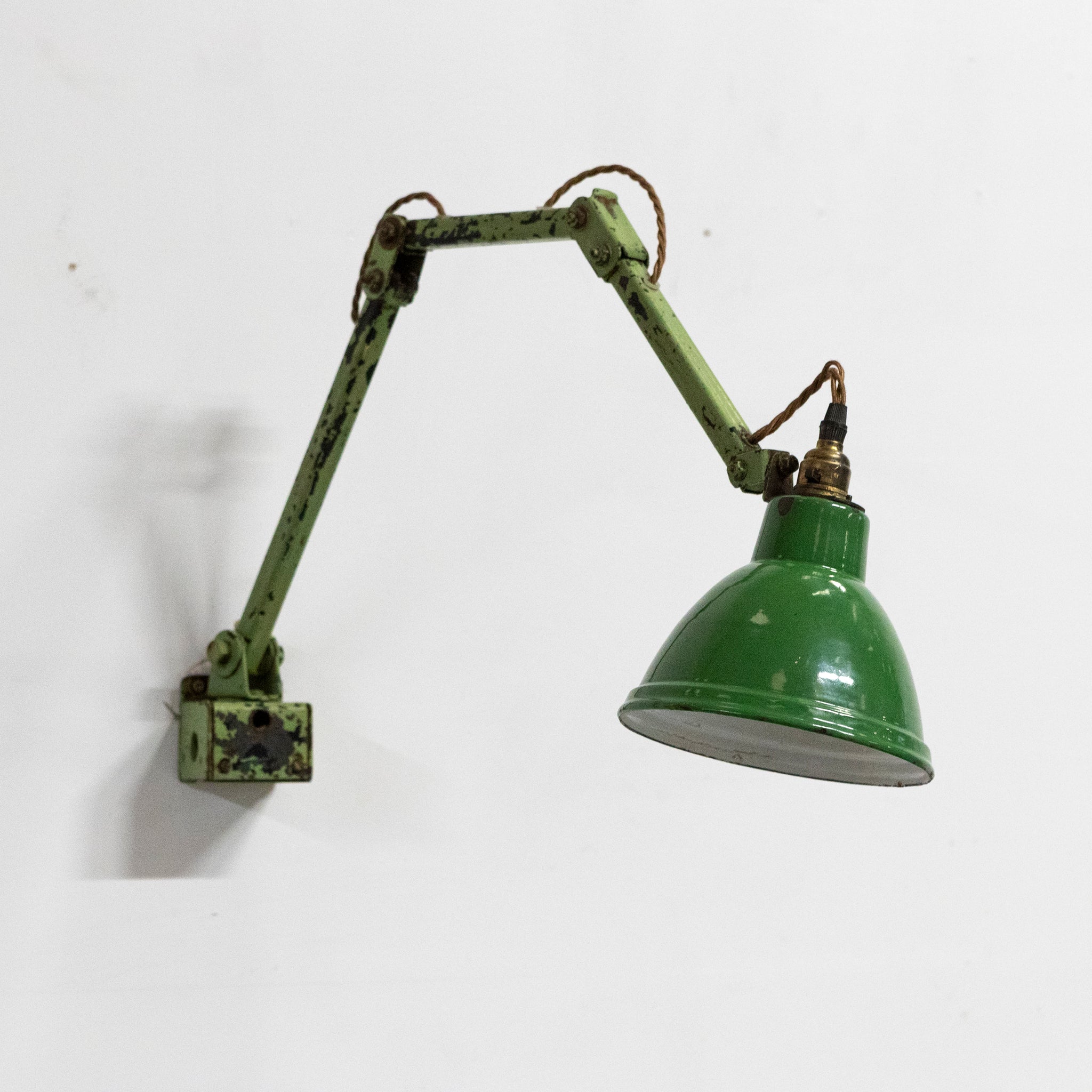 A superb original industrial wall light with fully articulated arm, retaining genuine patina.