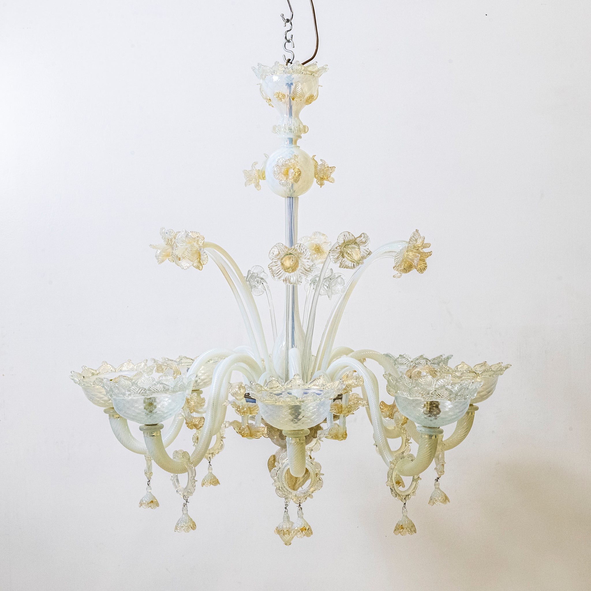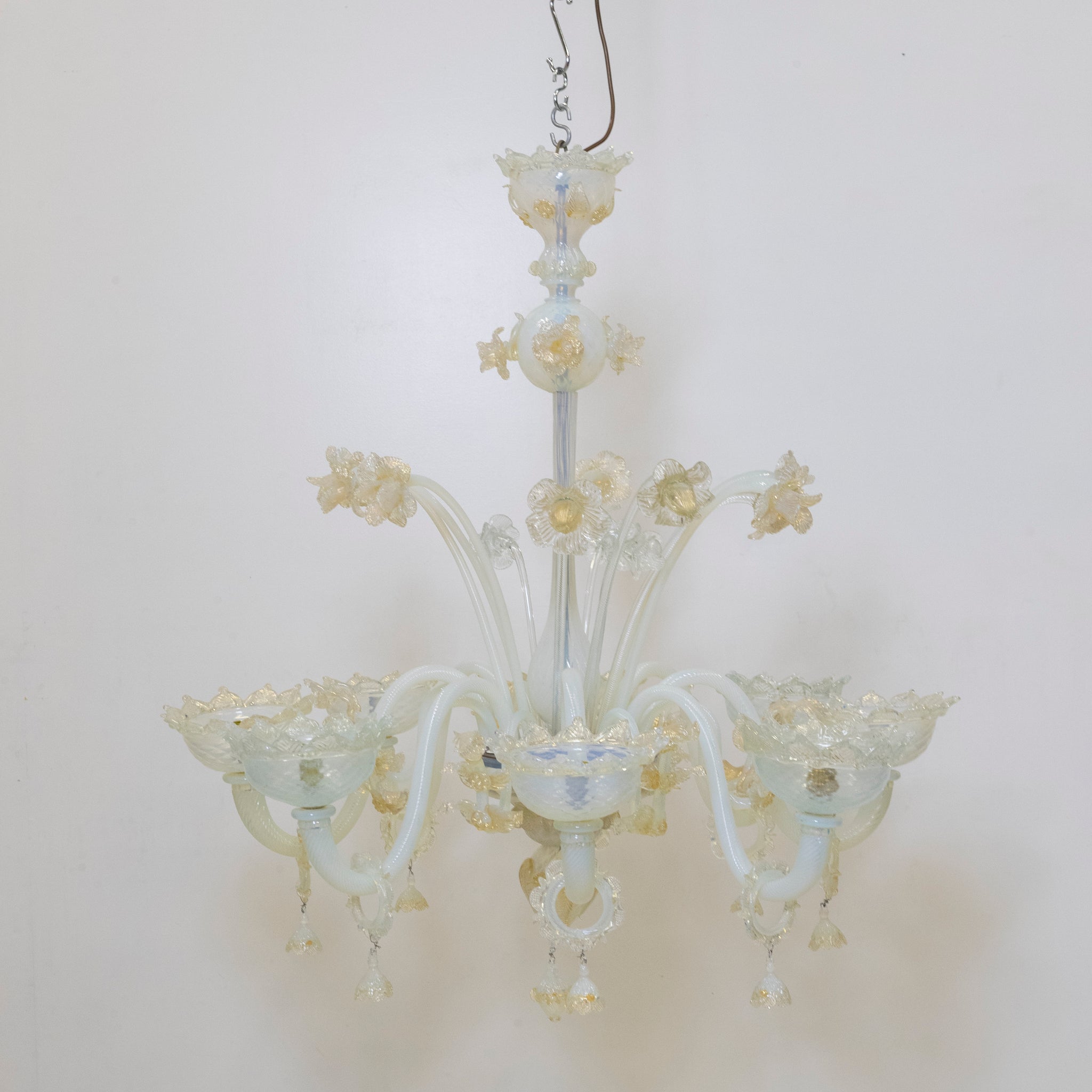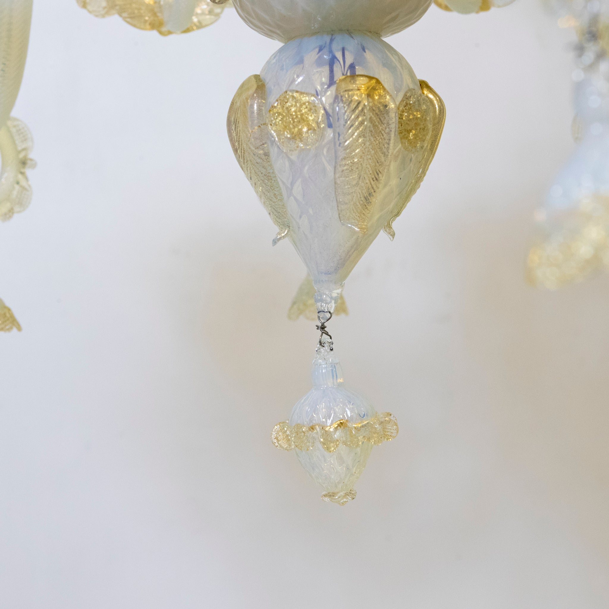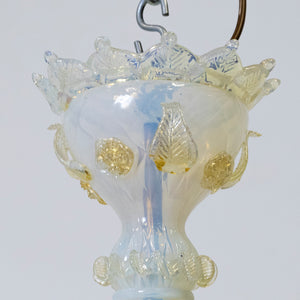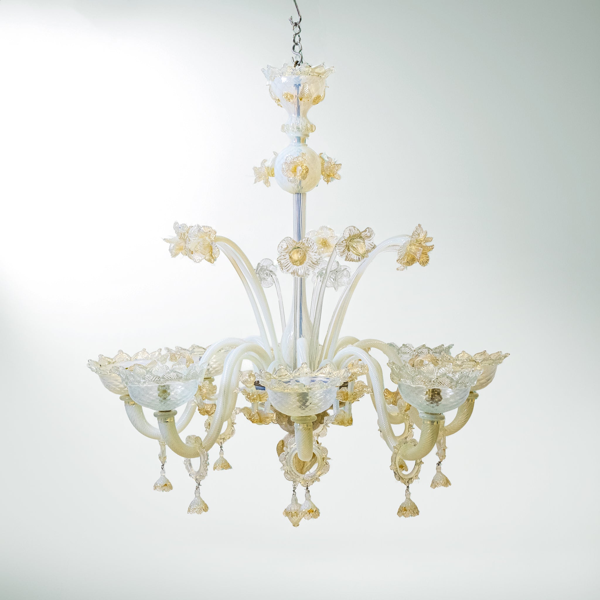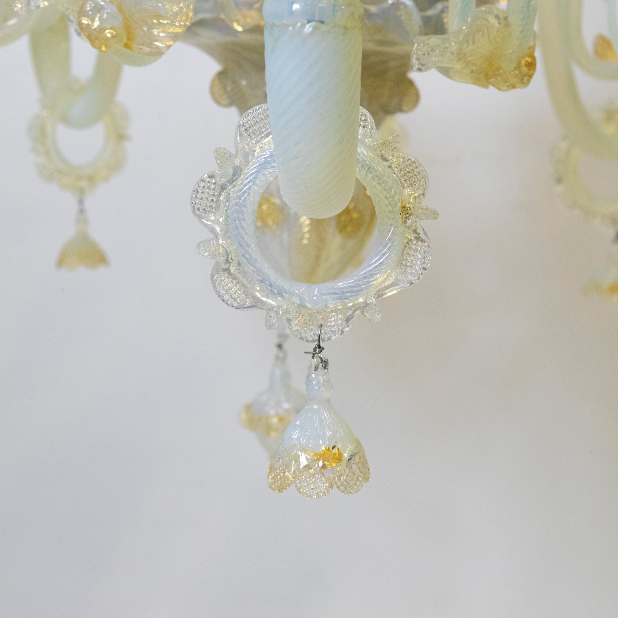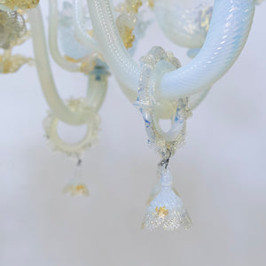Hand-Blown Venetian White & Gold Murano Glass Chandelier,