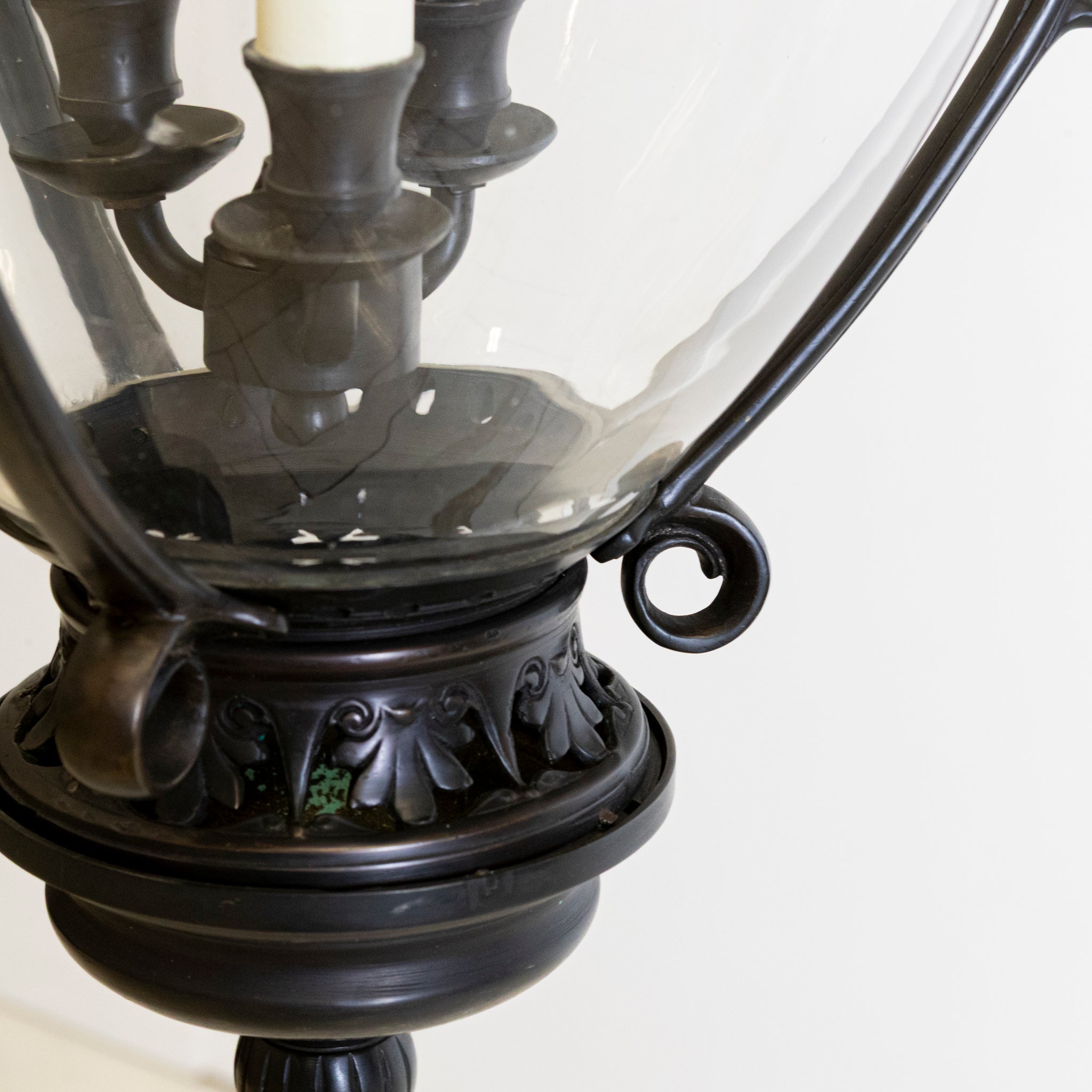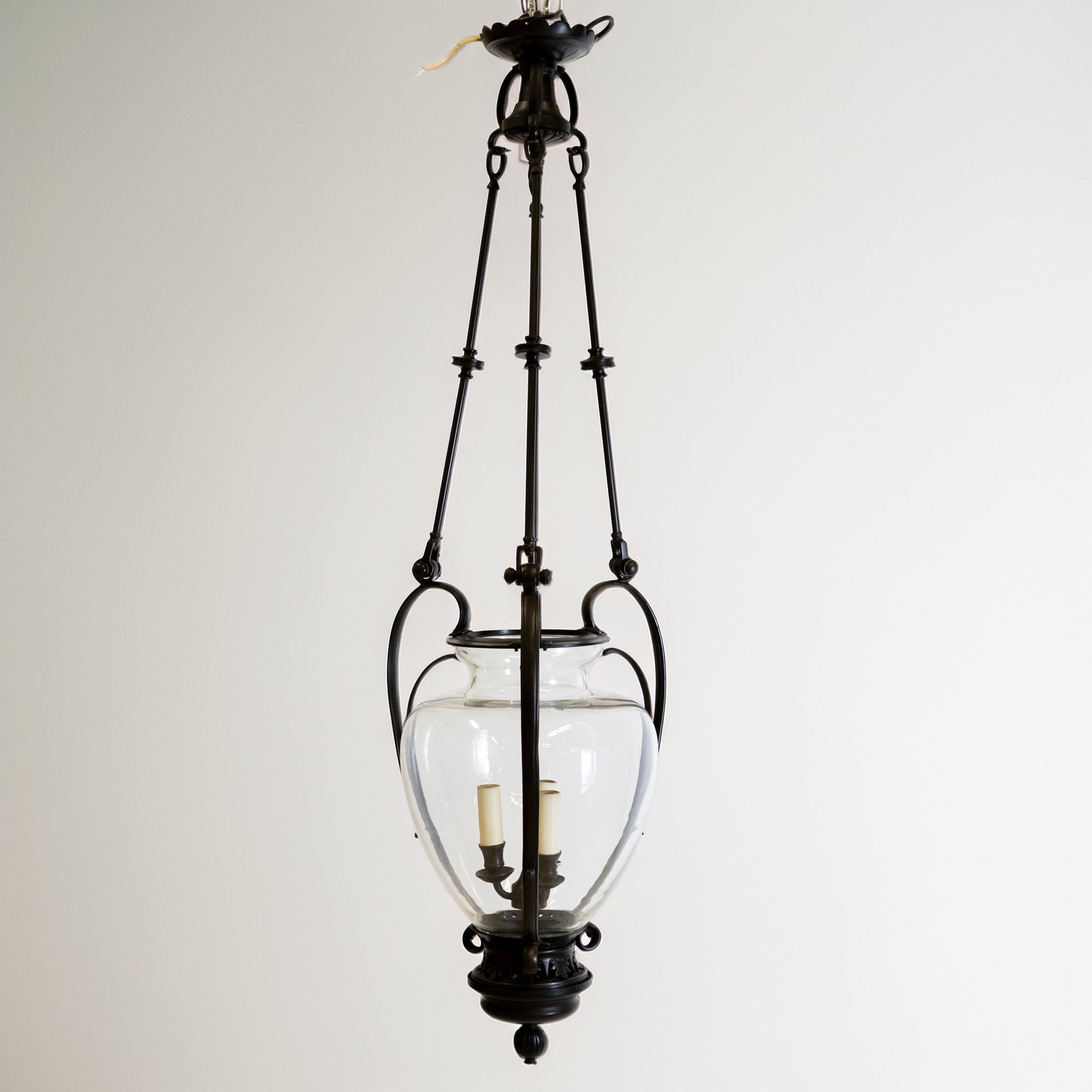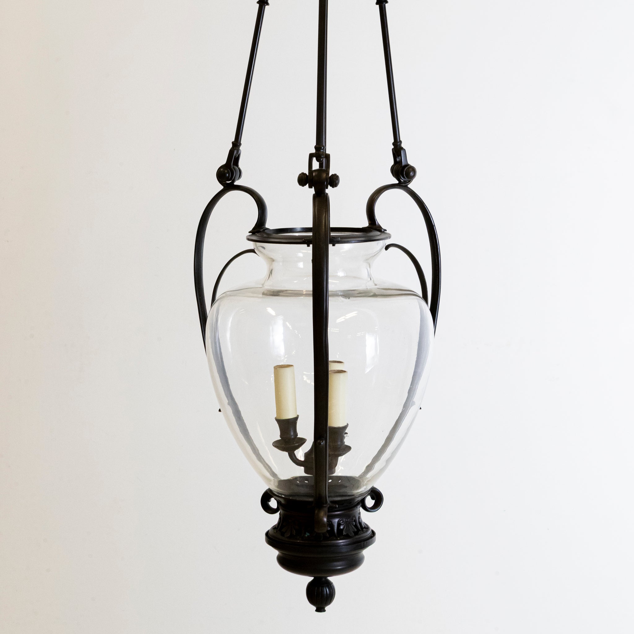 The Rivoli lantern showcases a glass urn framed by sweeping metalwork and suspended from a refined three-arm pendant — a statement piece that brings elegance and romance to any space.A very high-quality piece, clearly demonstrated by the craftsmanship and execution.