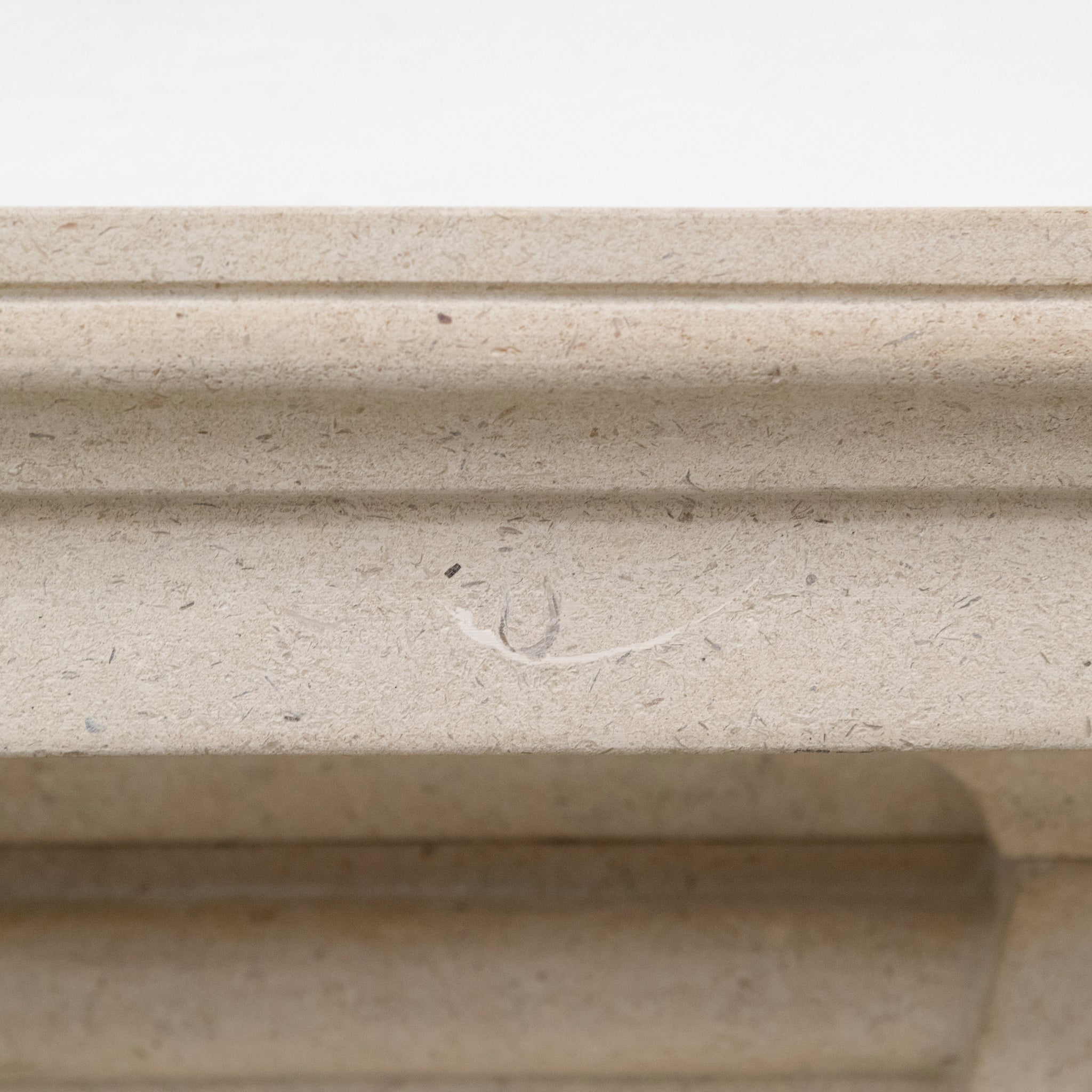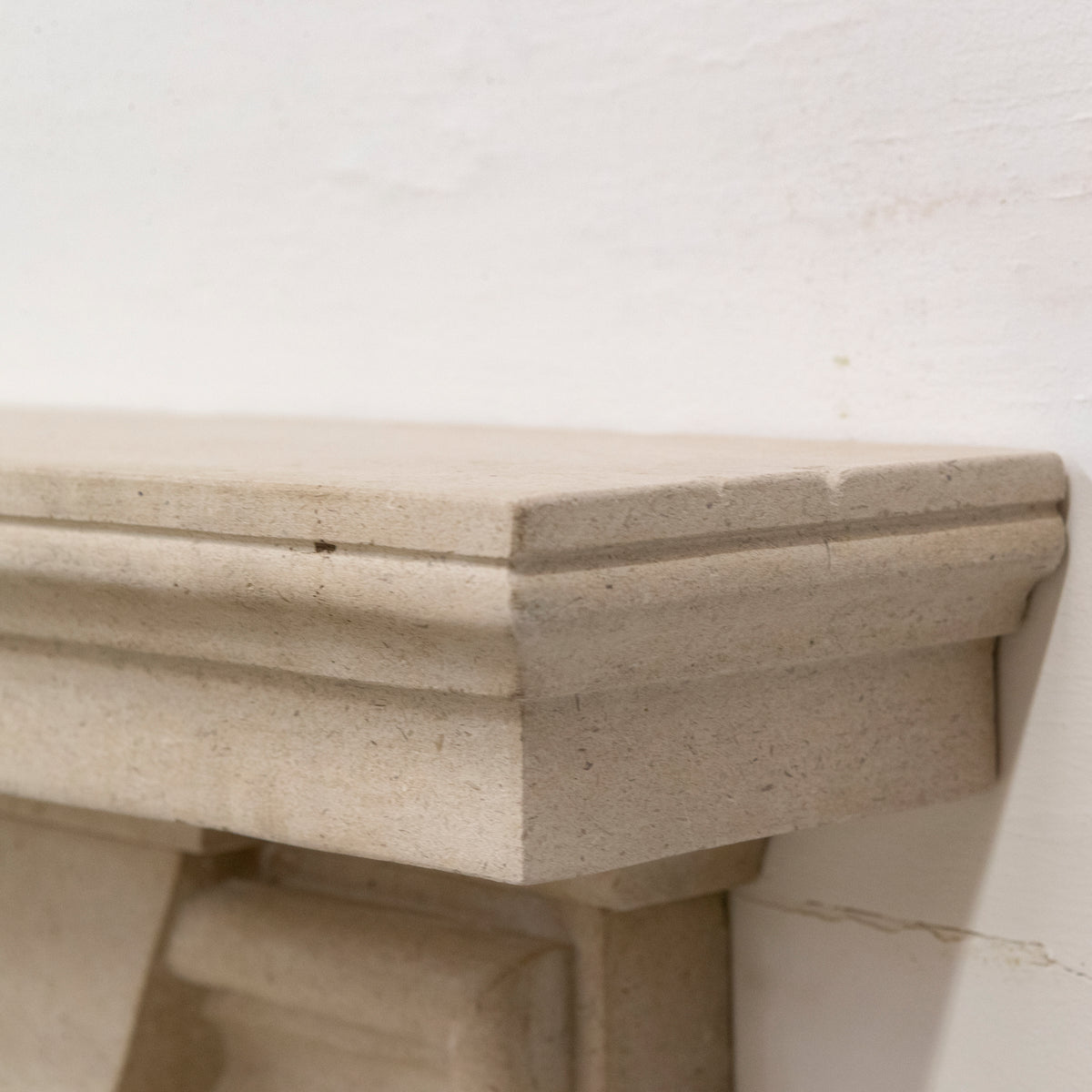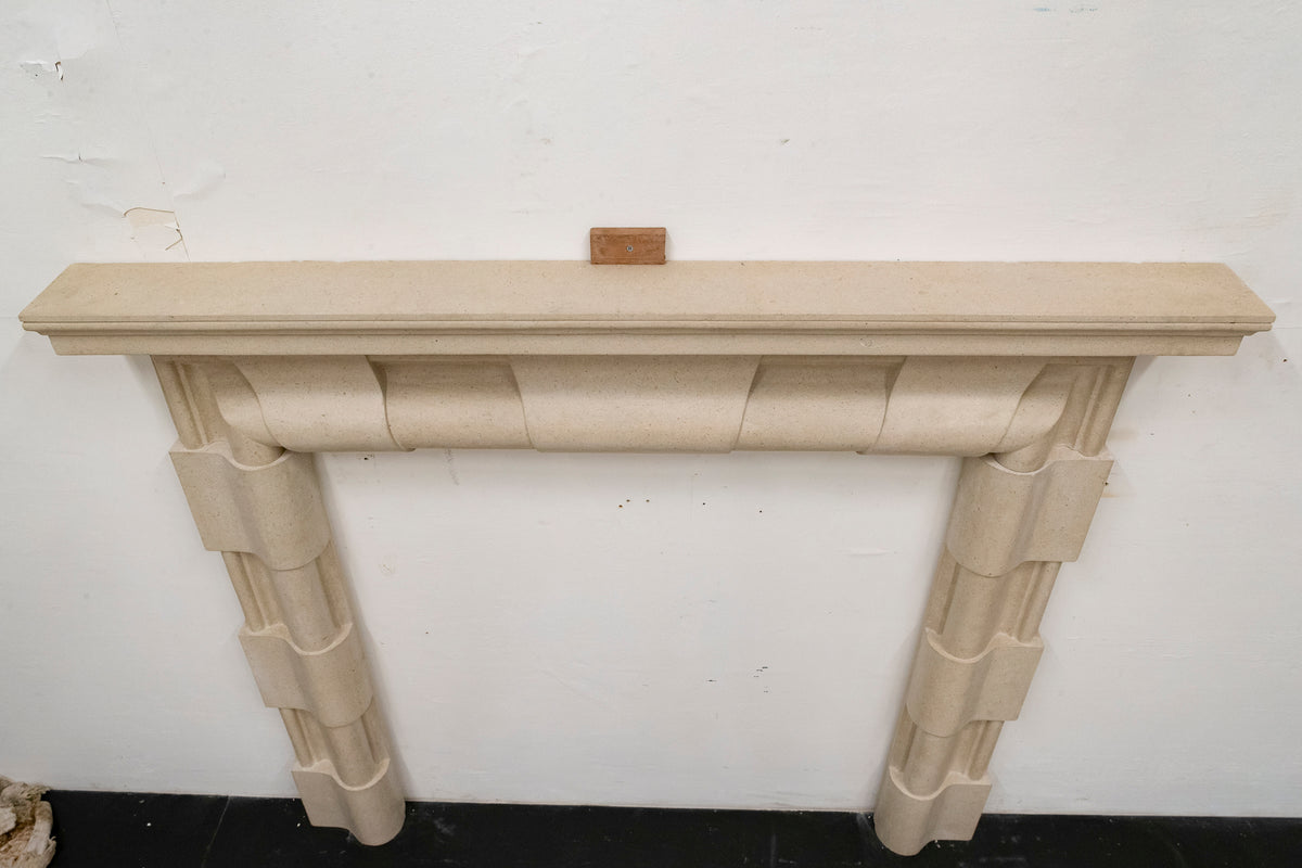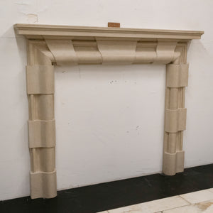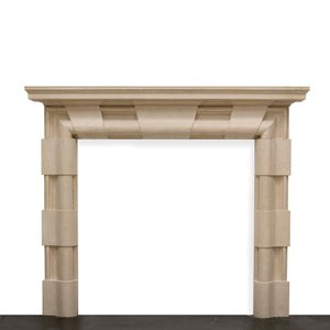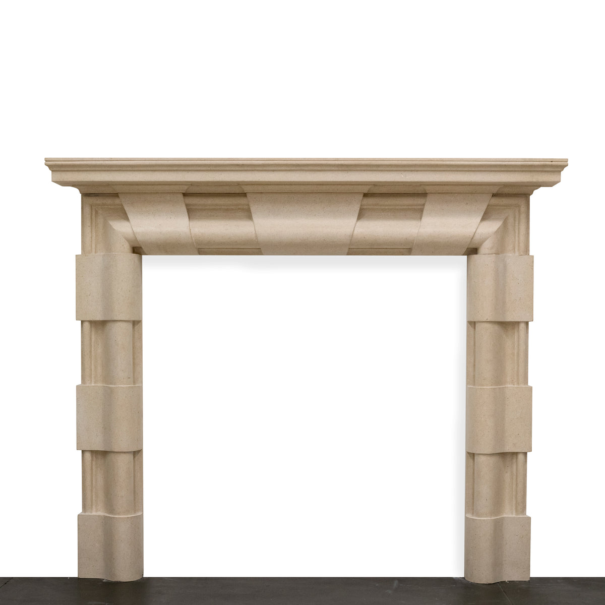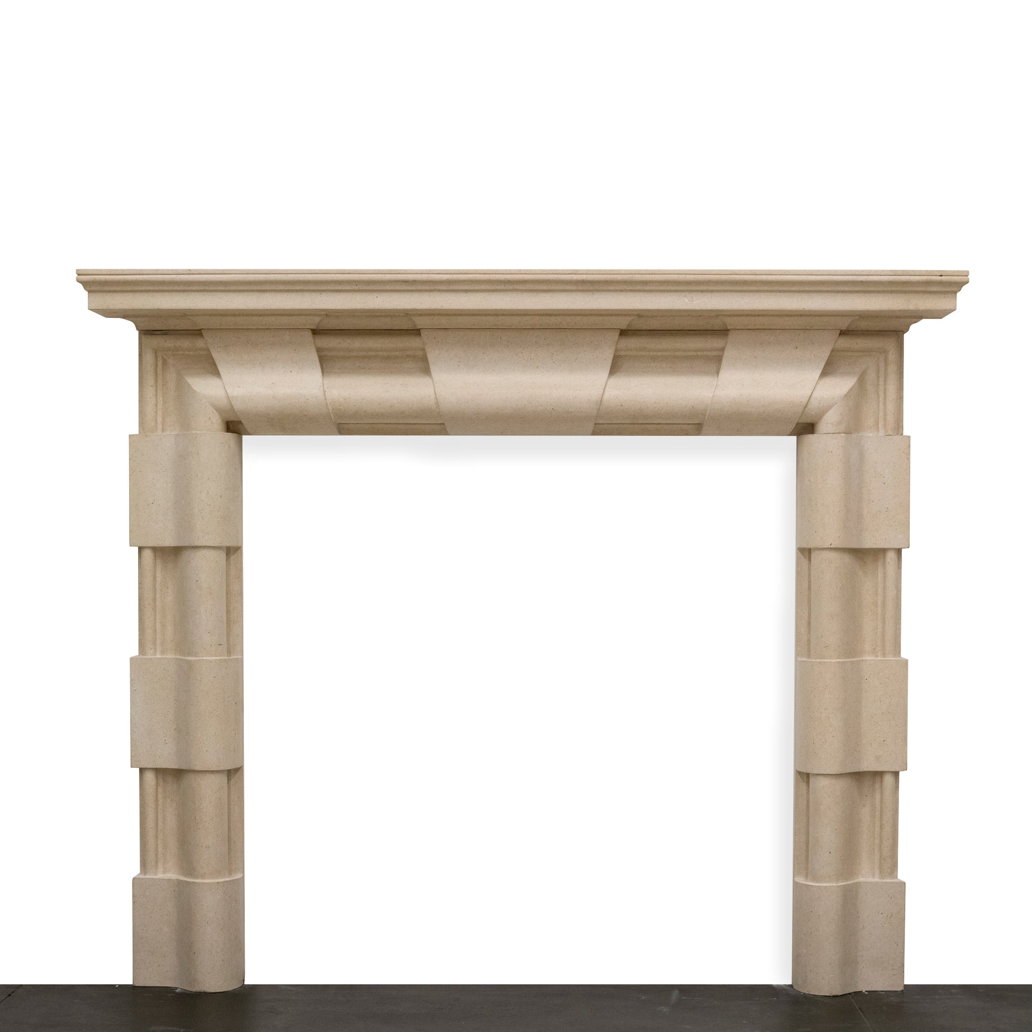 This exceptional fireplace, crafted from Portland stone, showcases a strong architectural design inspired by the works of English ornamental designer Batty Langley. Its highly unusual construction features quoins elegantly incorporated within the frame, adding depth and character to the piece and making it a striking focal point in any space.