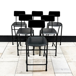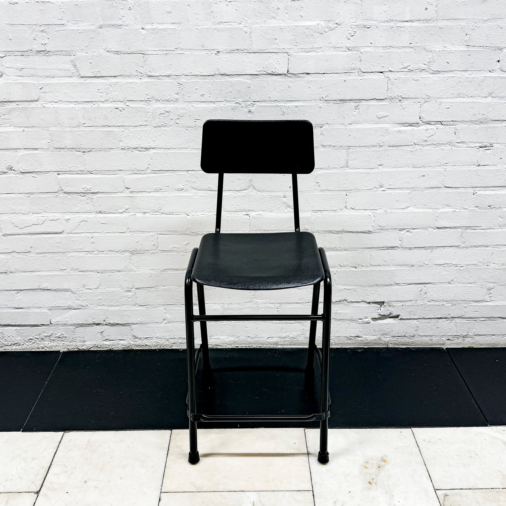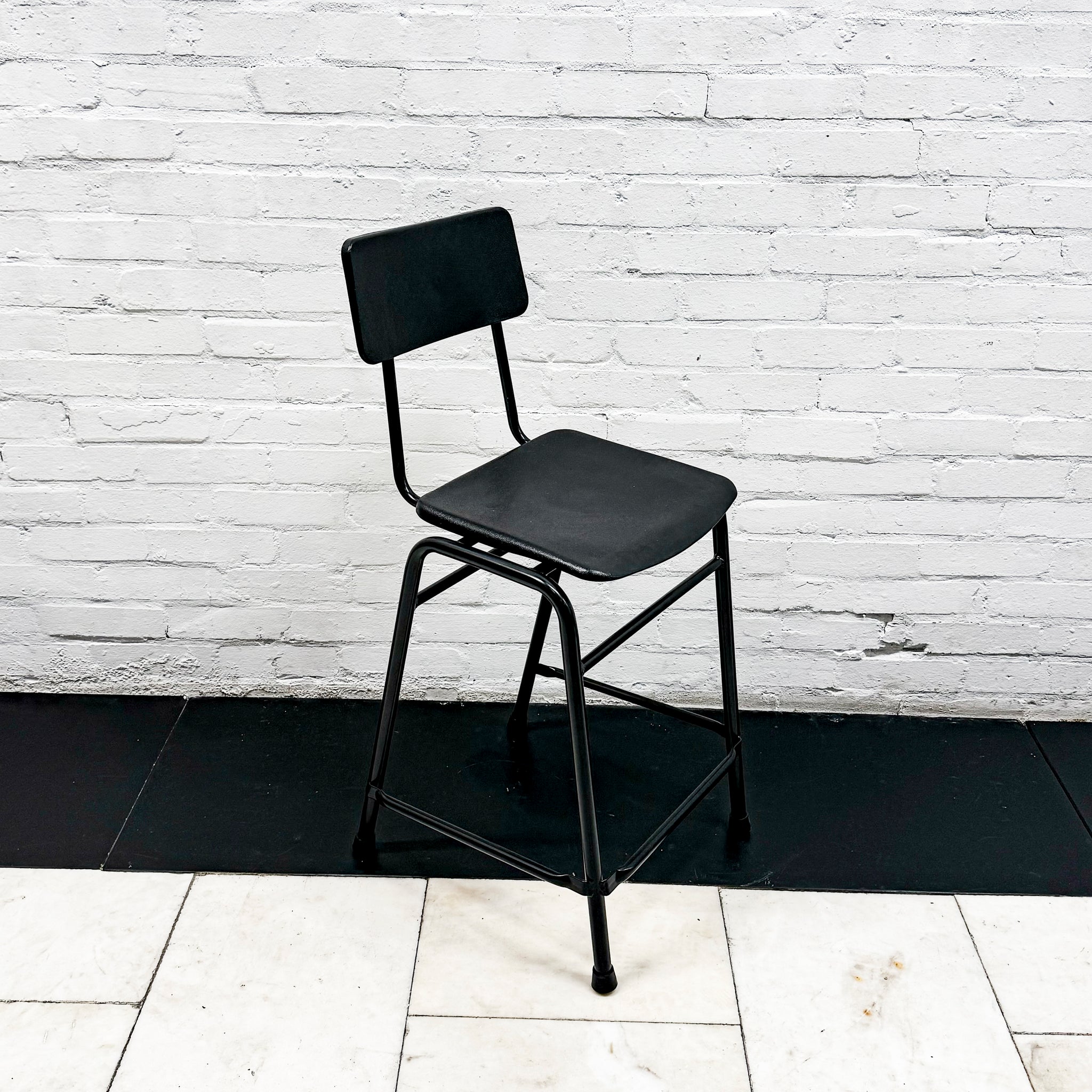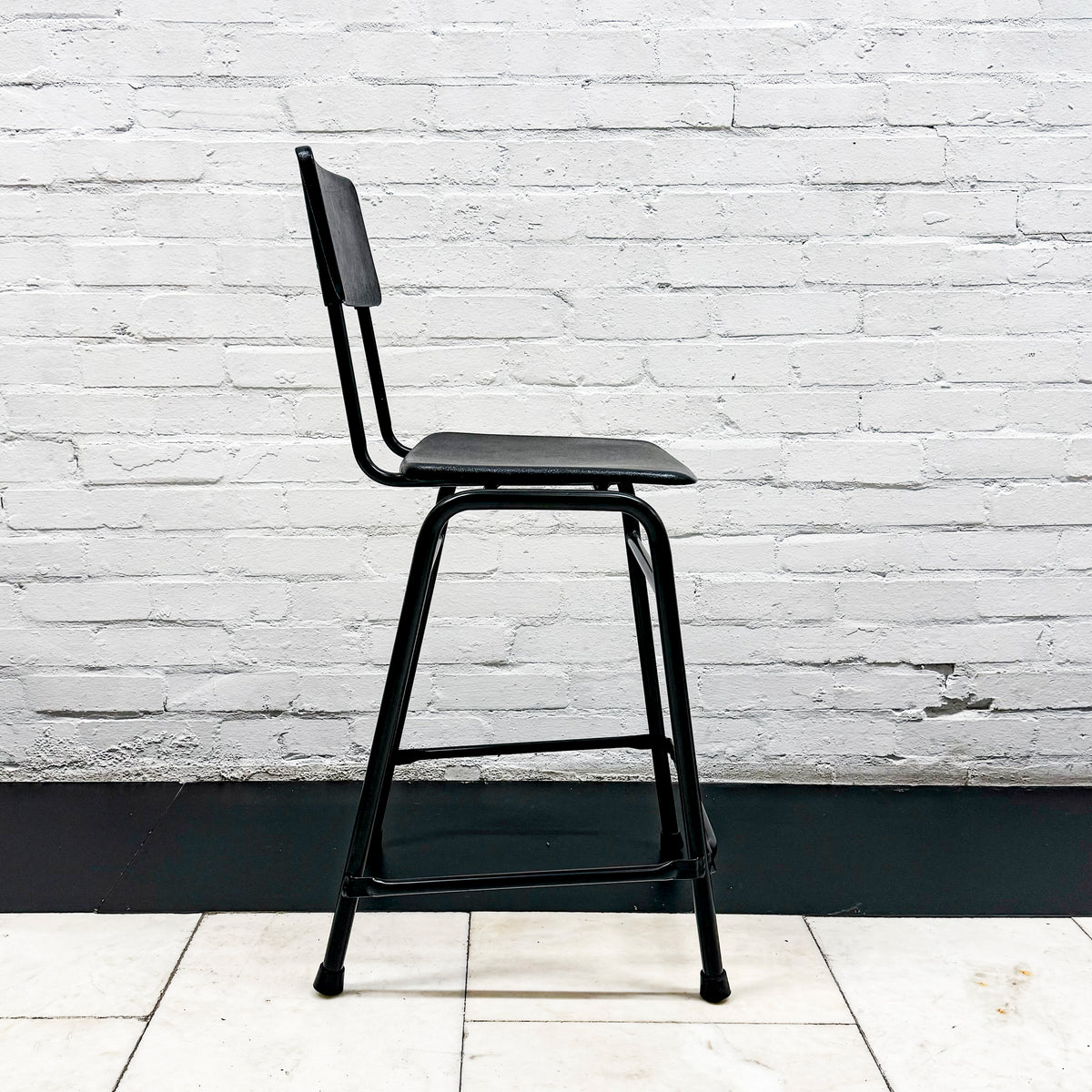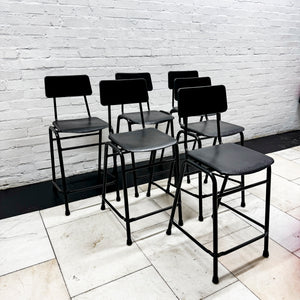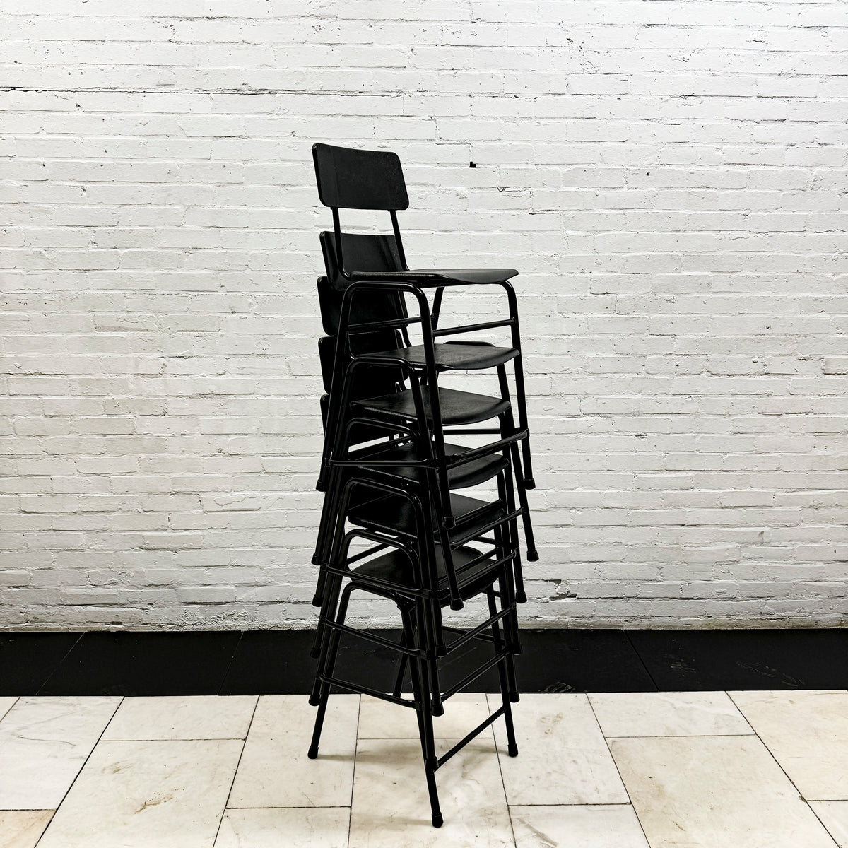 The minimalism of these reclaimed mid century high stools gives them a unique contemporary design. They remain versatile and suitable for a variety of applications. Additionally, they can be stacked for easy storage.