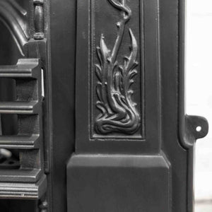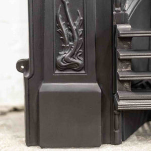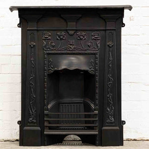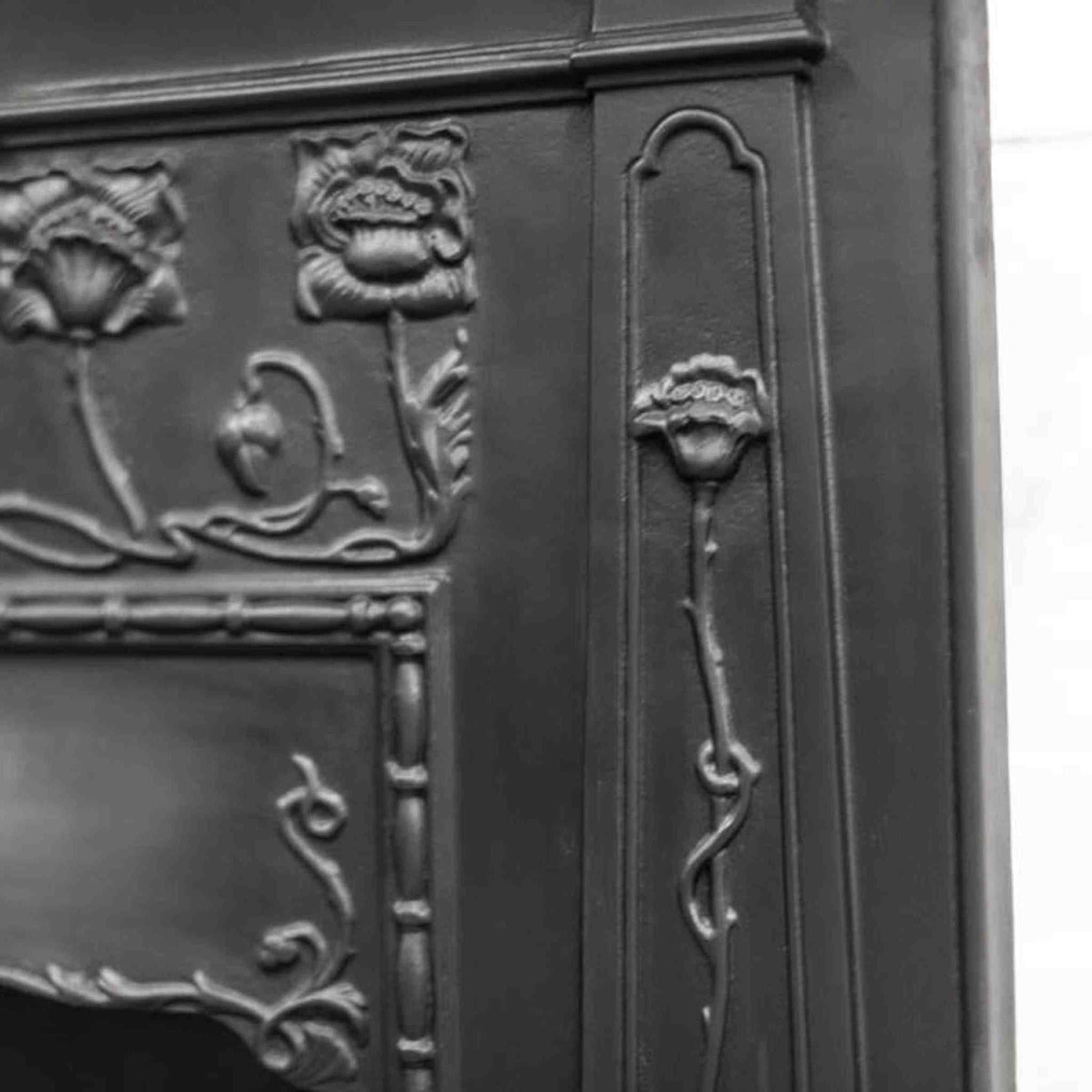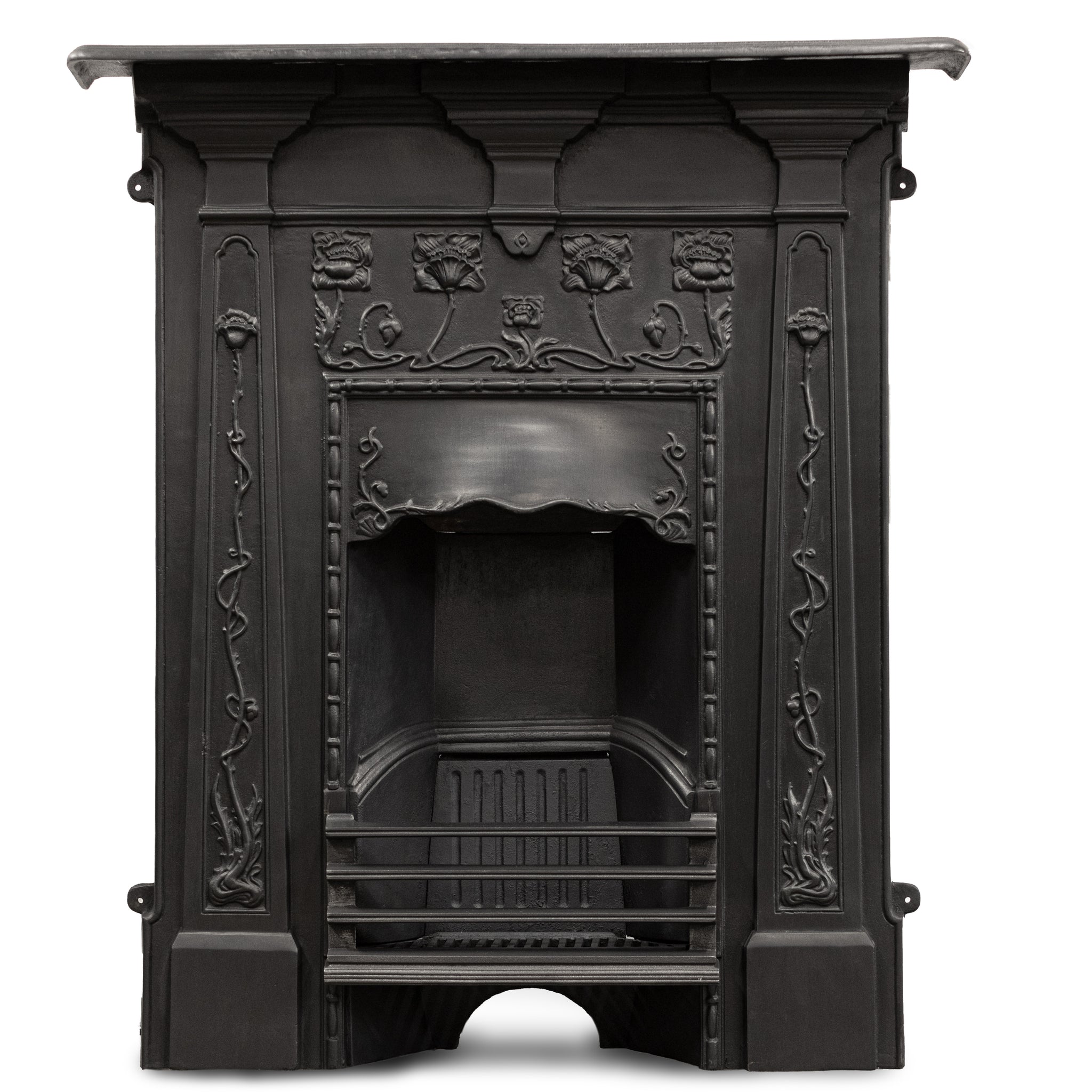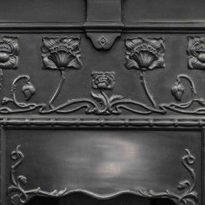 The original piece is adorned with floral motifs typical of the Art Nouveau movement both to the hood and main body. The pretty period piece is flanked by fluted panels with trailing flowers within.