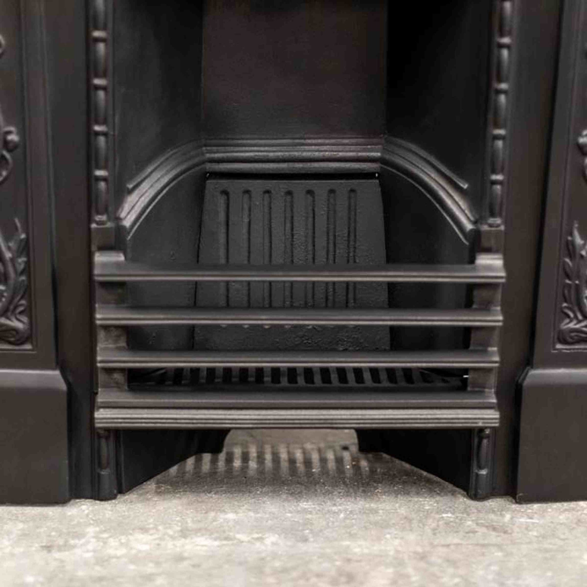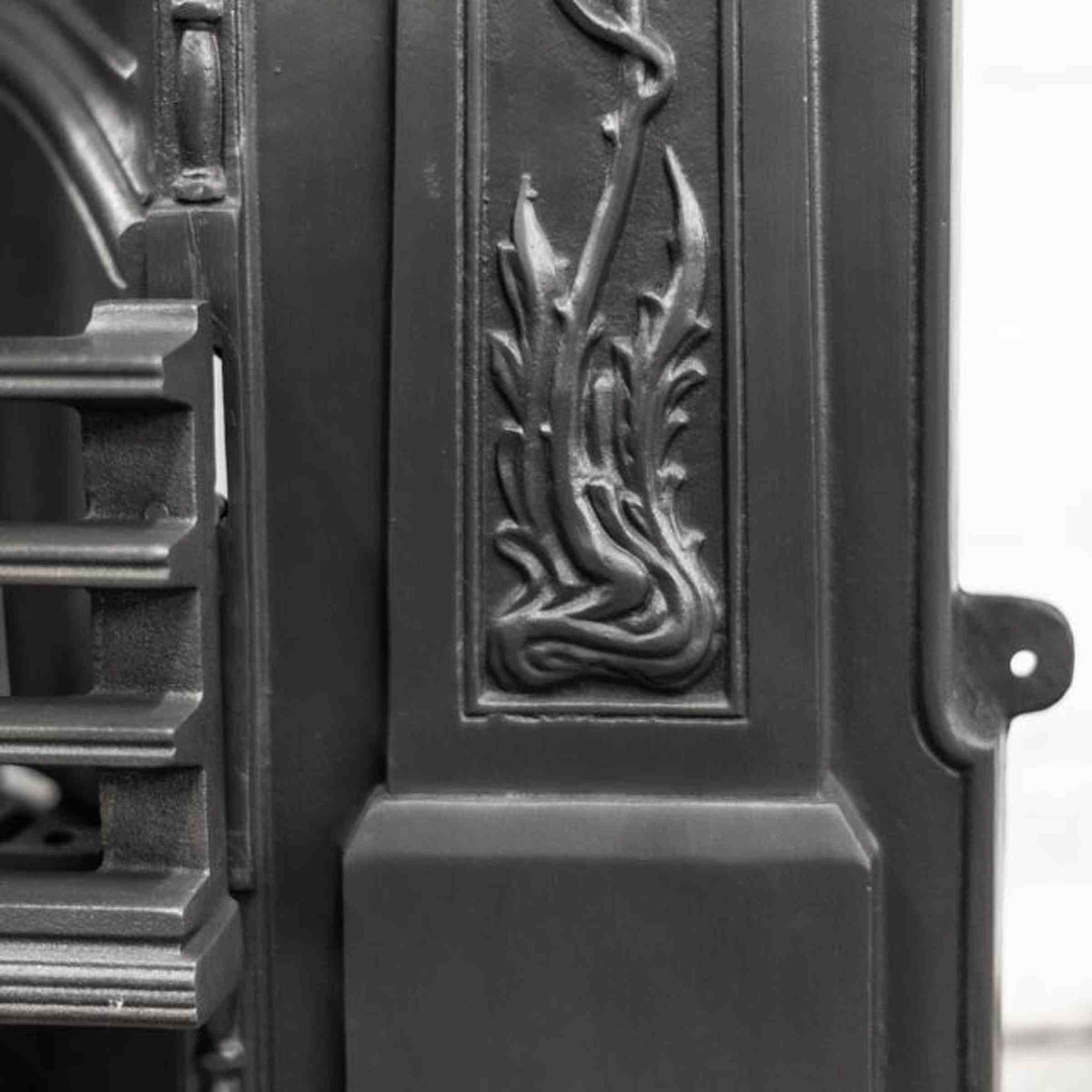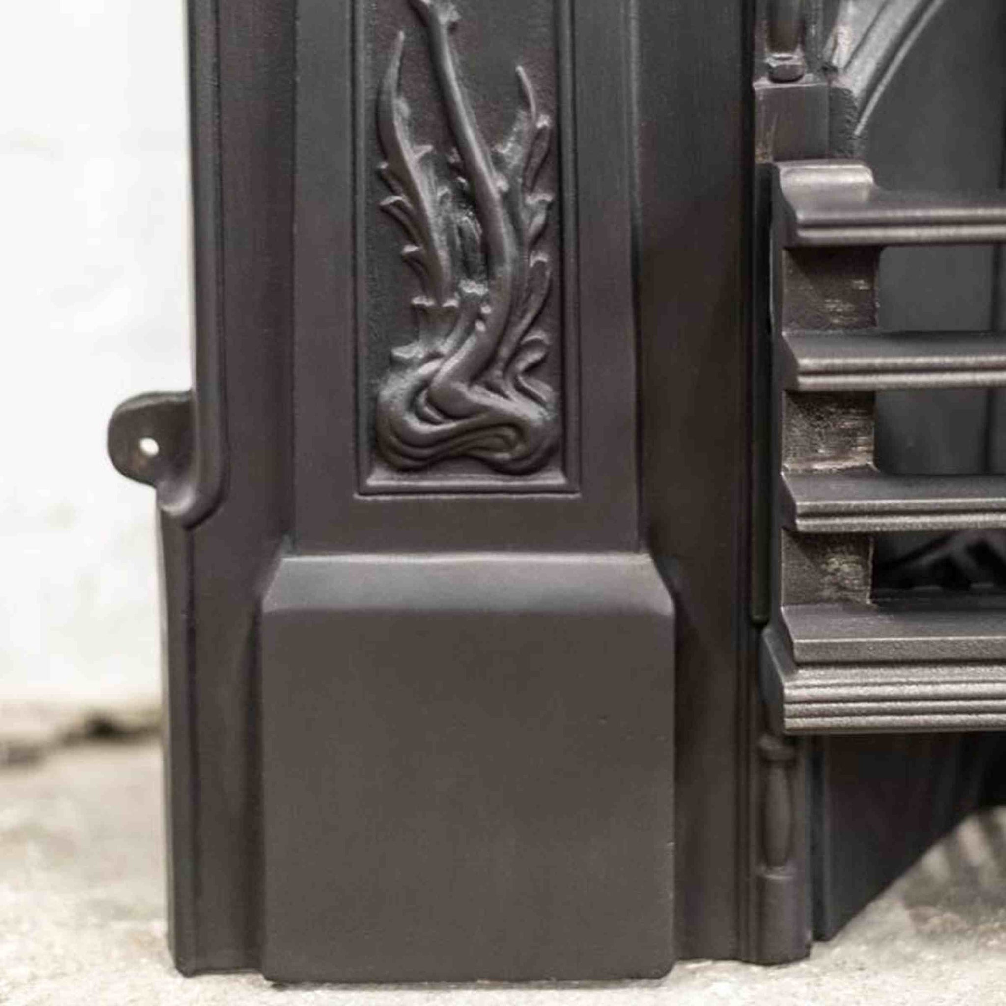The original piece is adorned with floral motifs typical of the Art Nouveau movement both to the hood and main body. The pretty period piece is flanked by fluted panels with trailing flowers within.