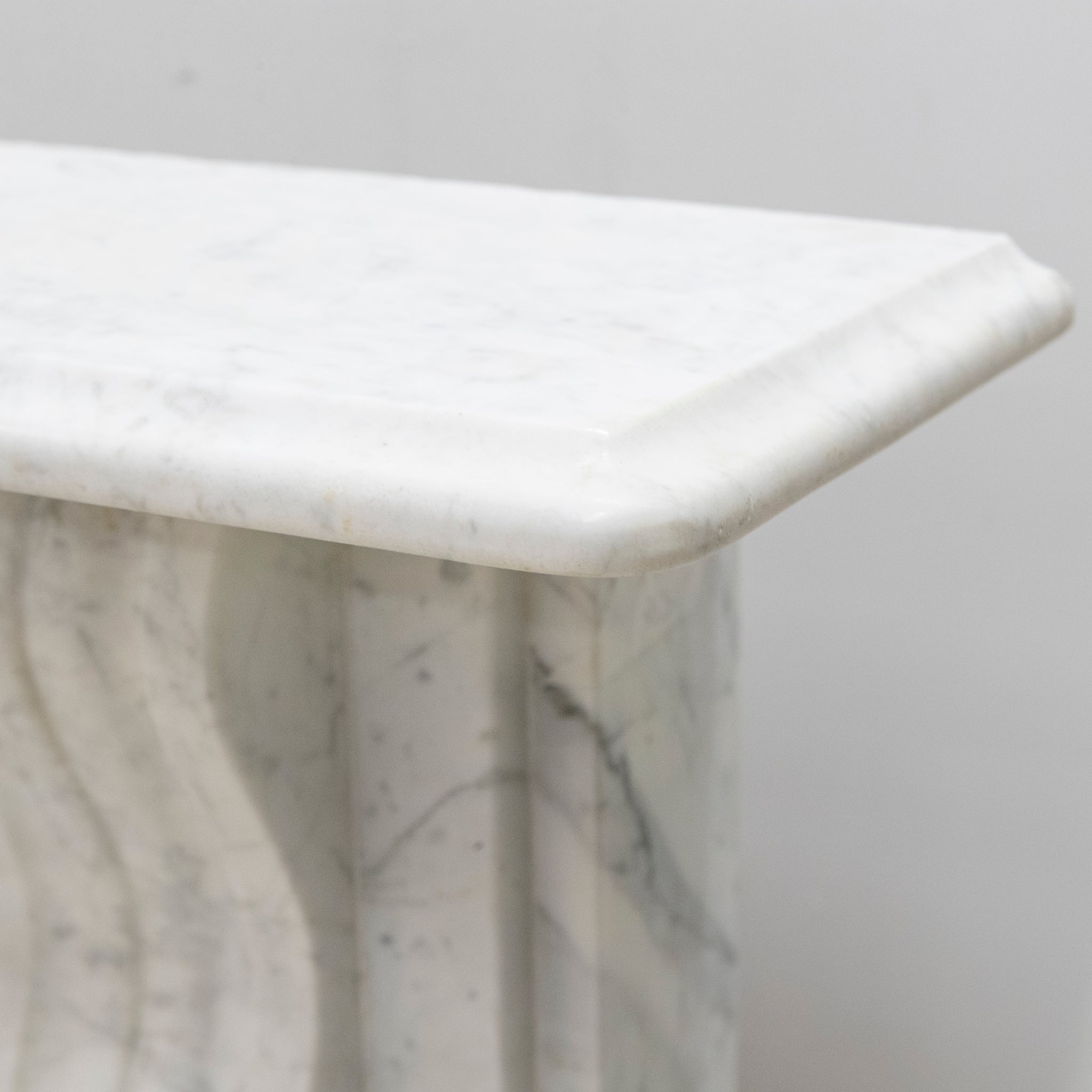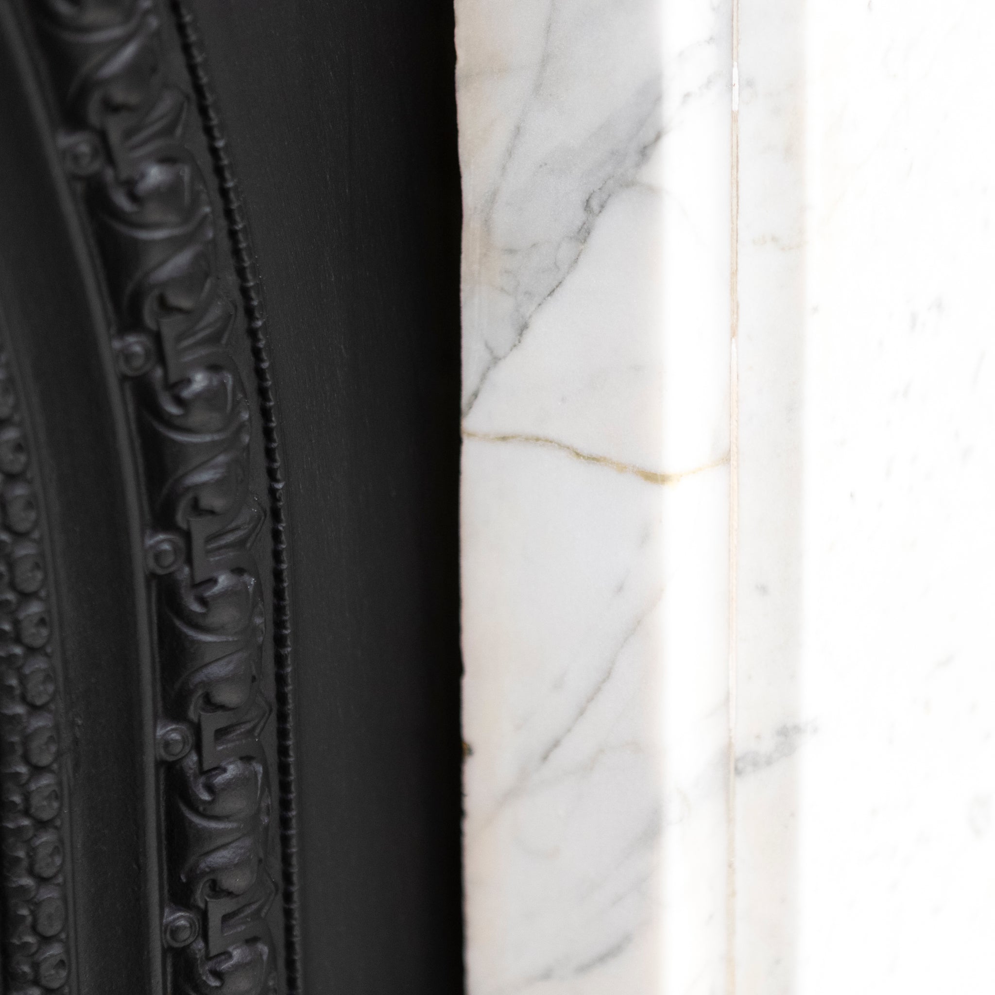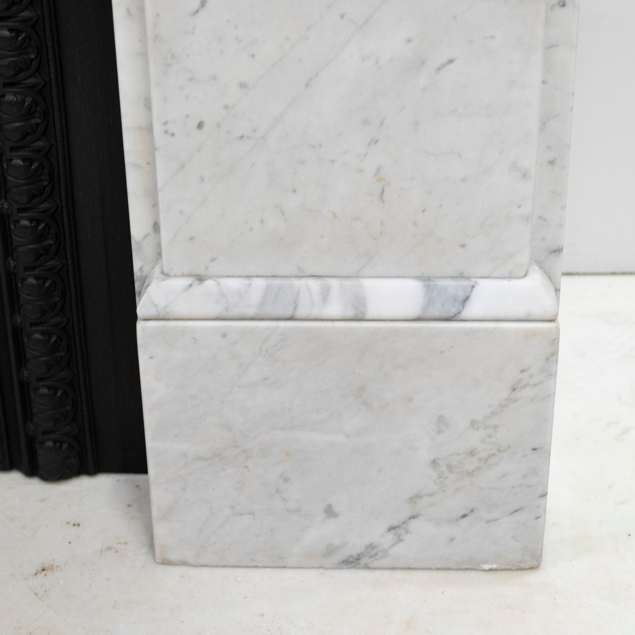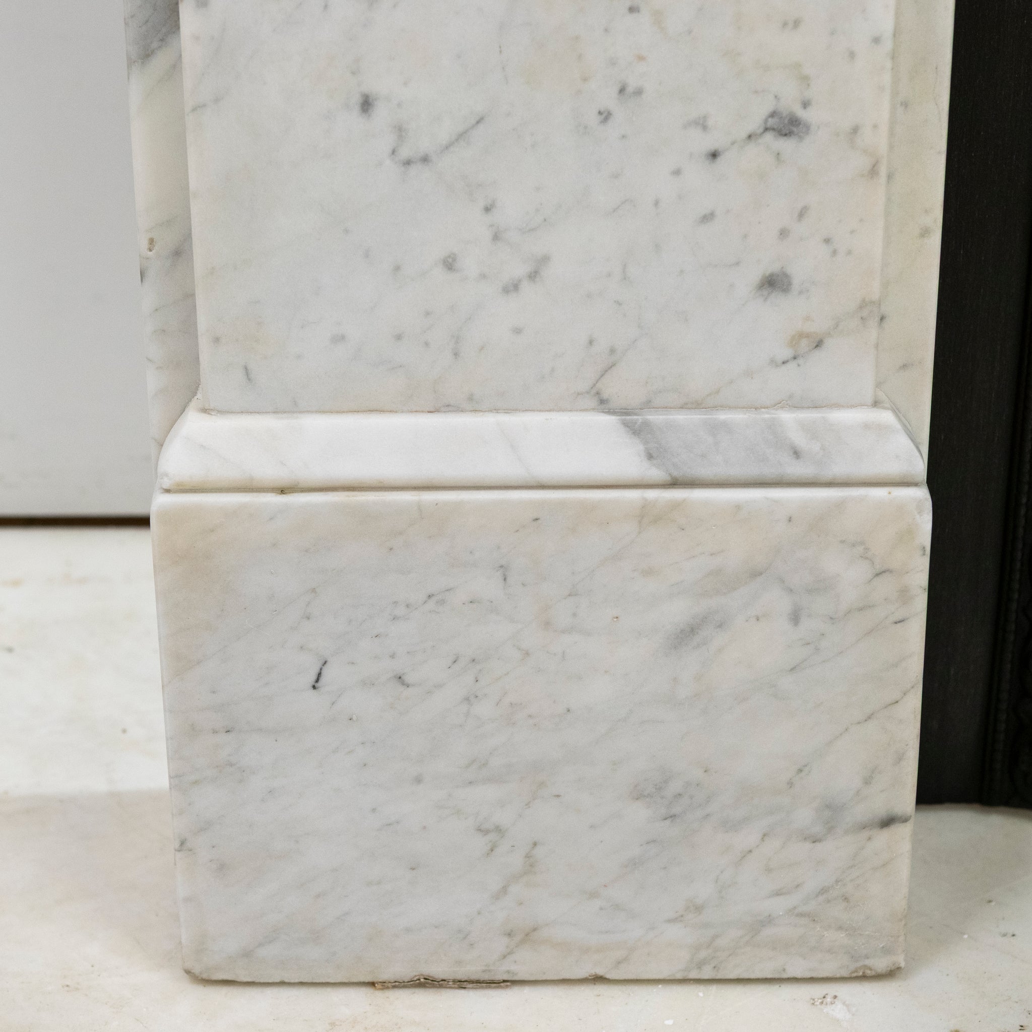 A 19th-century Italian Carrara marble fireplace surround with strong, well-judged proportions and finely carved corbels.