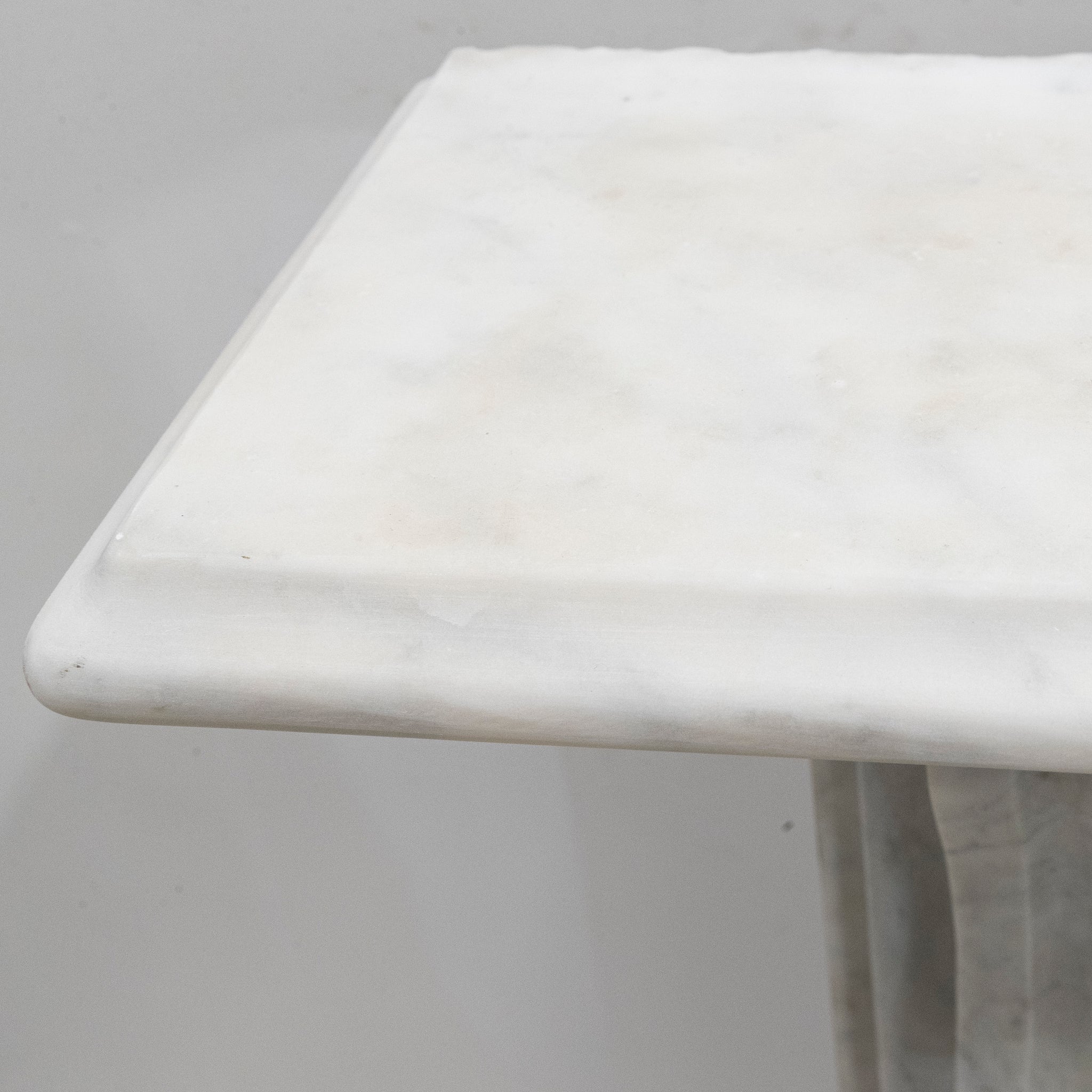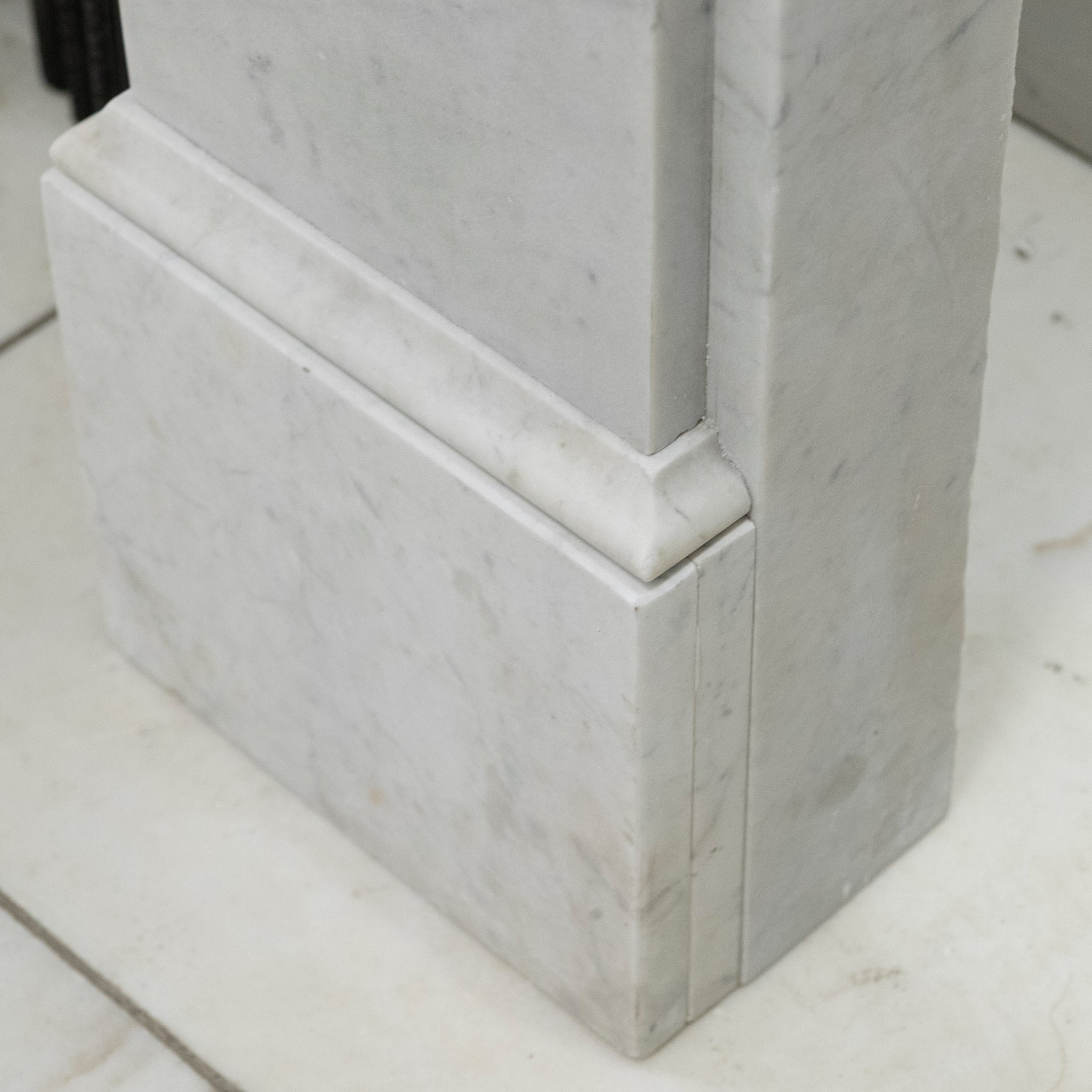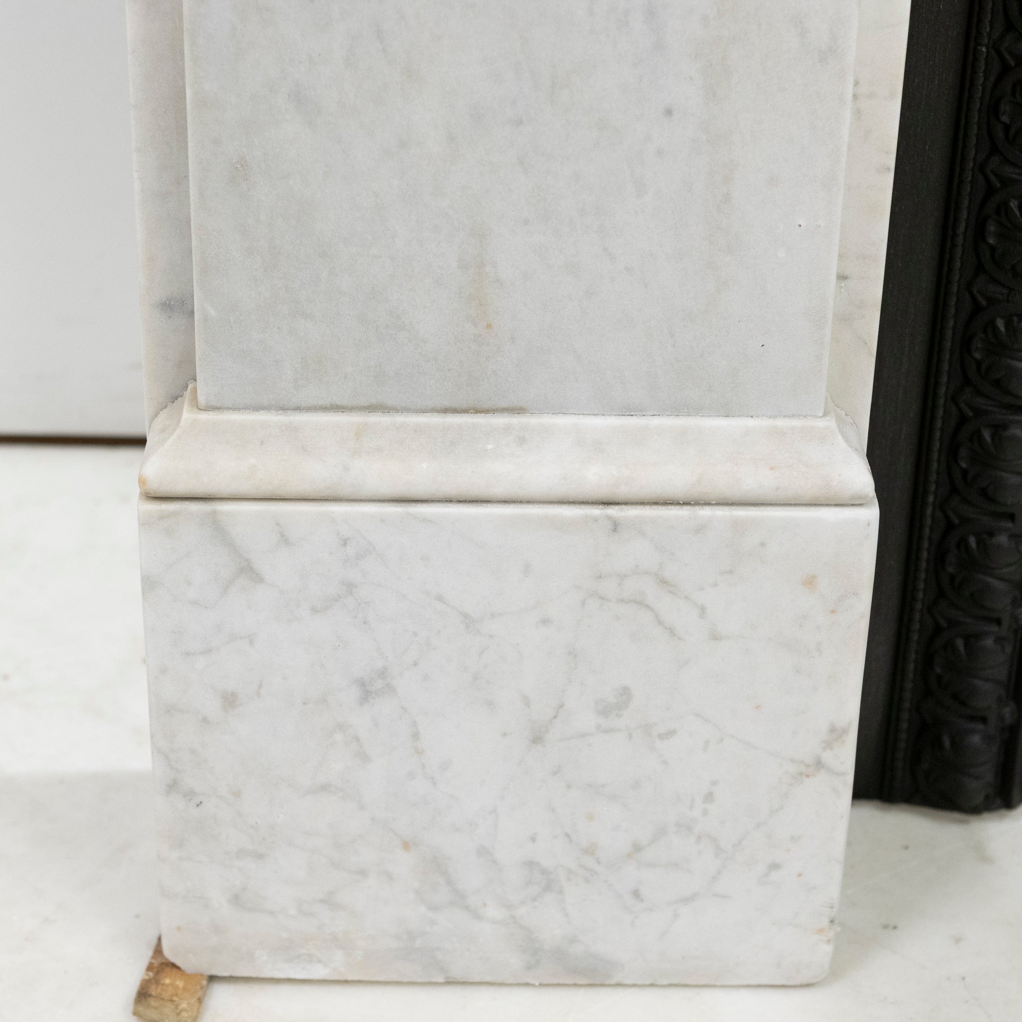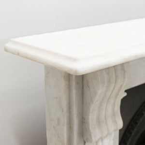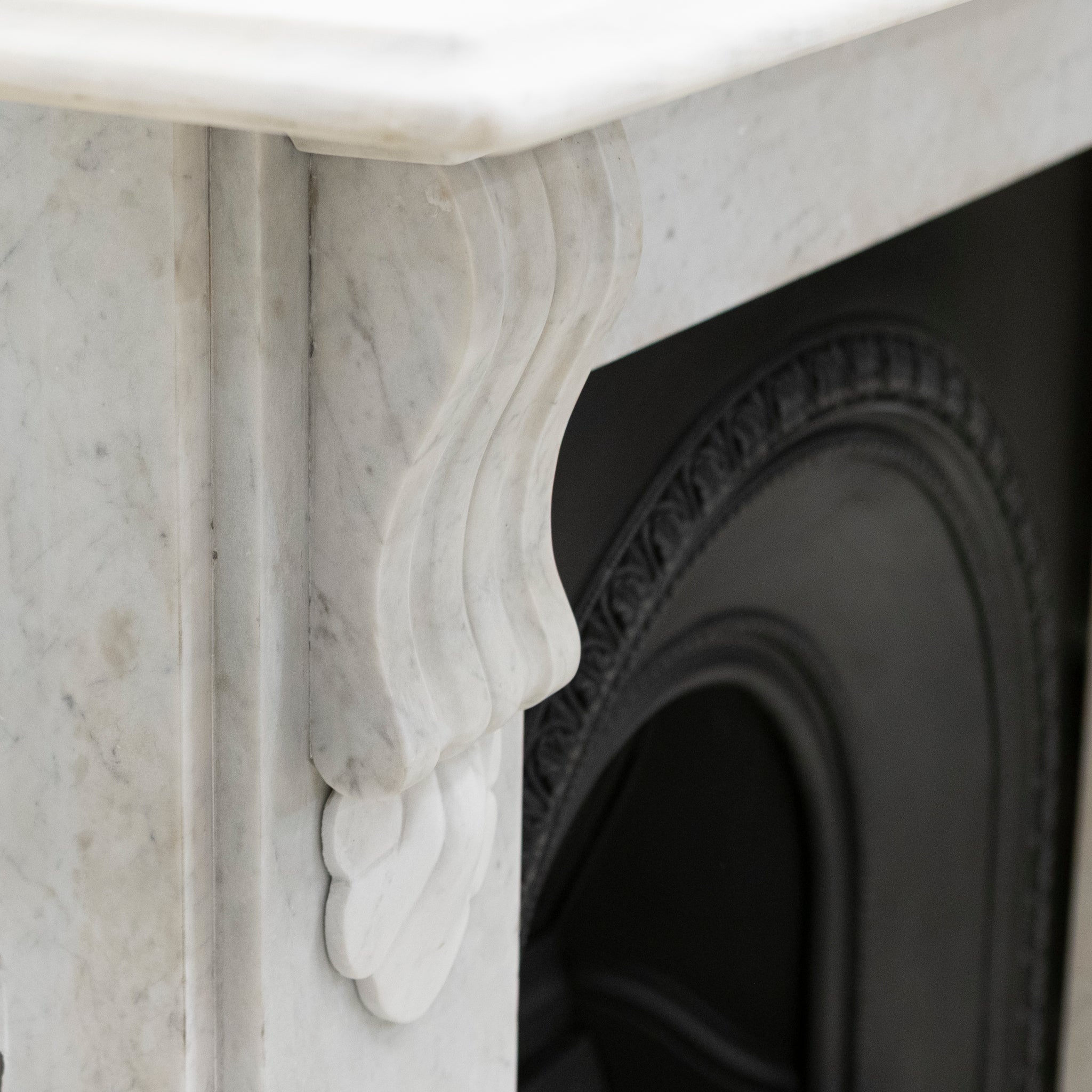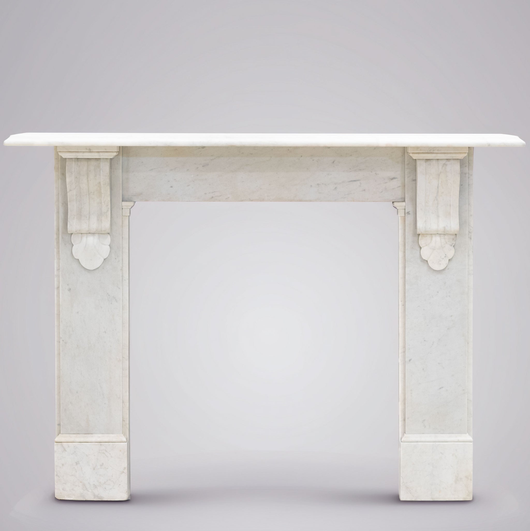 A 19th-century Italian Carrara marble fireplace surround with strong, well-judged proportions and finely carved corbels.