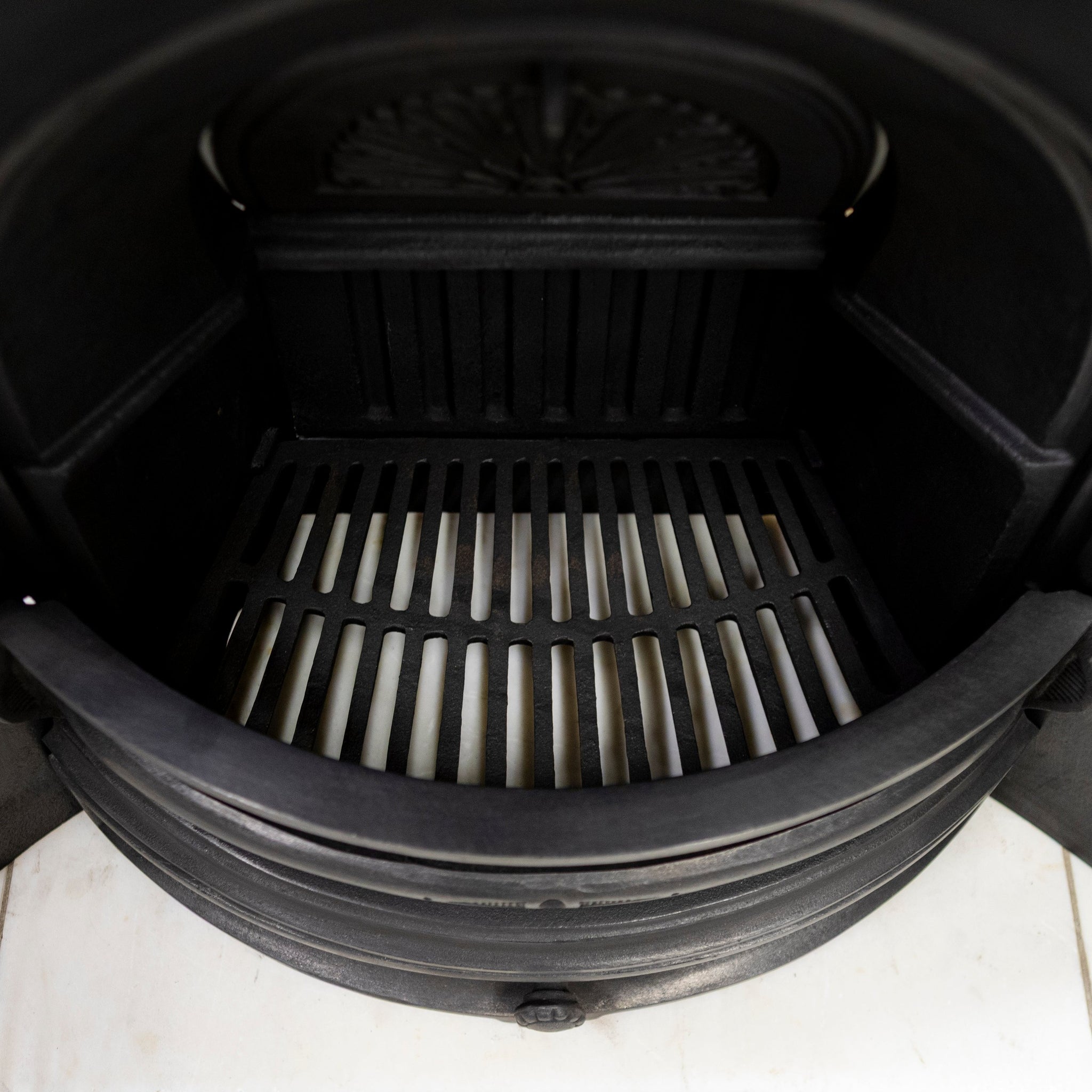 The antique fireplace insert has been fully restored in-house and is ready for installation and use. The piece can also have a gas kit installed if required. Please contact us for more details.
