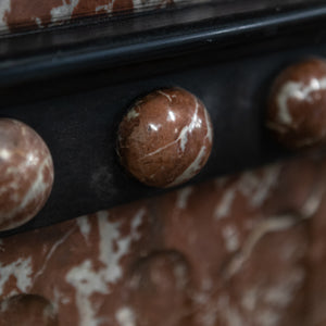 Crafted from striking Rogue Royal Marble, this original Edwardian fireplace surround is of substantial size and grandeur.