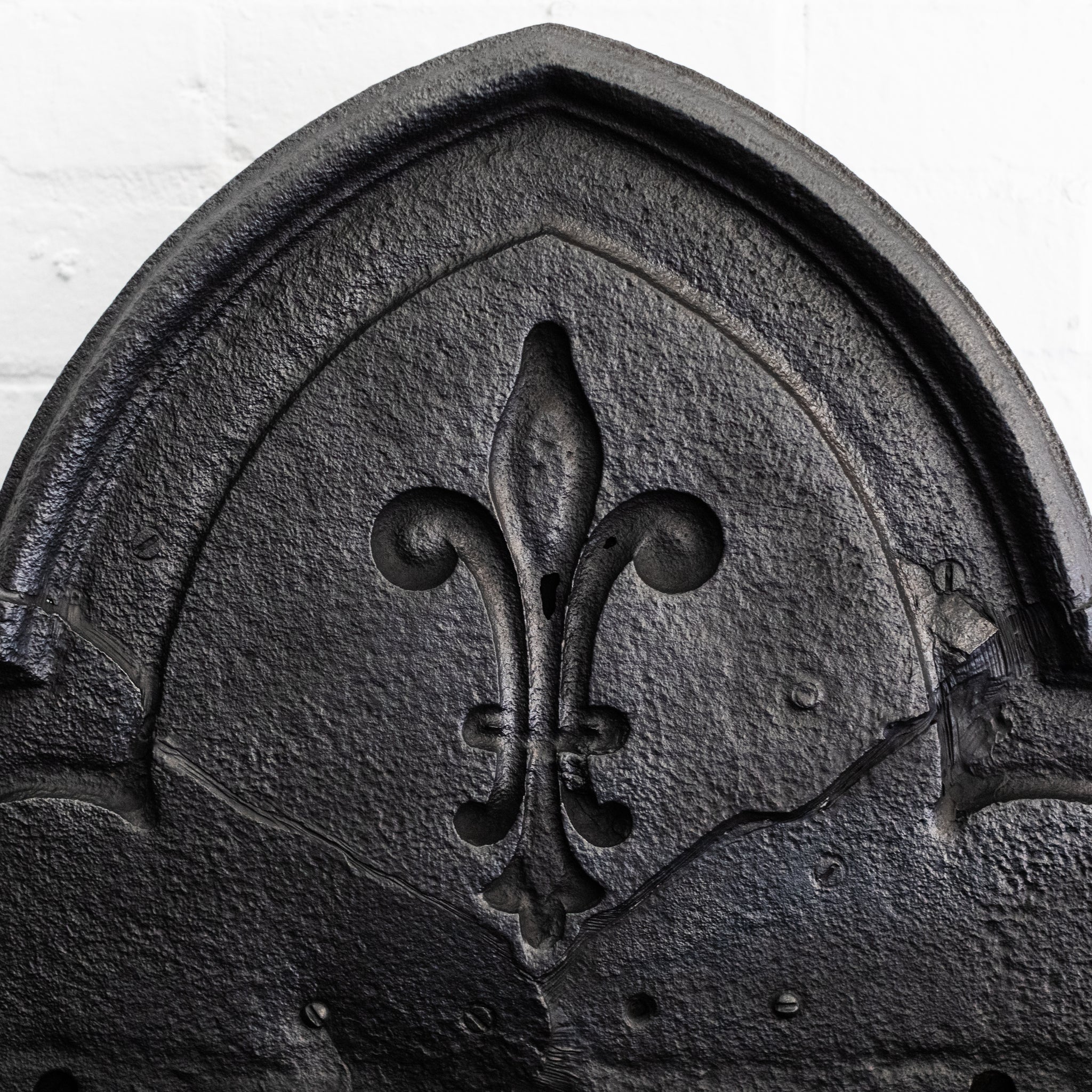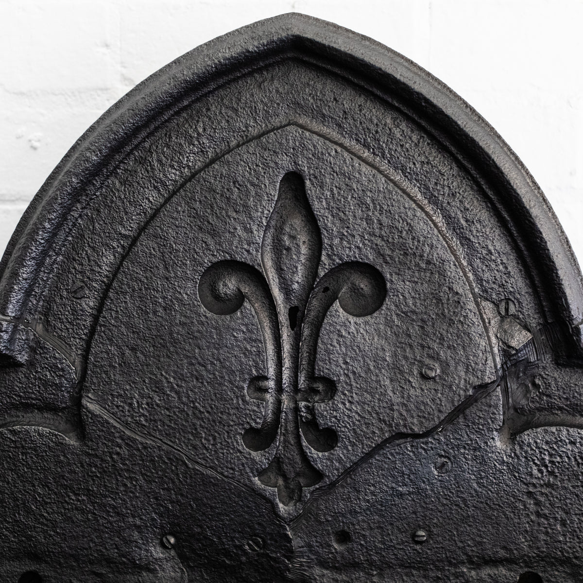 The piece stands proud on substantial standards, each topped with a large Fleur De Lys, which are echoed on the back plate.