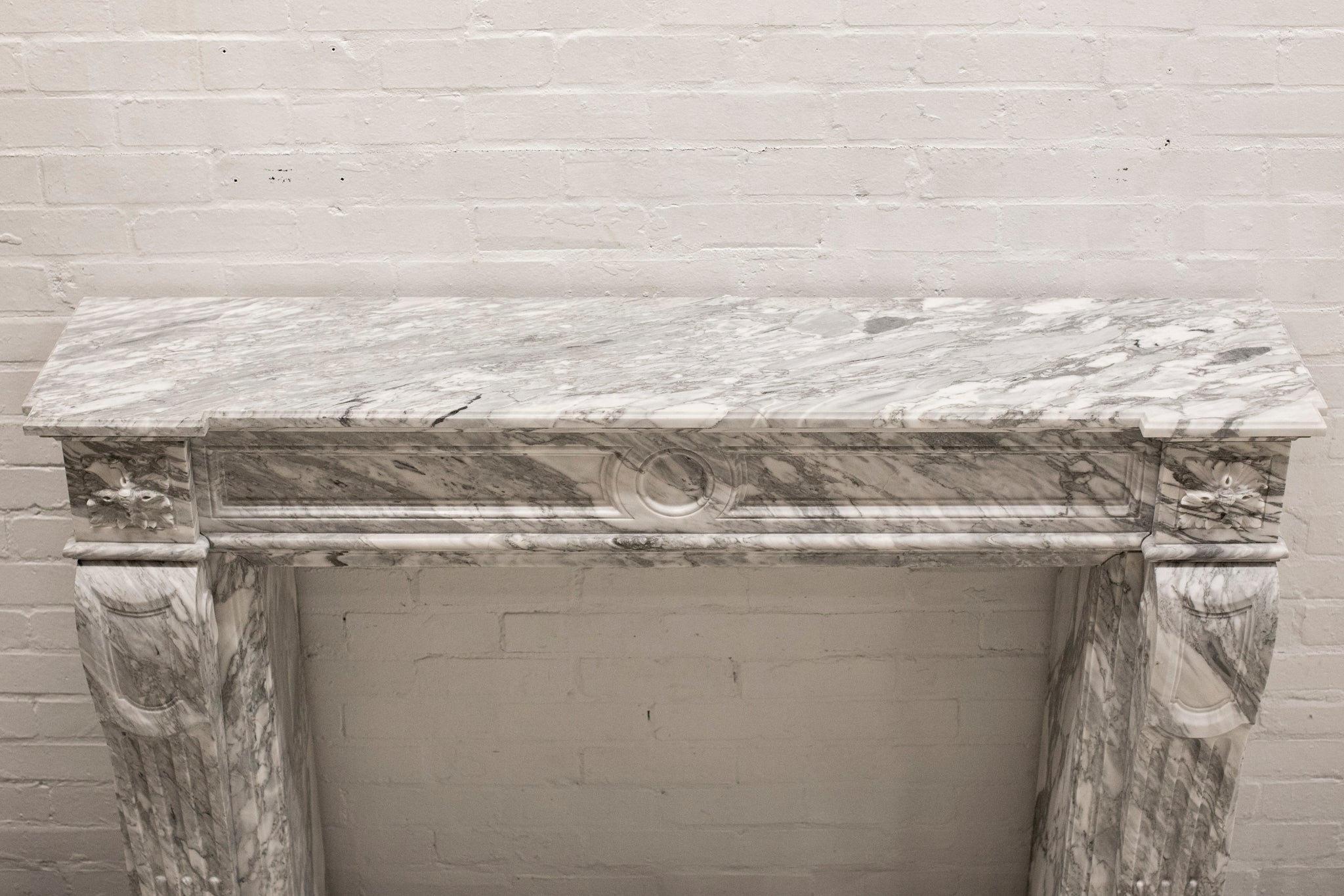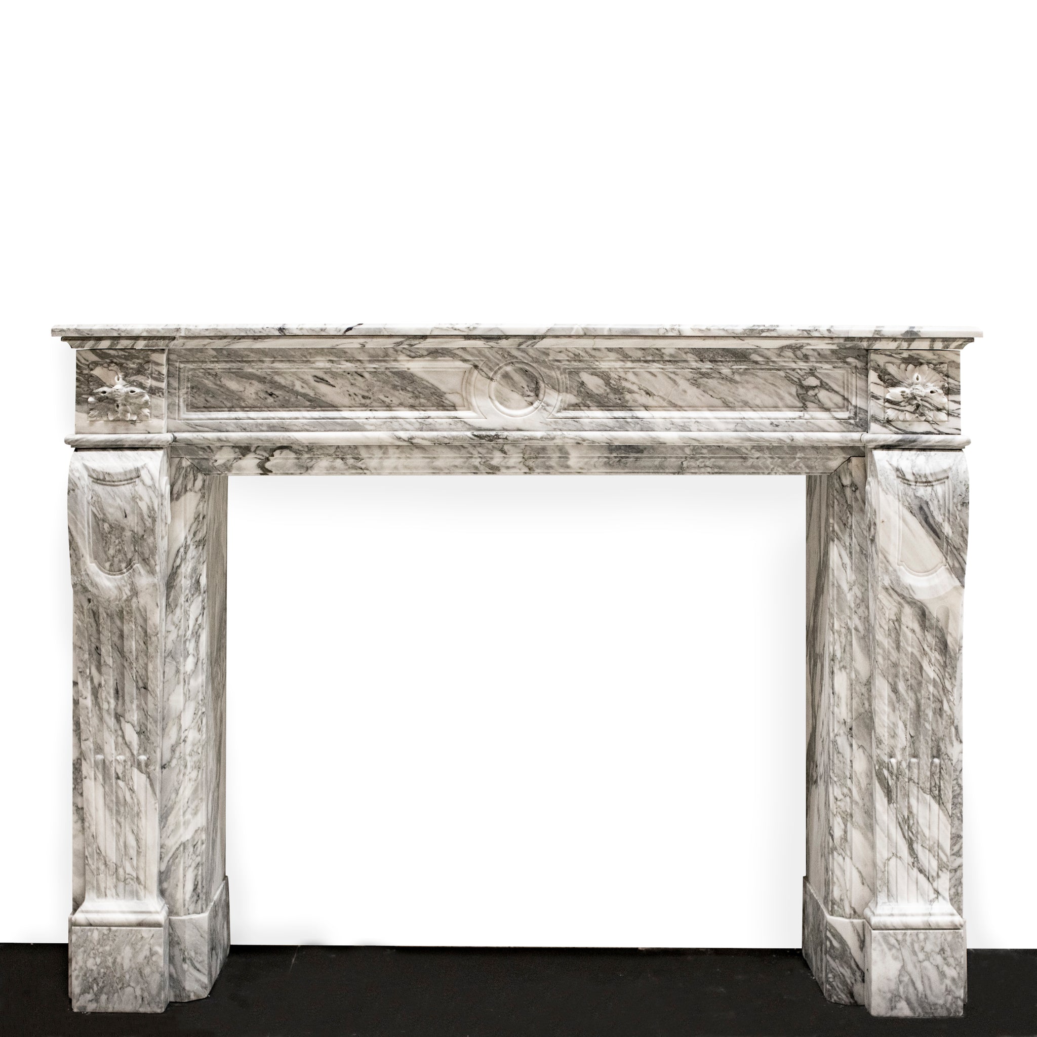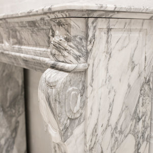 Louis XVI Style Italian Arabescato Marble Fireplace